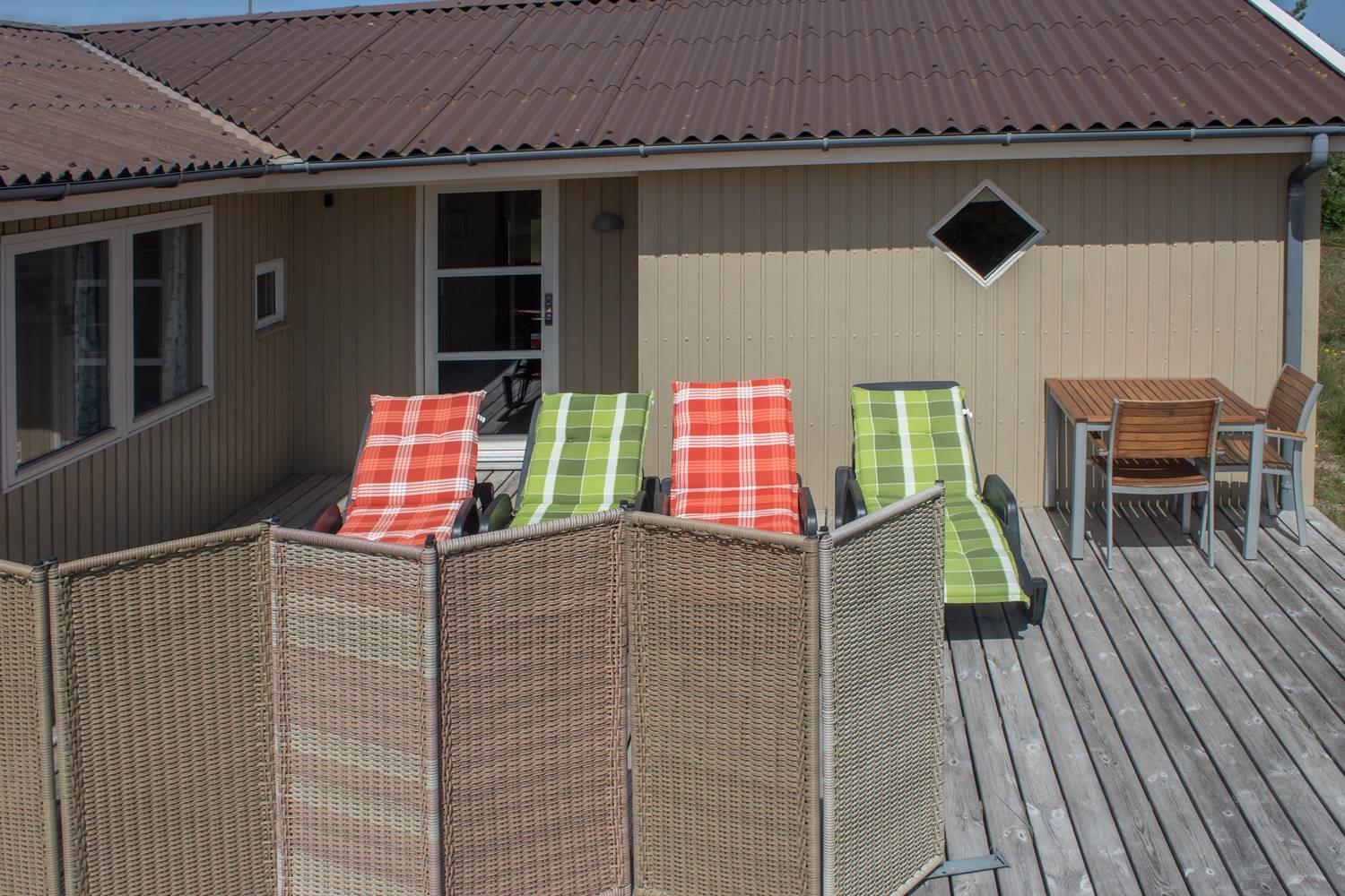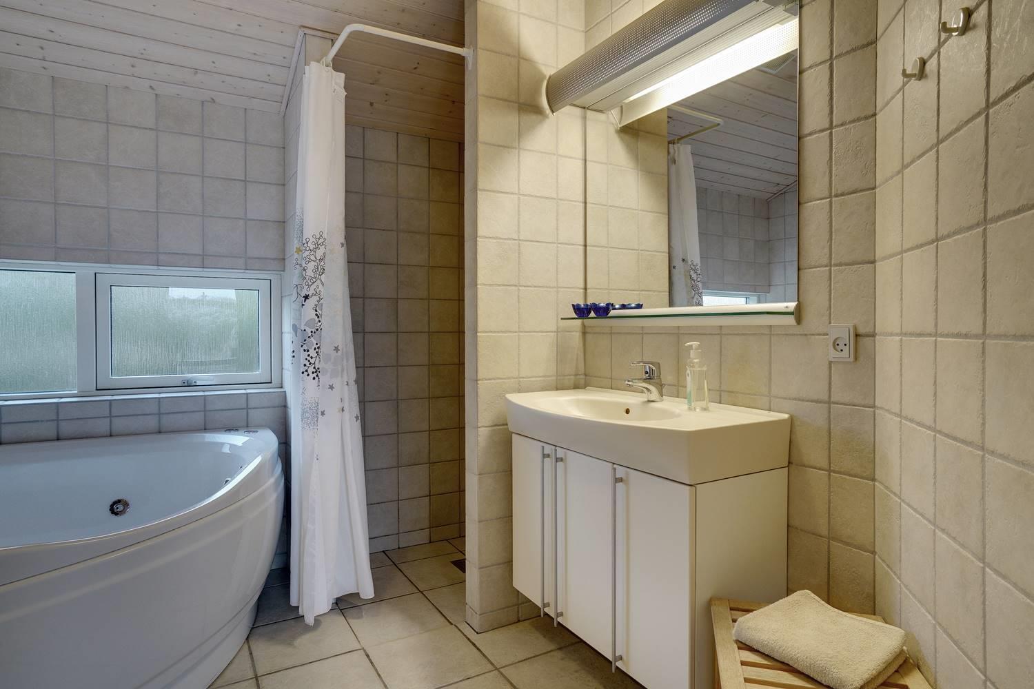 Dejligt feriehus med to flotte badeværelser, det ene med spabad og det andet med sauna. Tre gode soveværelser alle med dobbeltsenge. De store terrasser rundt om huset giver perfekte muligheder for at nyde solen hele dagen. Huset ligger tæt på de store fredede klit- og lyngarealer, hvor I kan gå lange ture. Der er alarmanlæg i huset.