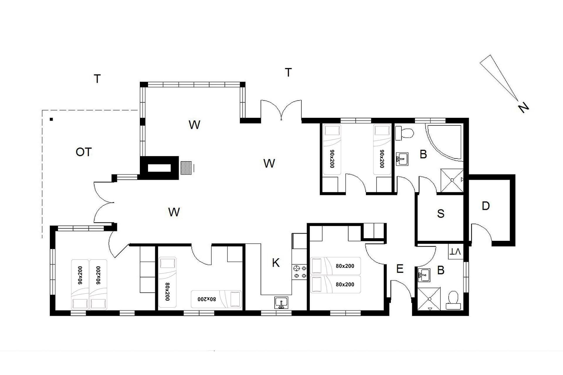 Sengestørrelse: 1 dobbeltseng med 2 madrasser 90 x 200 cm + 1 dobbeltseng med 2 madrasser 80 x 200 cm + 2 enkeltsenge 90 x 200 cm + 2 enkeltsenge 80 x 200 cm.