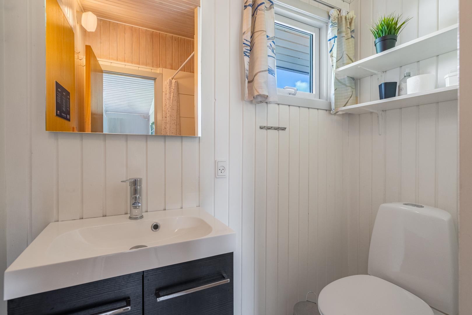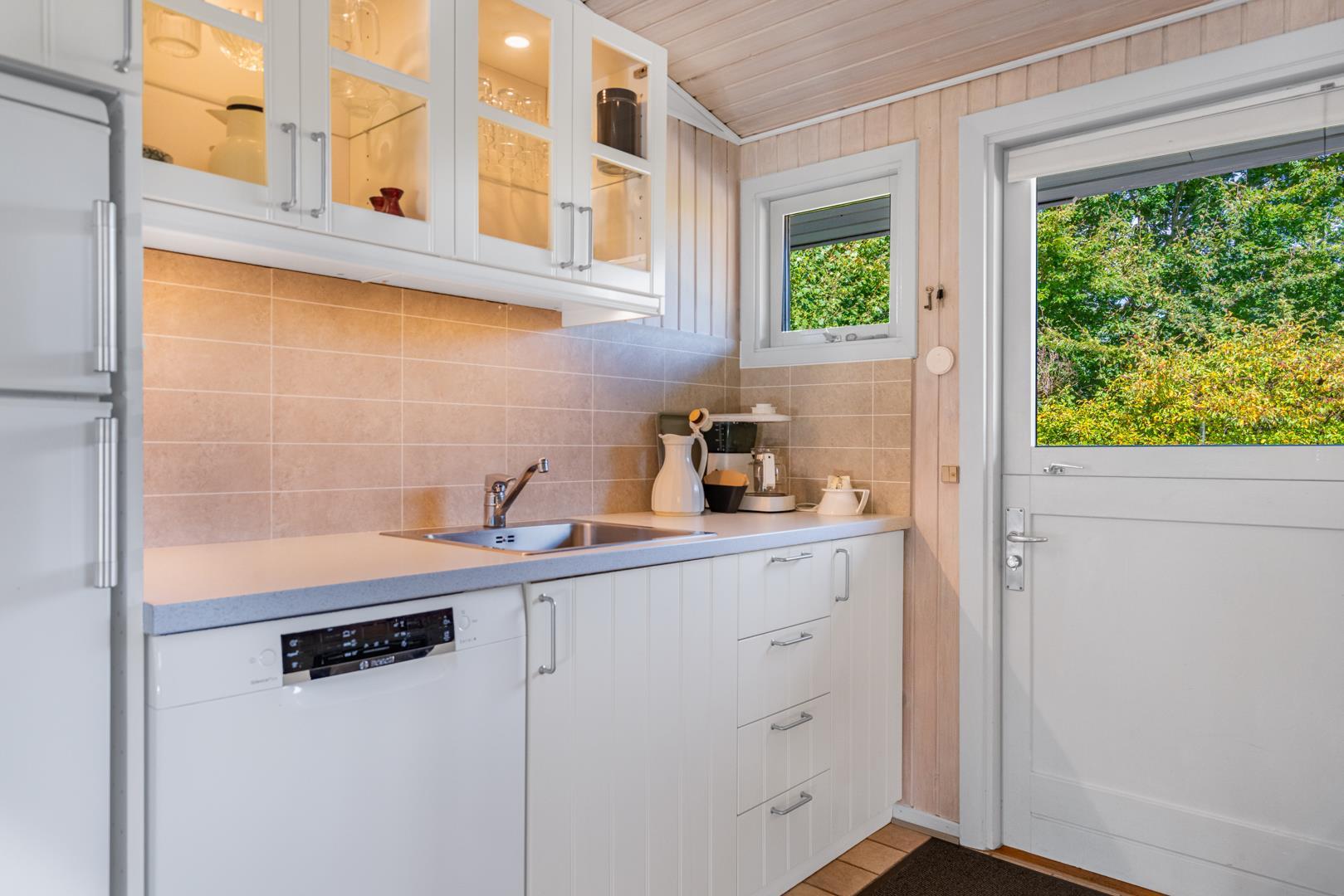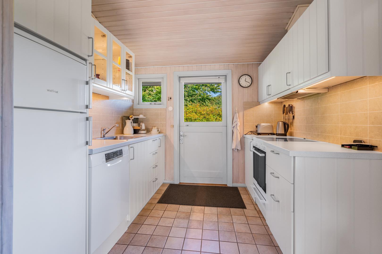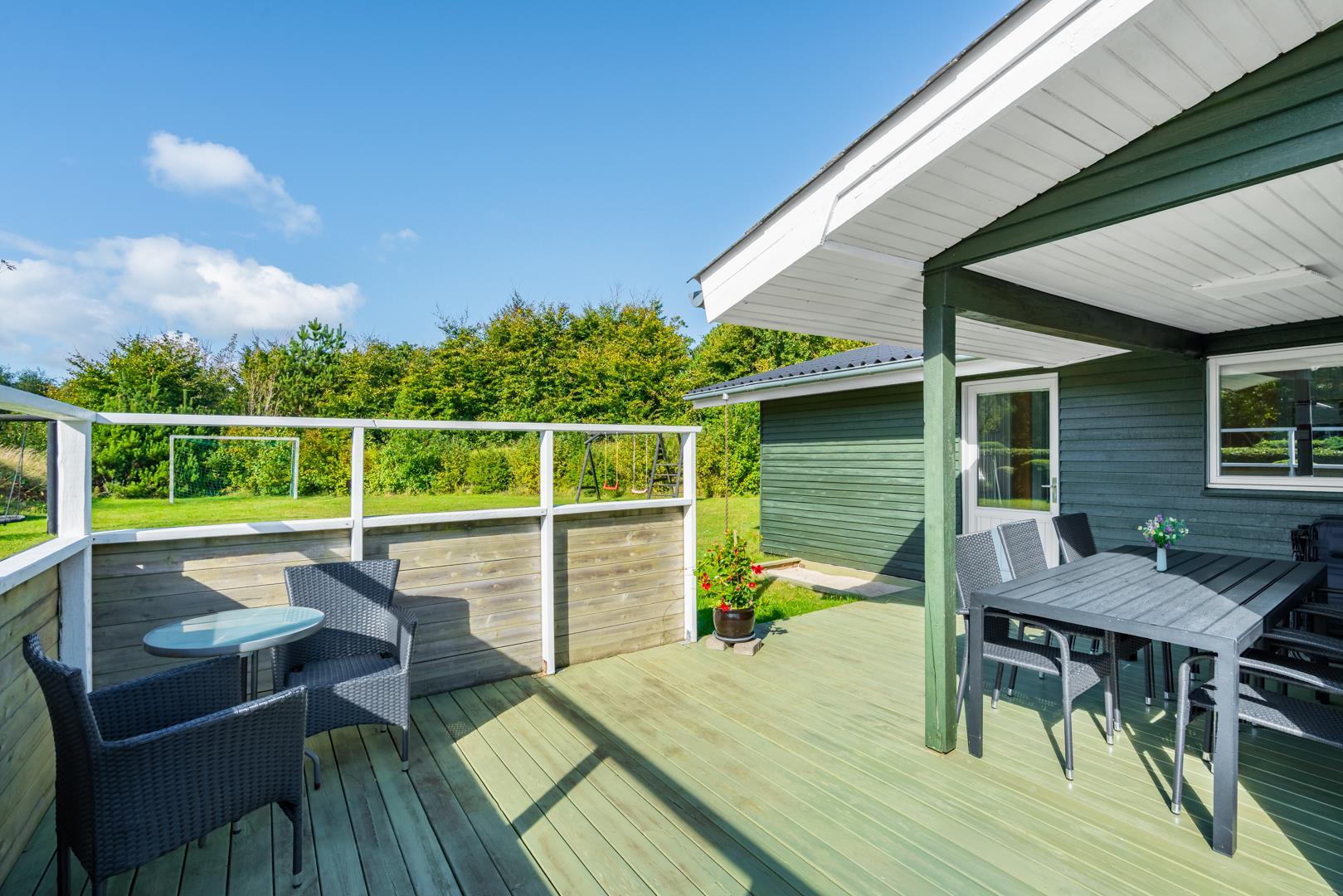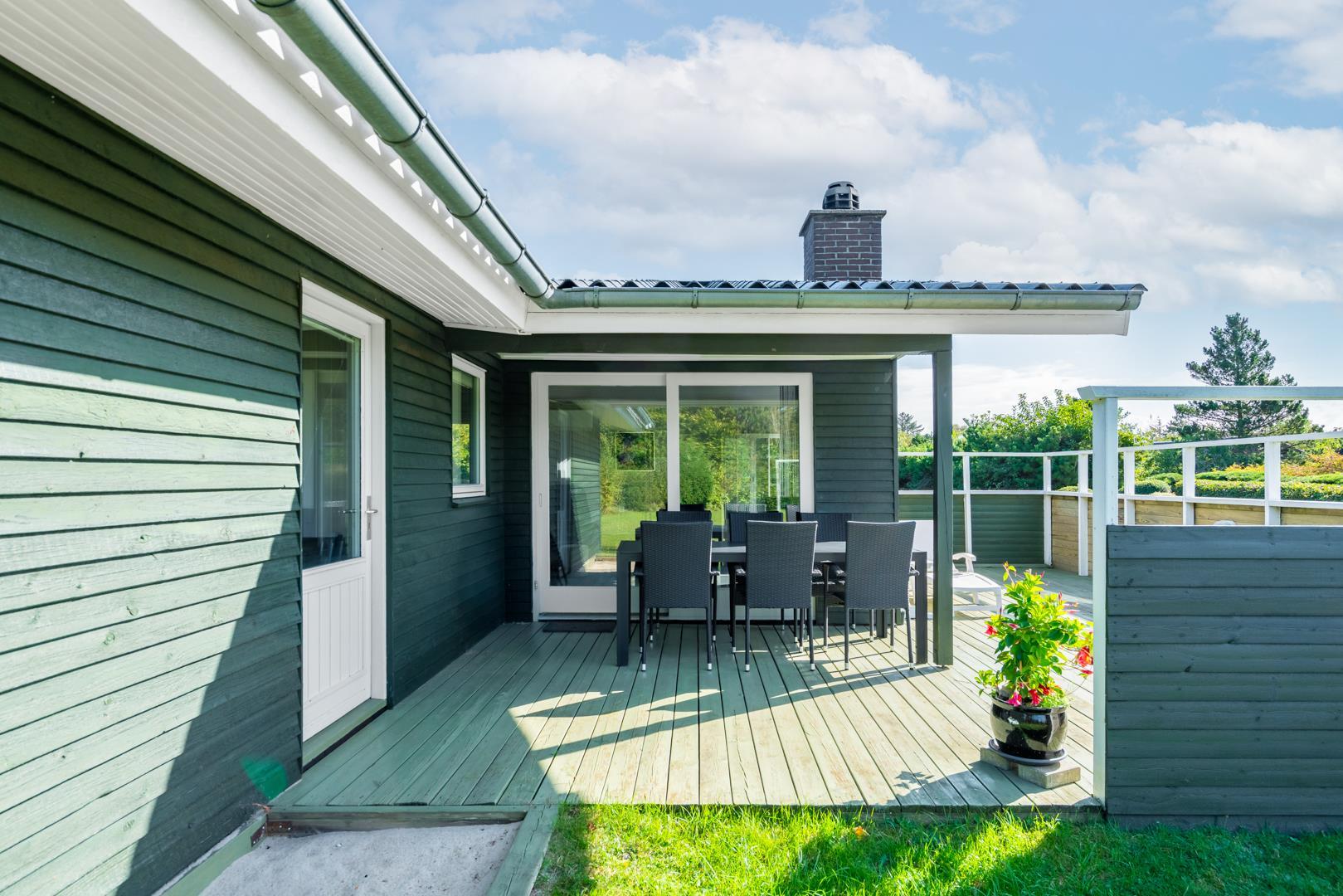 På en lille vej med kun 2 huse ligger dette velholdte feriehus. Beliggende på en naturgrund med plads til boldspil. Huset er indrettet med et personligt præg, og fra den velmøblerede stue er der udgang til dejlig, delvis overdækket og læ fuld træterrasse. Der er nyere køkken.