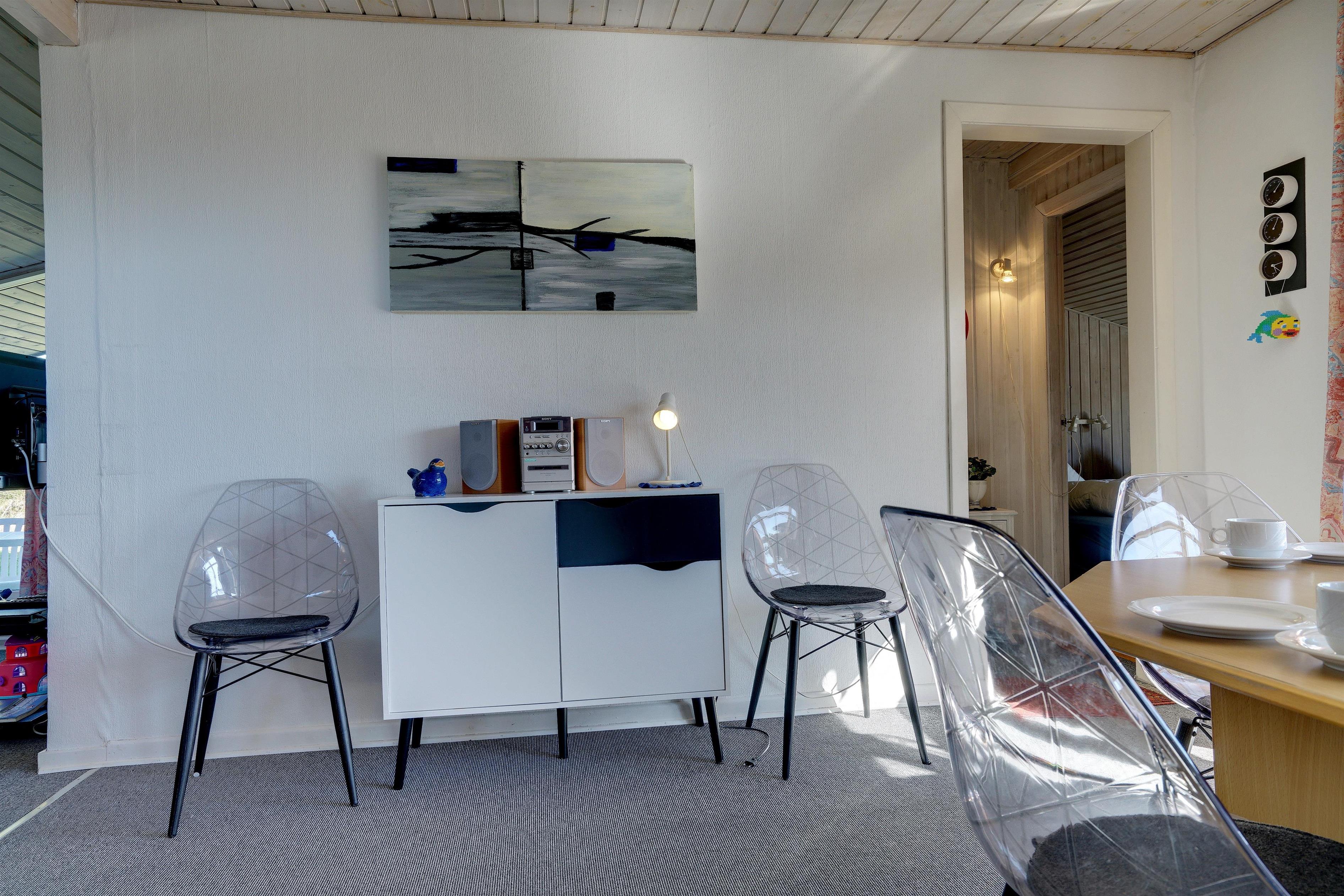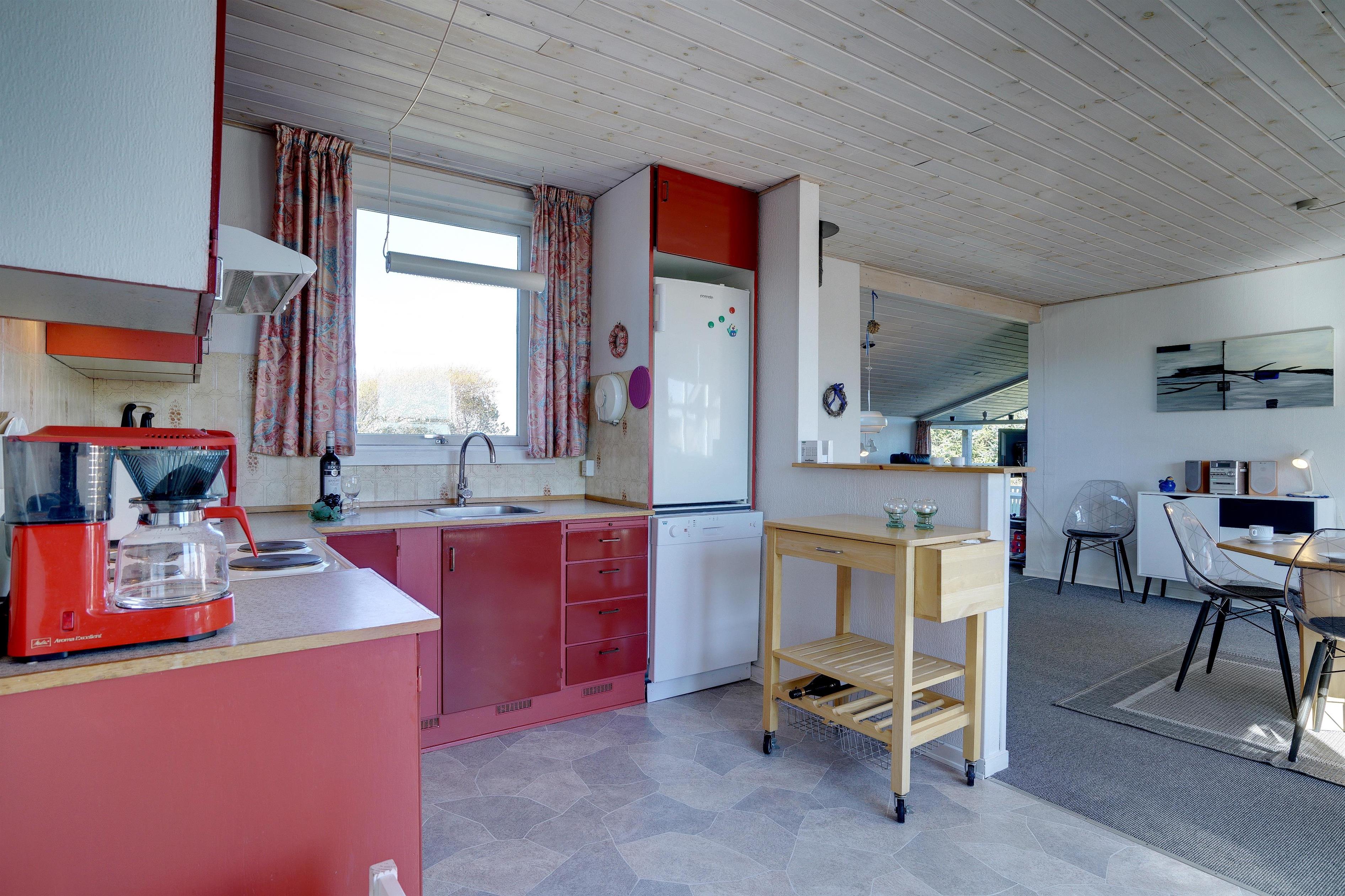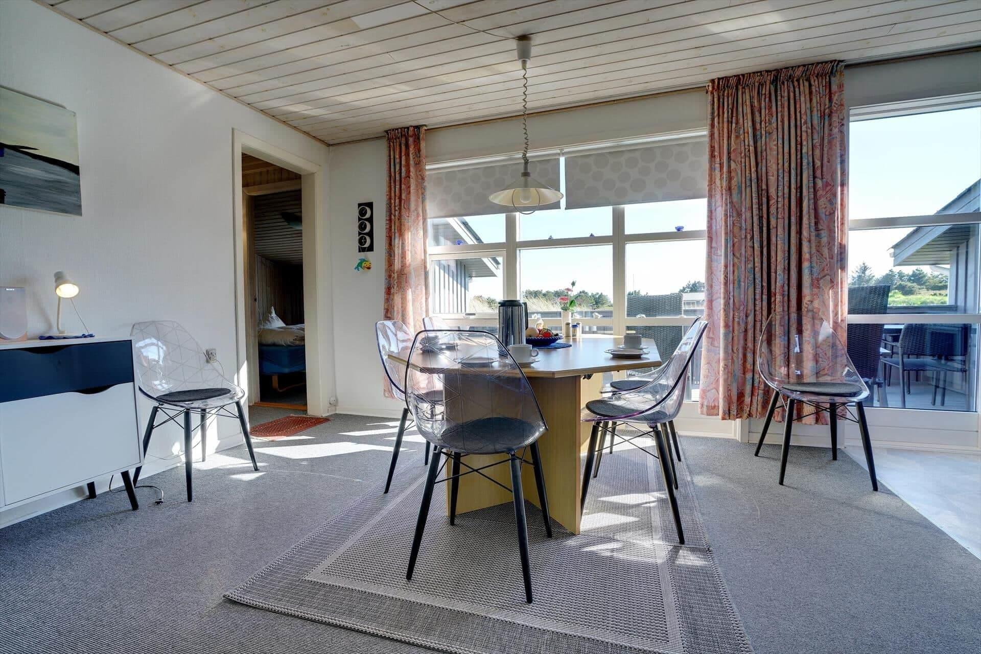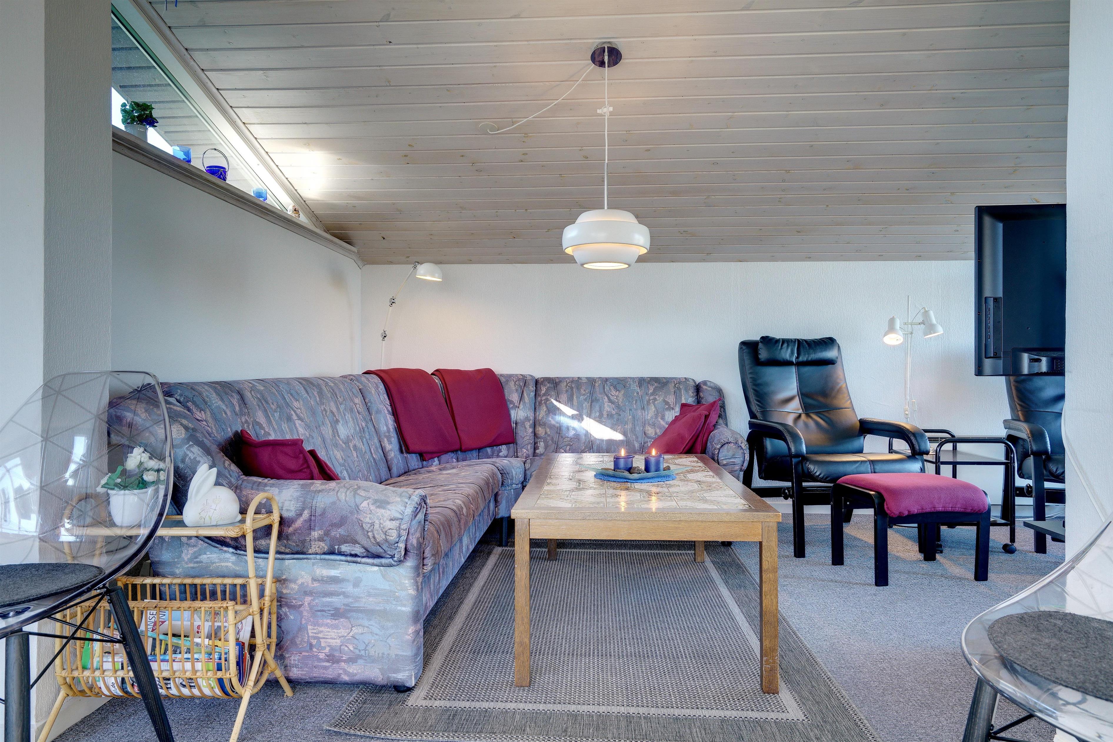 Hyggeligt feriehus beliggende på en stor, let kuperet natur-/klitgrund direkte ud til fredede arealer. Til huset hører helt lukket samt overdækket terrasse. Badeværelse med sauna. Veludstyret køkken med bl.a. opvaskemaskine og mikrobølgeovn. Stuen er hyggelig indrettet med gode møbler. 3 gode soverum. Der findes bla. barnestol, børnebadekar og puslebord samt sandkasse.