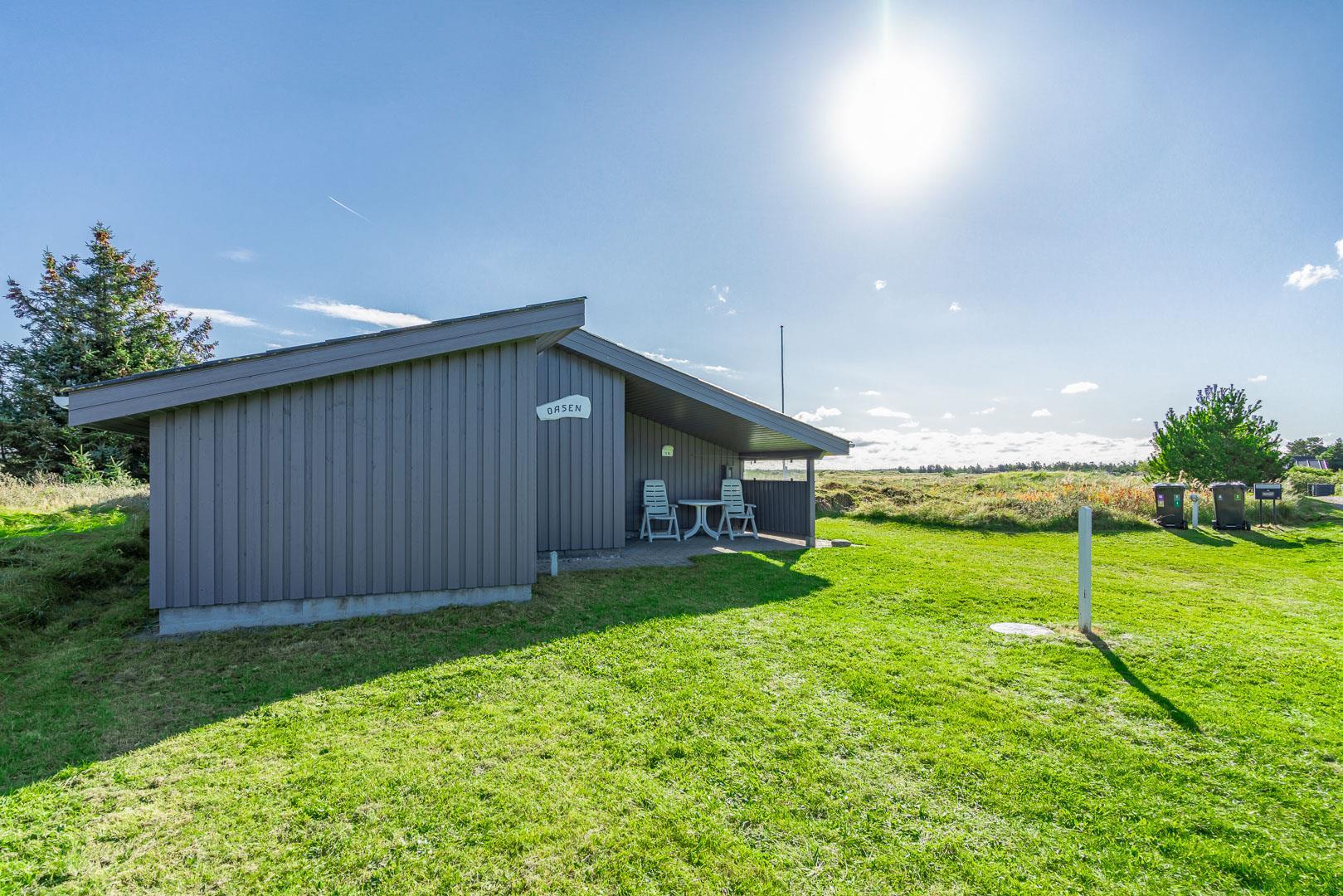 Hyggeligt feriehus i Henne Strand med sauna, overdækket terrasse og klitudsigt, tæt på strand og natur.