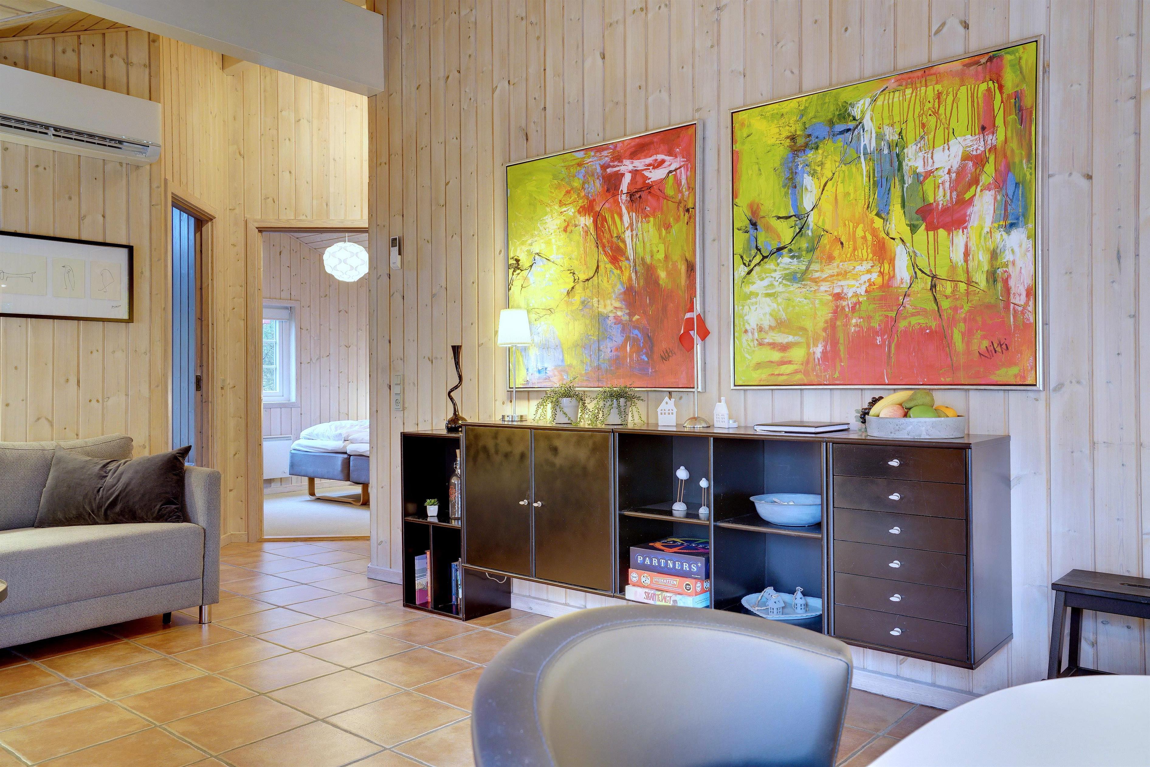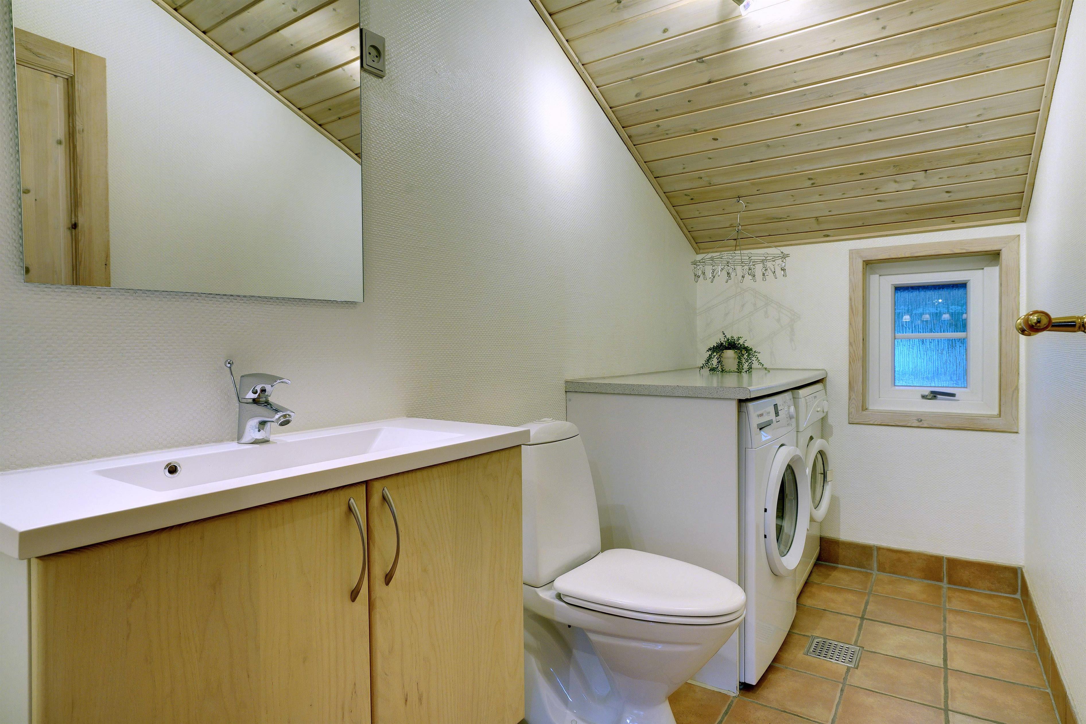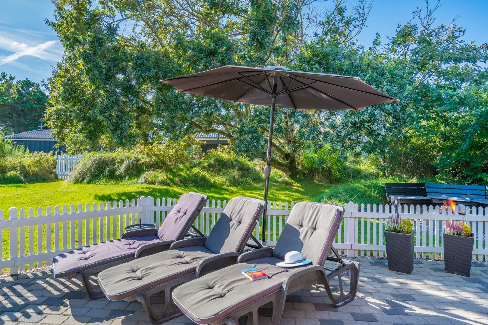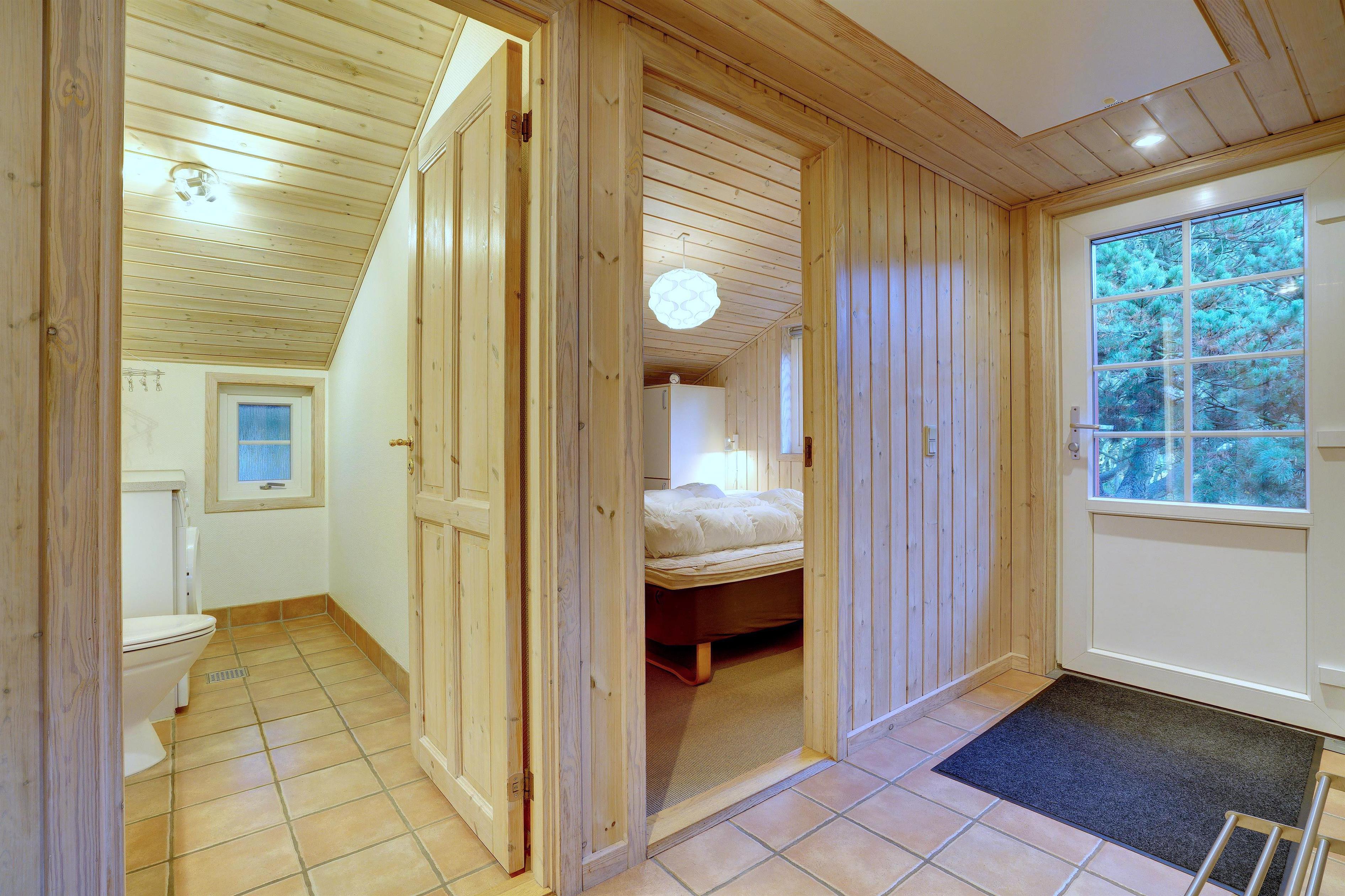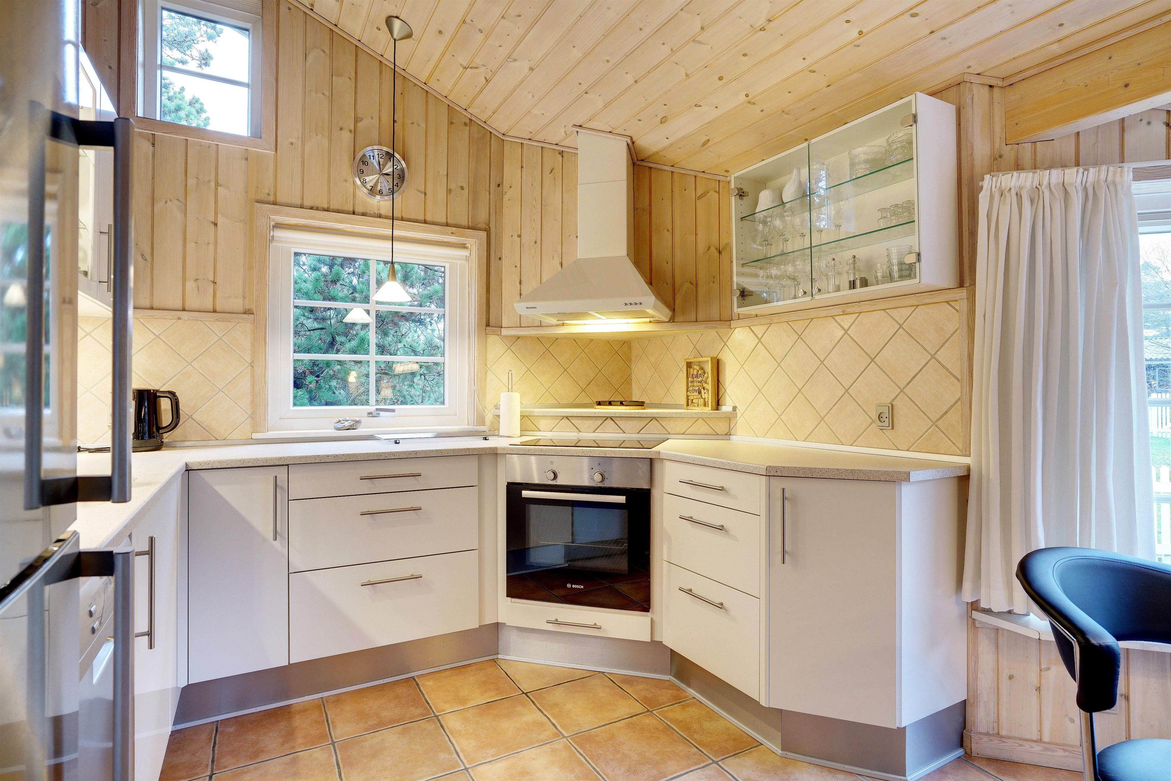 Dette meget velholdte og hyggelige indrettede feriehus med loft til kip er beliggende på en børnevenlig bevokset naturgrund. Huset har et stort moderne køkken/spisestue og stuen er indrettet med gode møbler. I det ene badeværelse er der installeret vaskemaskine og tørretumbler. Fra stuen er der udgang til dejlig lukket, ugeneret terrasse og børnene kan lege i legehuset som er på grunden.