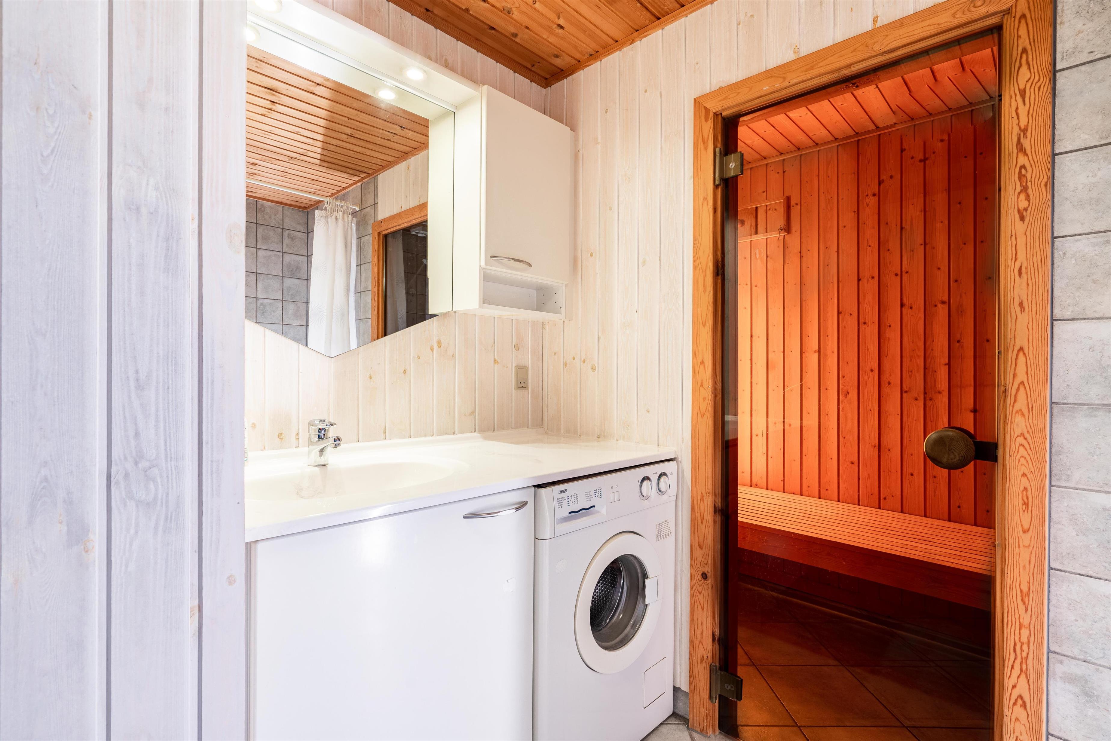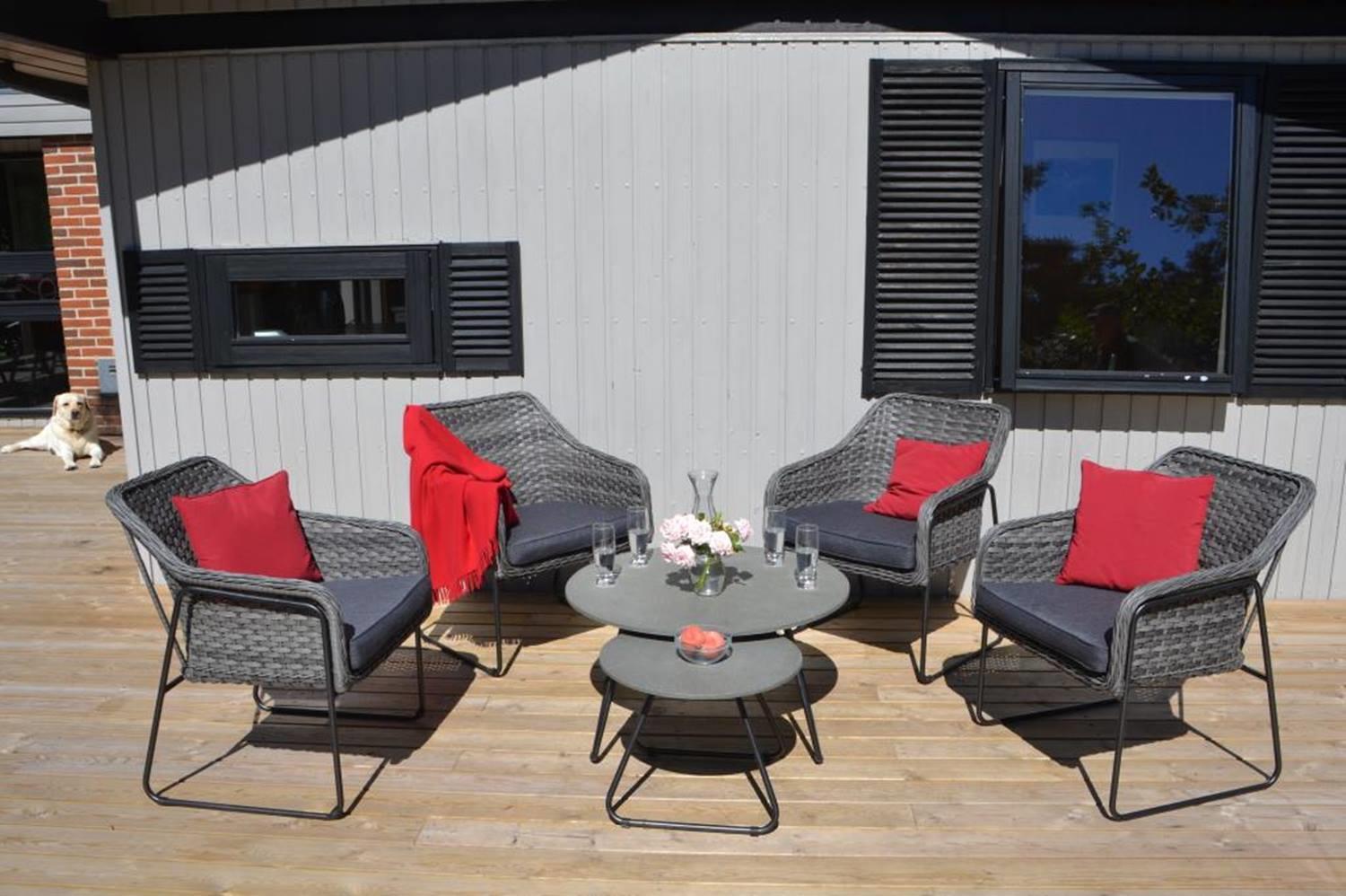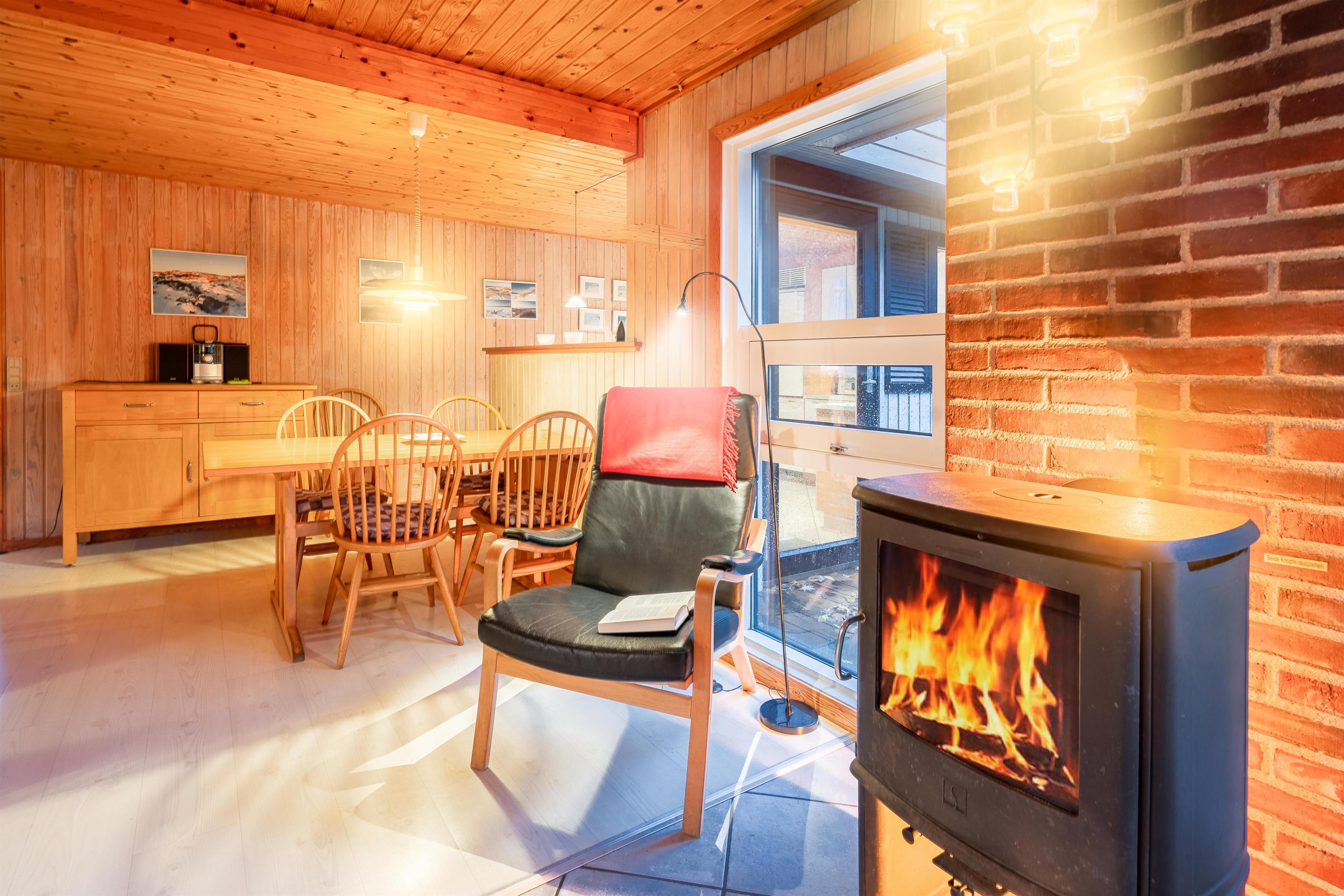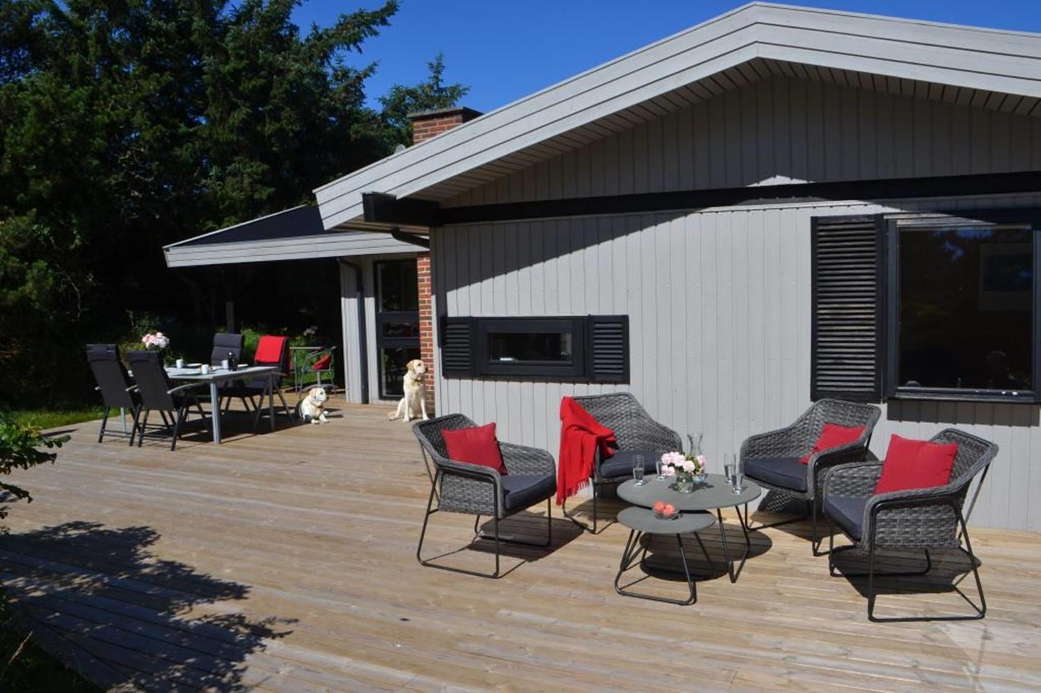 Meget velpasset og hyggelig indrettet feriehus beliggende på en dejlig rolig naturgrund med træer, buske og gode læmuligheder. Det flotte køkken ligger i åben forbindelse med stuen, som er indrettet med gode møbler. Der er fra stuen udgang til dejlig ugeneret terrasse. Godt badeværelse.