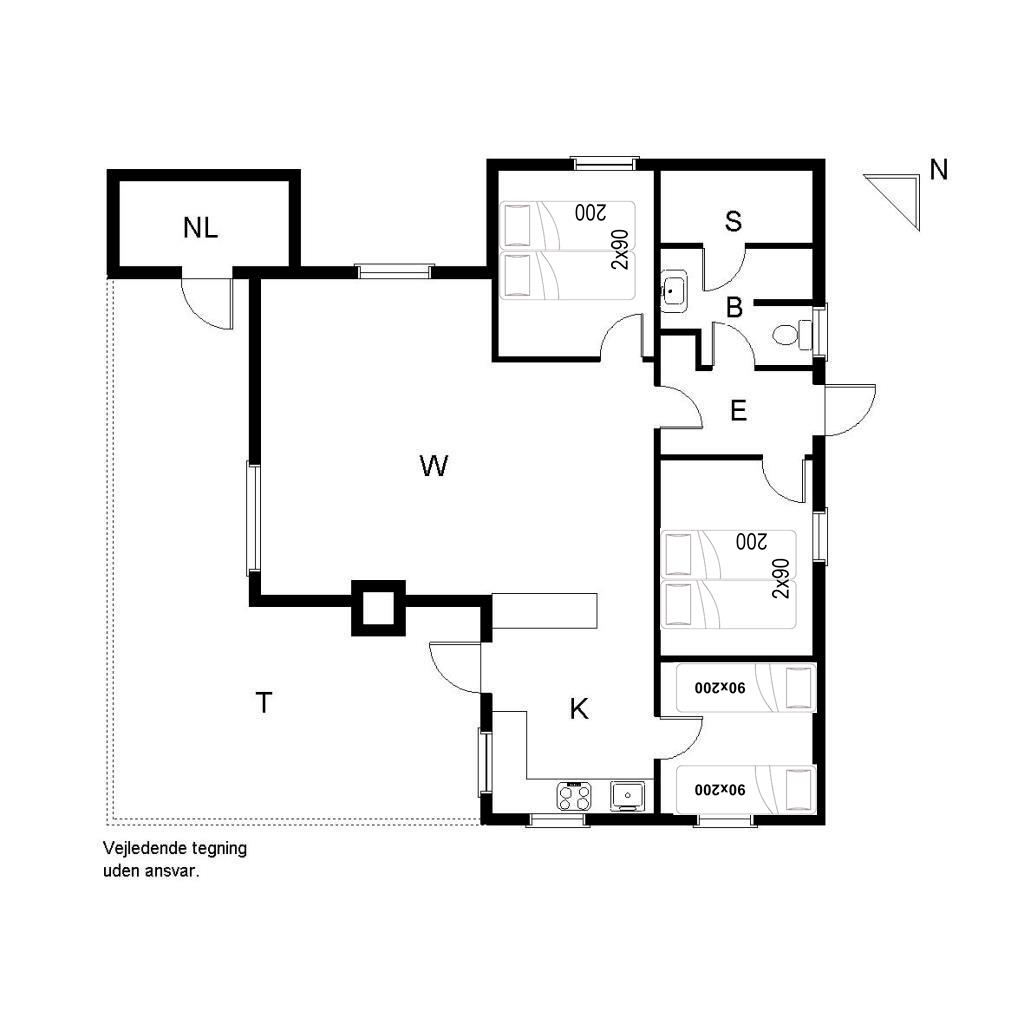 Sengestørrelse: 2 dobbeltsenge med 2 madrasser 90 x 200 cm + 2 enkeltsenge 90 x 200 cm