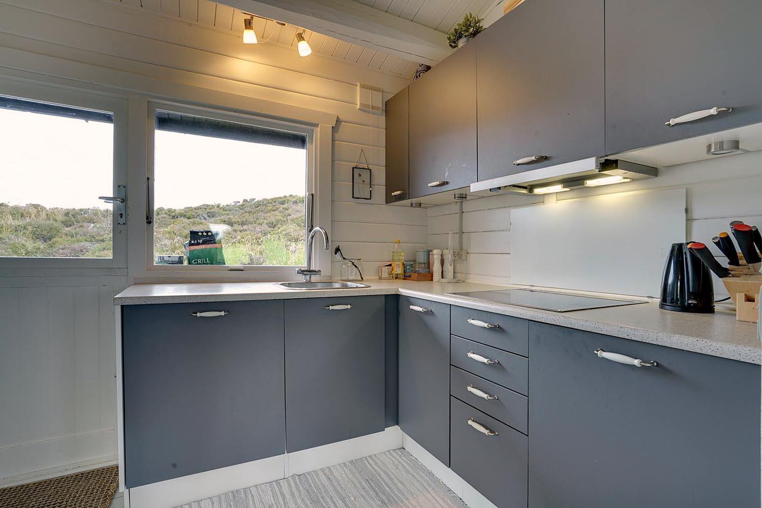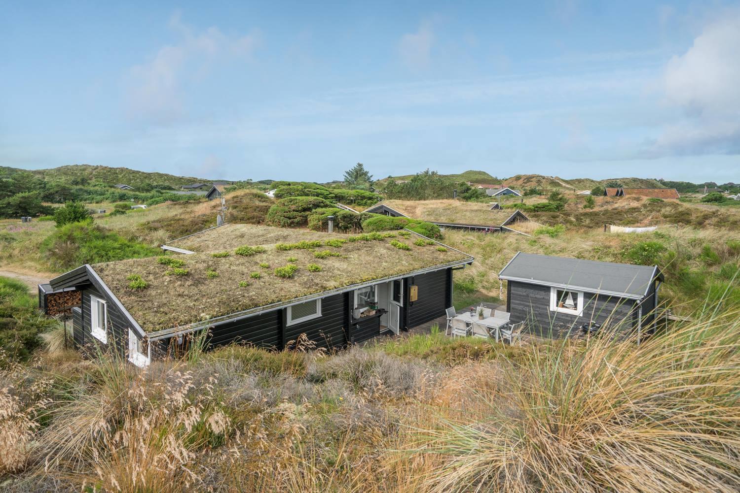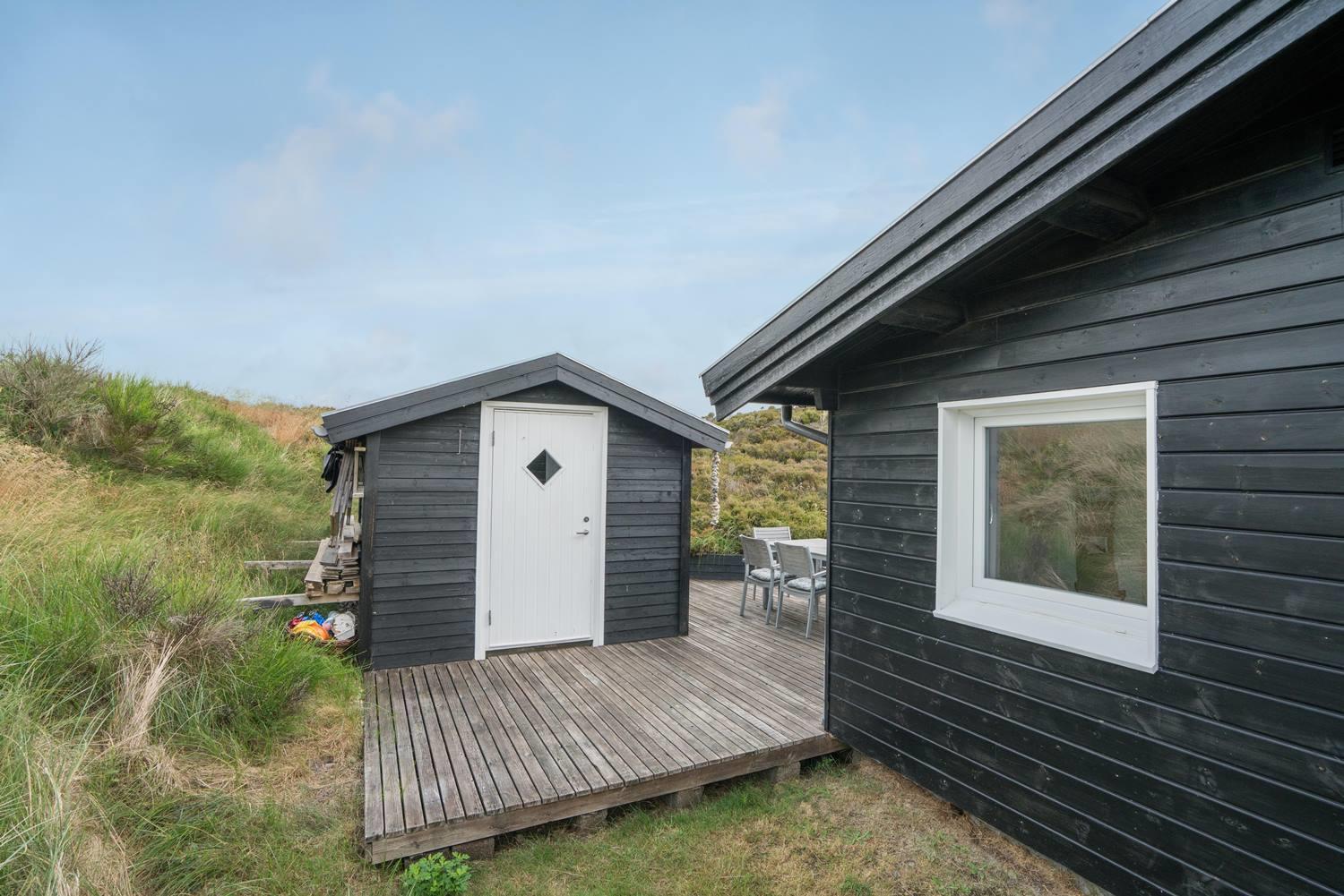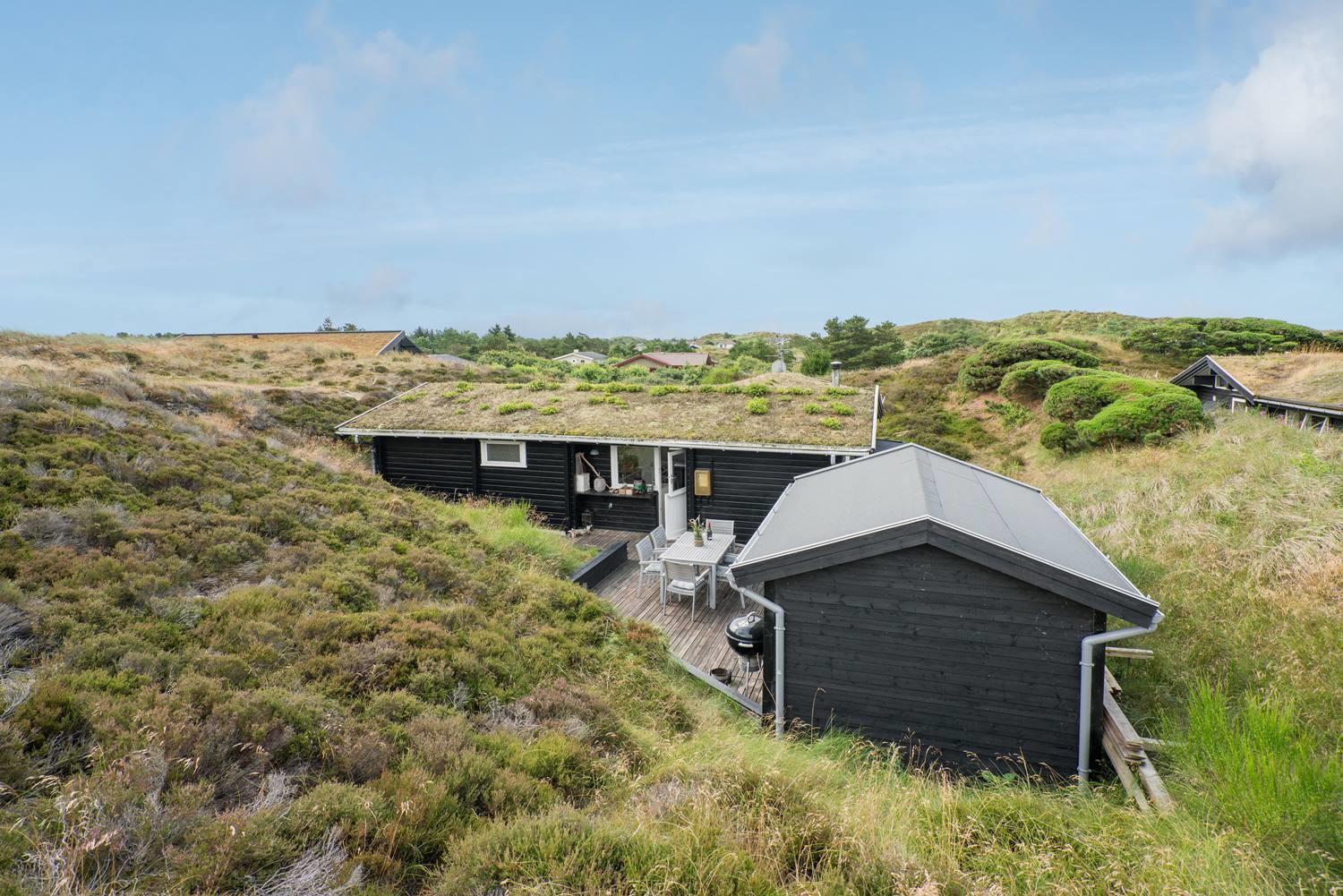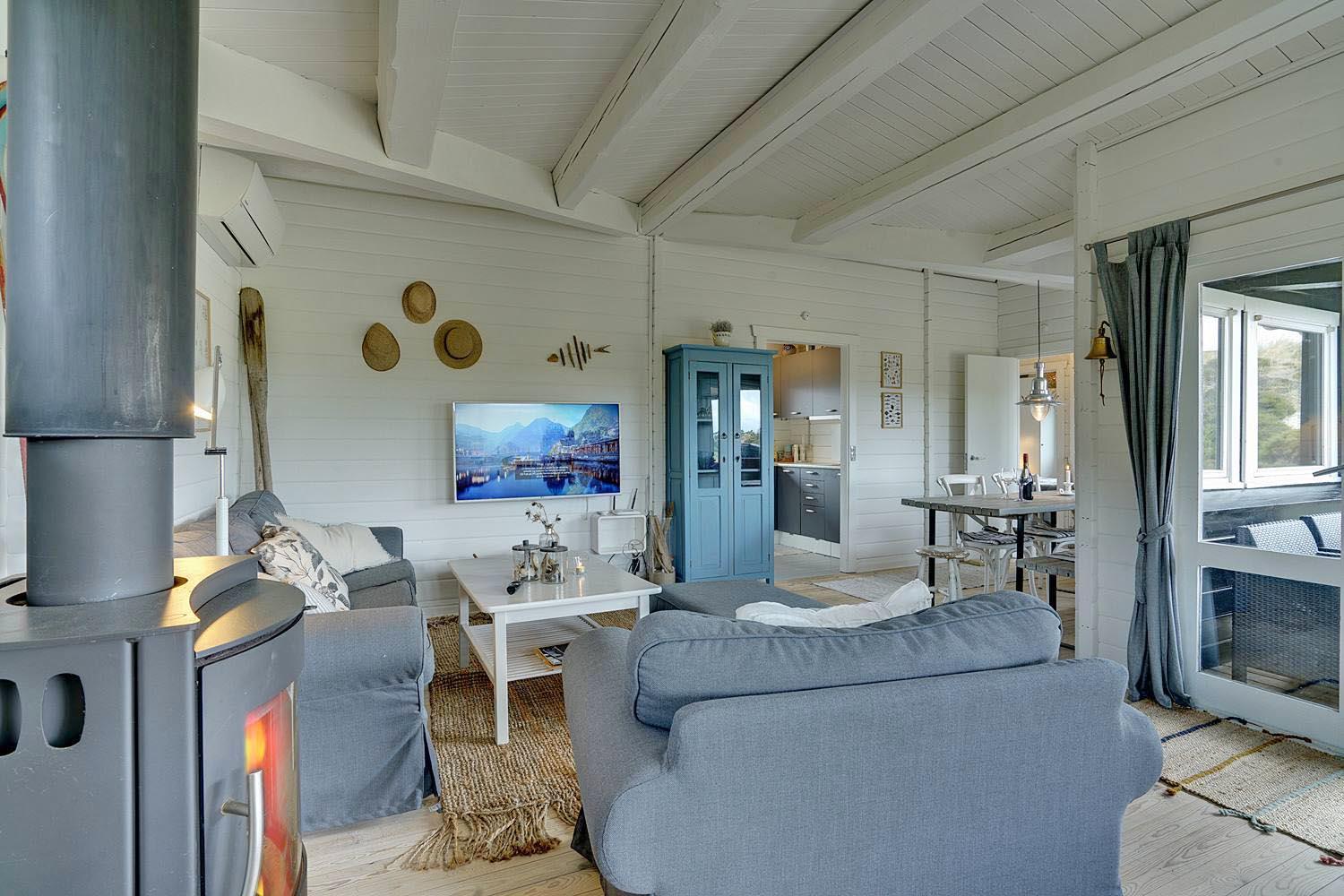 Hyggeligt sommerhus ved Henne Strand med egen terrasse, brændeovn og klitudsigt, perfekt til en afslappende ferie.