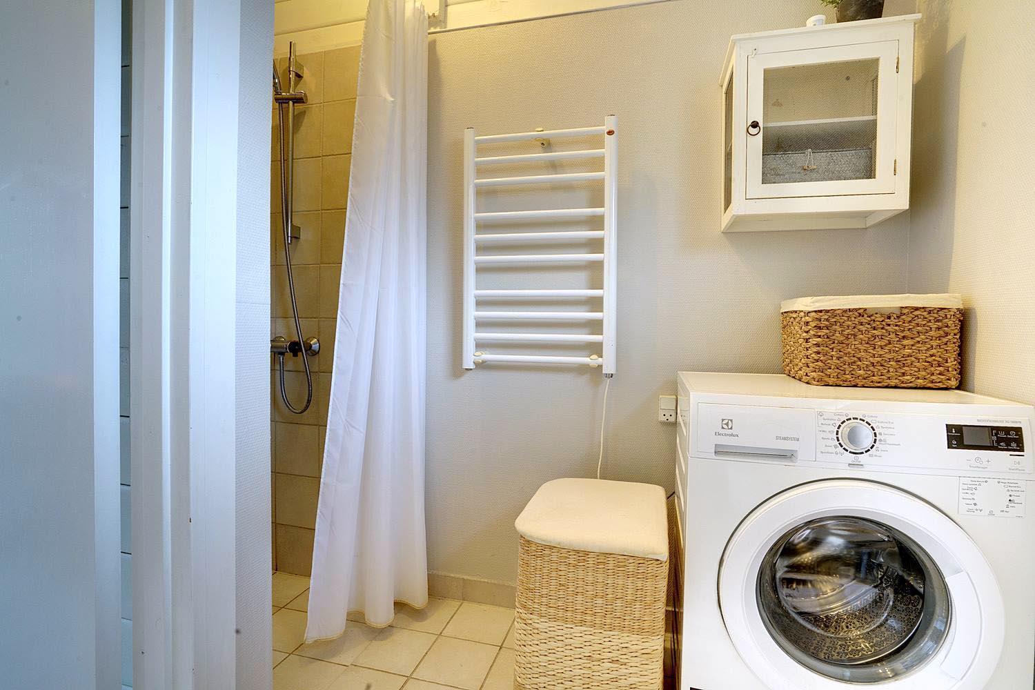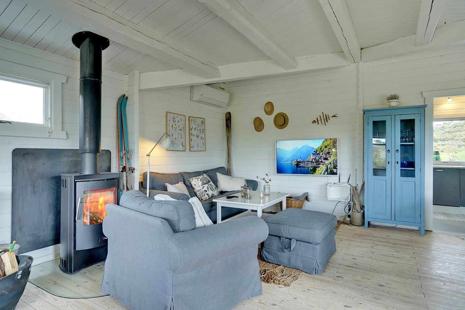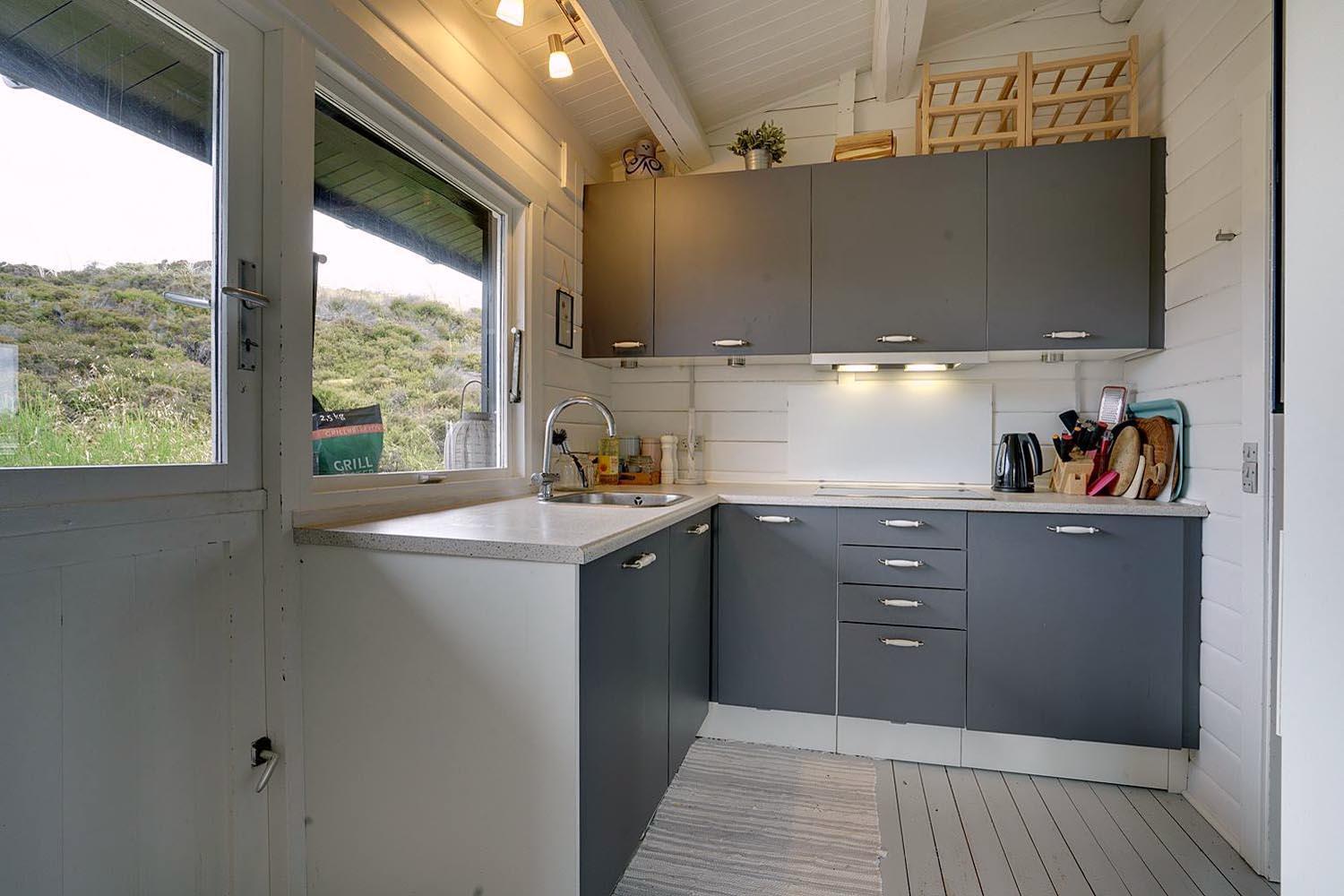 Fra husets køkken er der udgang til en af husets helt ugenerede terrasser foran huset er der både åben og delvis lukket terrasse hvor freden og solen kan nydes i fulde drag. Brændeovnen i stuen sørger for den helt rigtige hygge og feriestemning