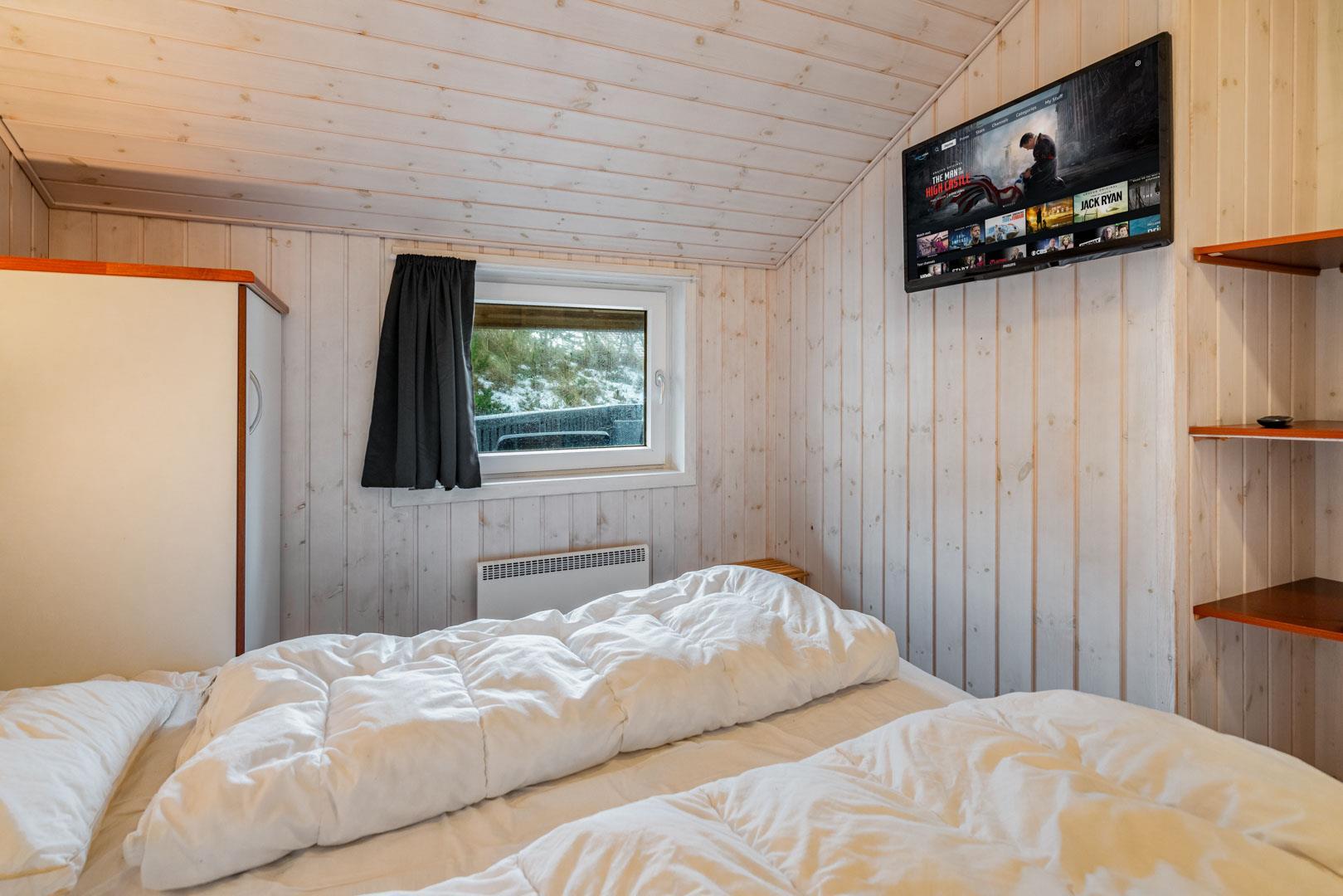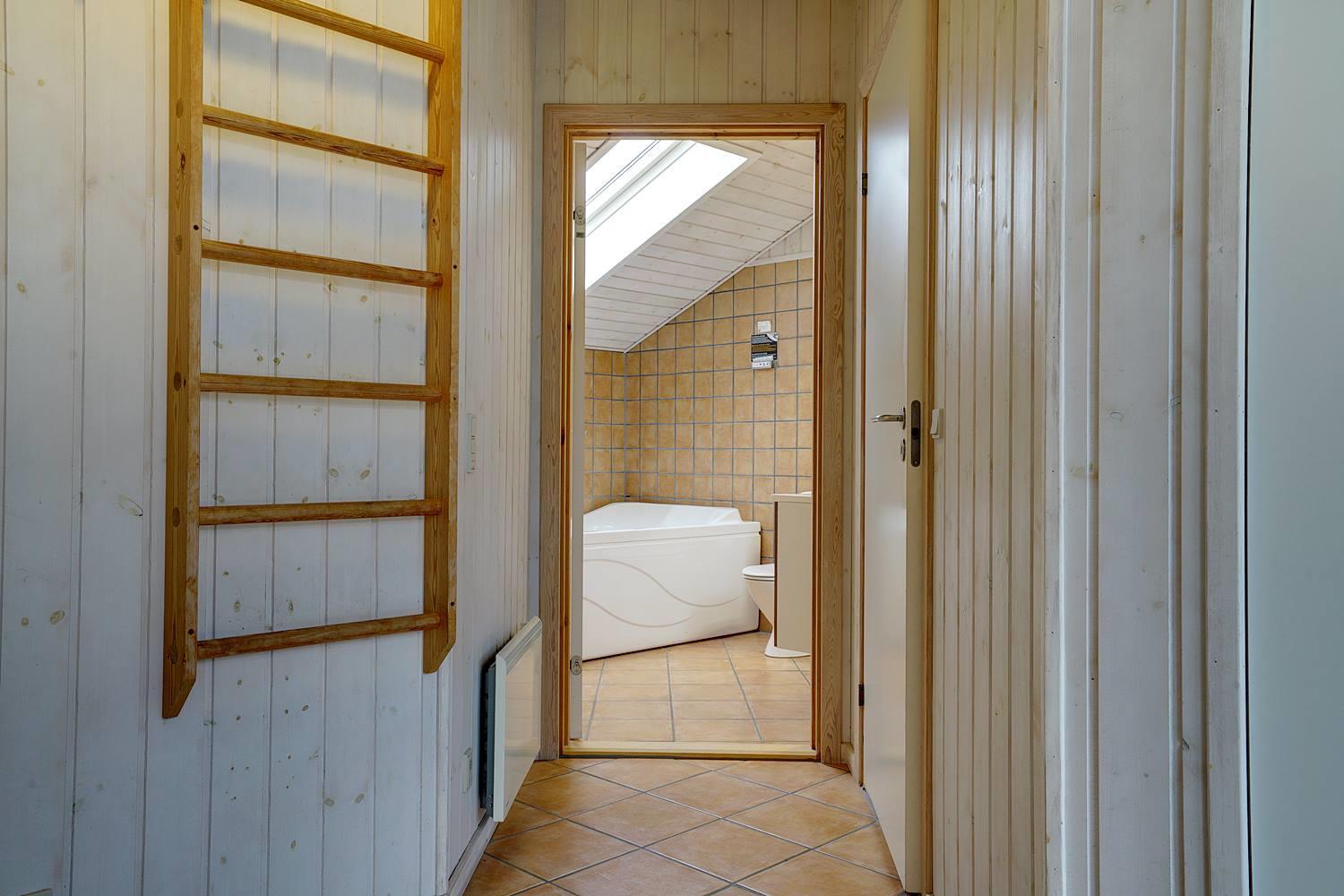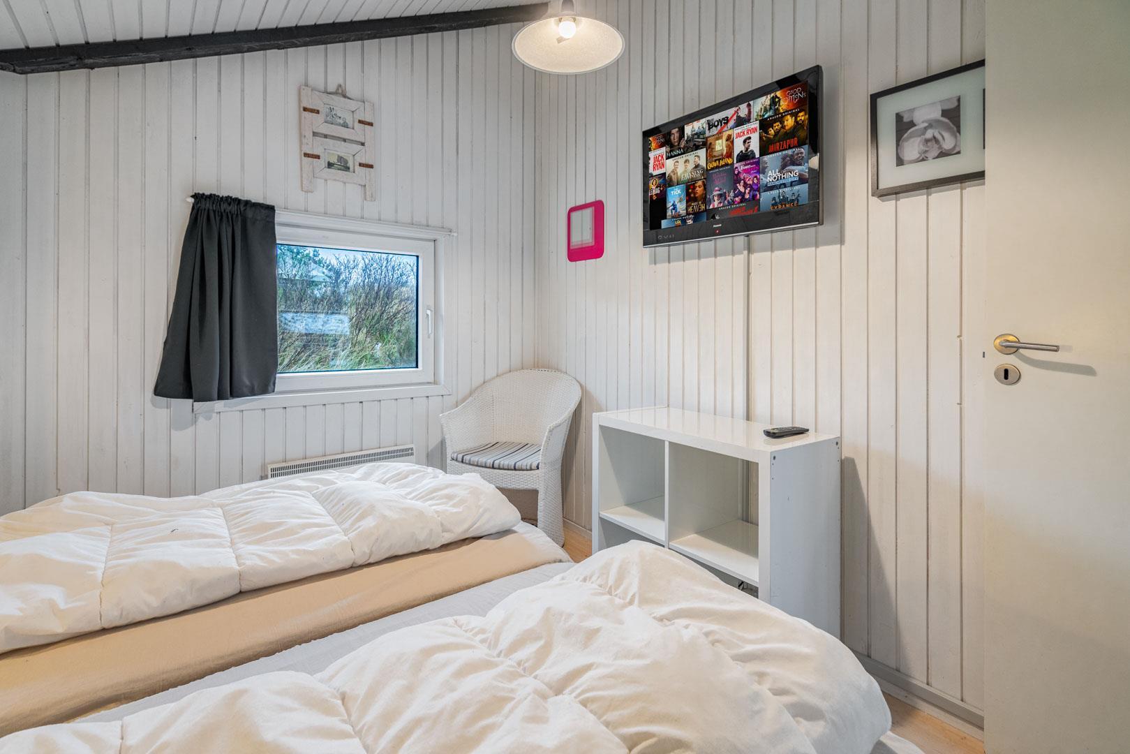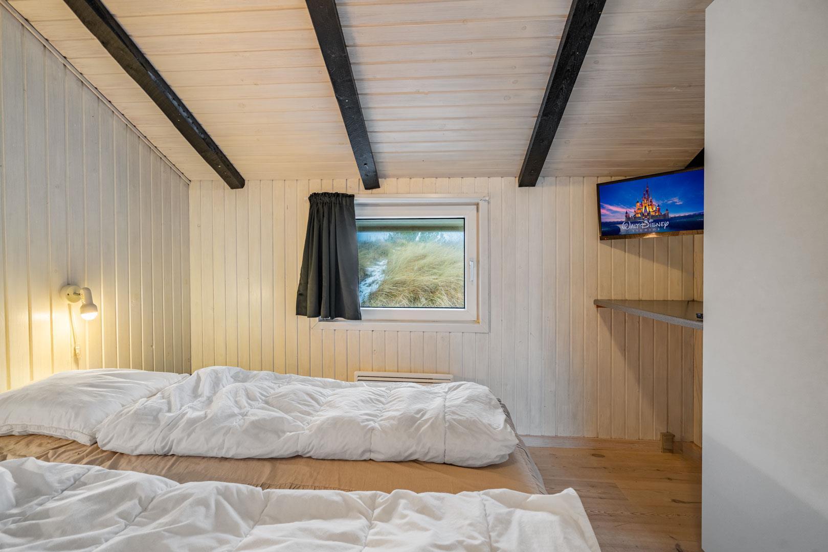 På en pragtfuld højtbeliggende klitgrund tæt ved vandet og for enden af stikvej ligger dette dejlige feriehus. Stor entre hvor man finder husets vaskemaskine og tørretumbler. Huset råder over 2 flotte badeværelse med bruser, i det ene kan en tur i spaen eller saunaen nydes. Husets køkken ligger i åben forbindelse med den rummelige stue, hvor fra der er udgang til ugeneret og indhegnet træ terrasse. Et virkeligt dejligt feriehus til den plads krævende familie. Tag bare din egen PC med da huset råder over gratis internetforbindelse.