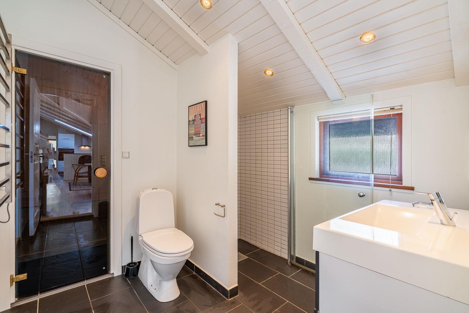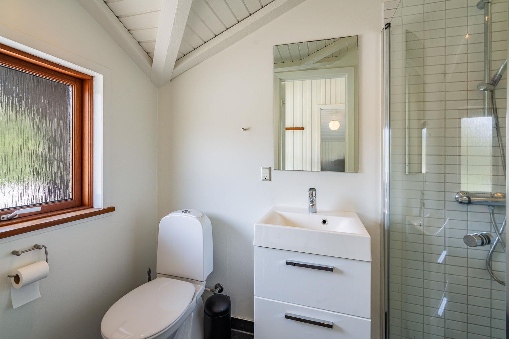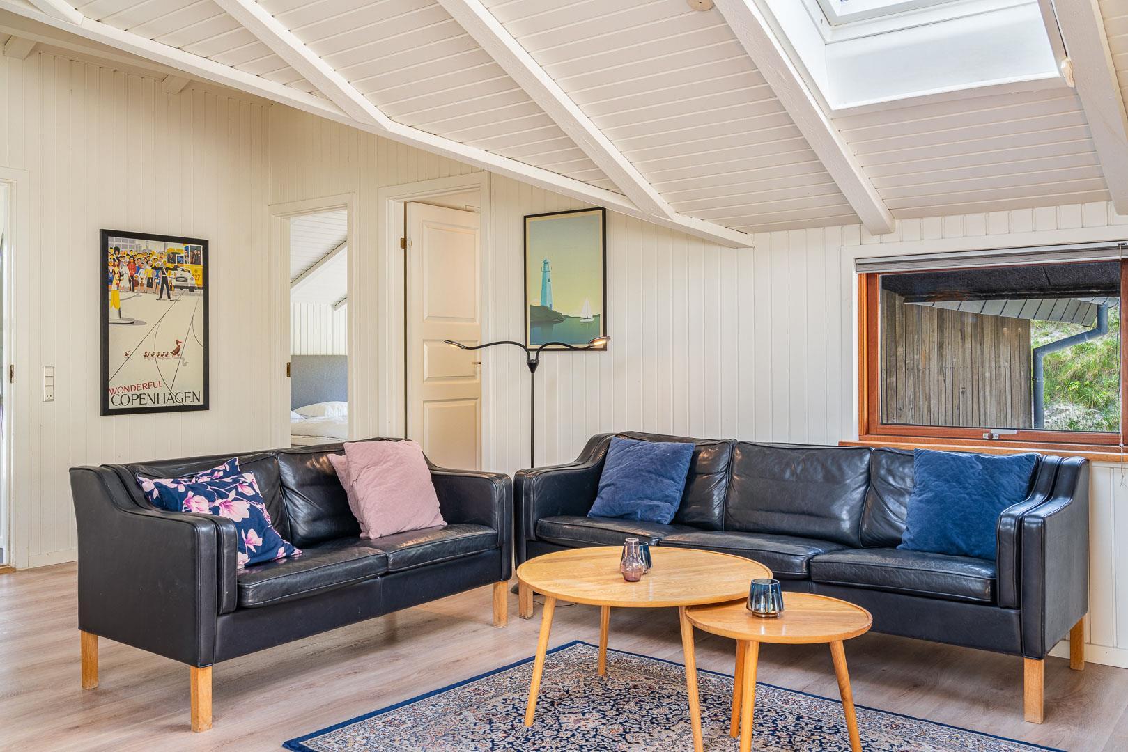 Her er plads til 6 personer med fire skønne soveværelser og to badeværelser. To af værelserne er med dobbeltsenge og derudover er her to værelser med en enkeltseng – perfekt hvis du rejser med teenagere der ønsker sit eget rum. Fra et af soveværelserne kan du træde direkte ud på morgenterrassen, hvor både morgensolen og morgenkaffen kan nydes, samtidig med at du hører det brusende Vesterhav.