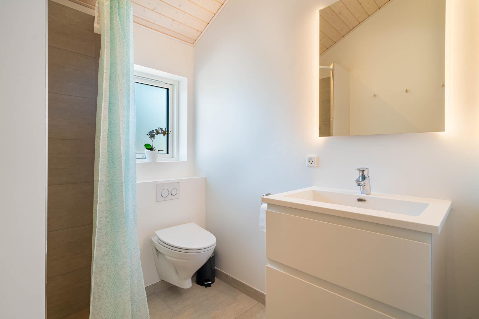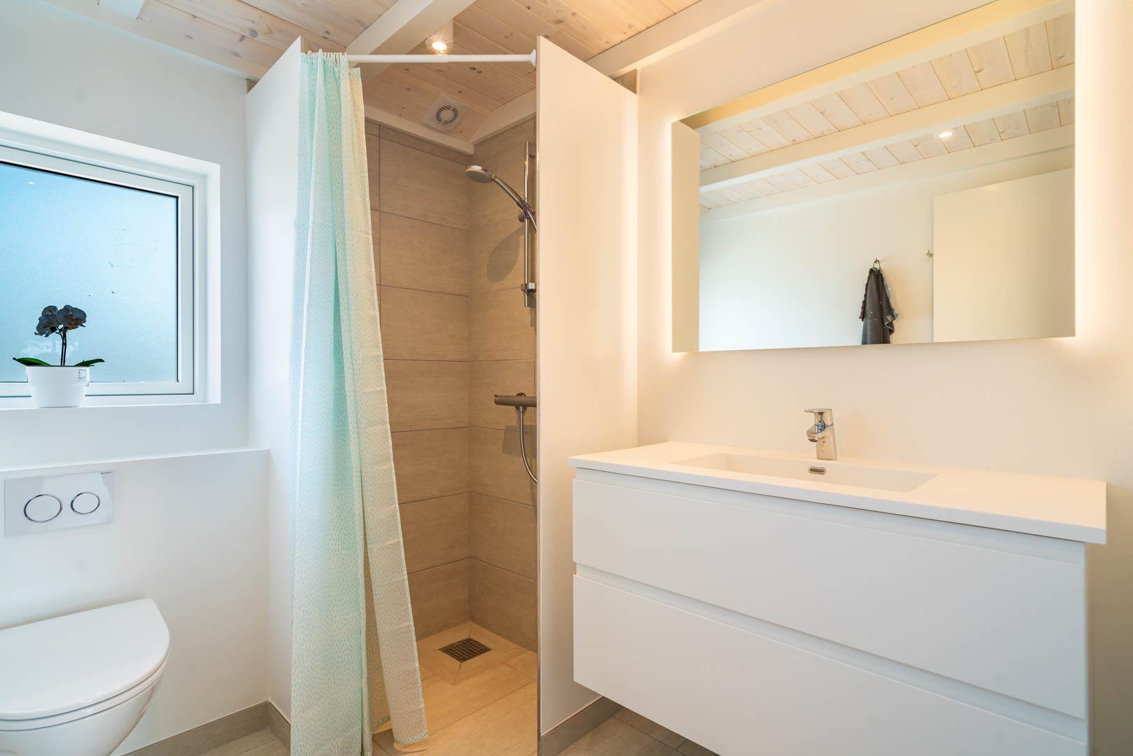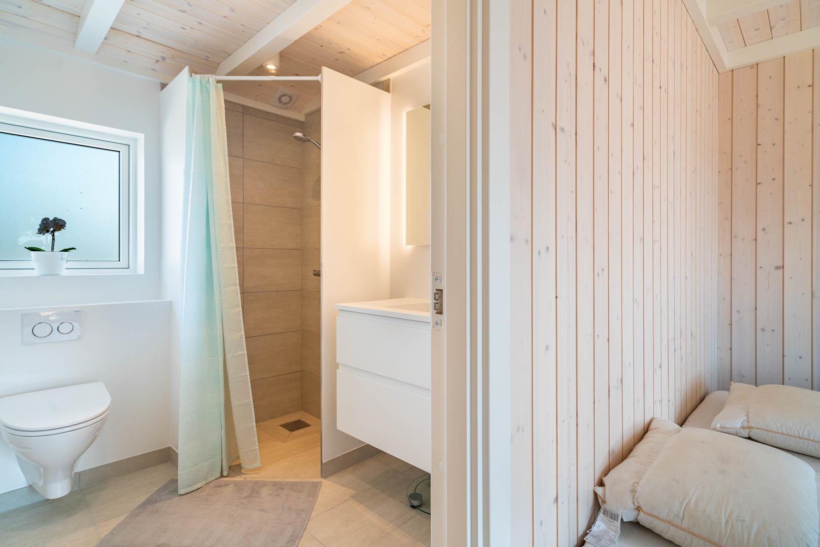2 badeværelser hvor af den ene ligger i forbindelse med det ene soverum.