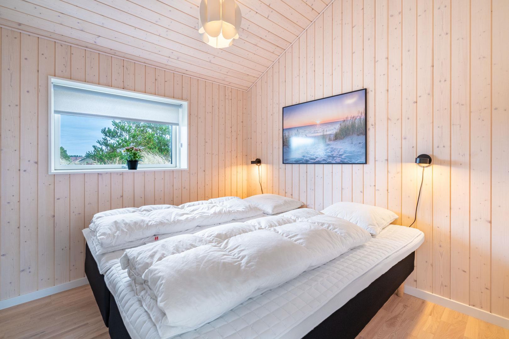 Sengestørrelse: 2 dobbeltsenge med 2 madrasser 90 x 200 cm + 1 dobbeltseng med 2 madrasser 80 x 200 cm