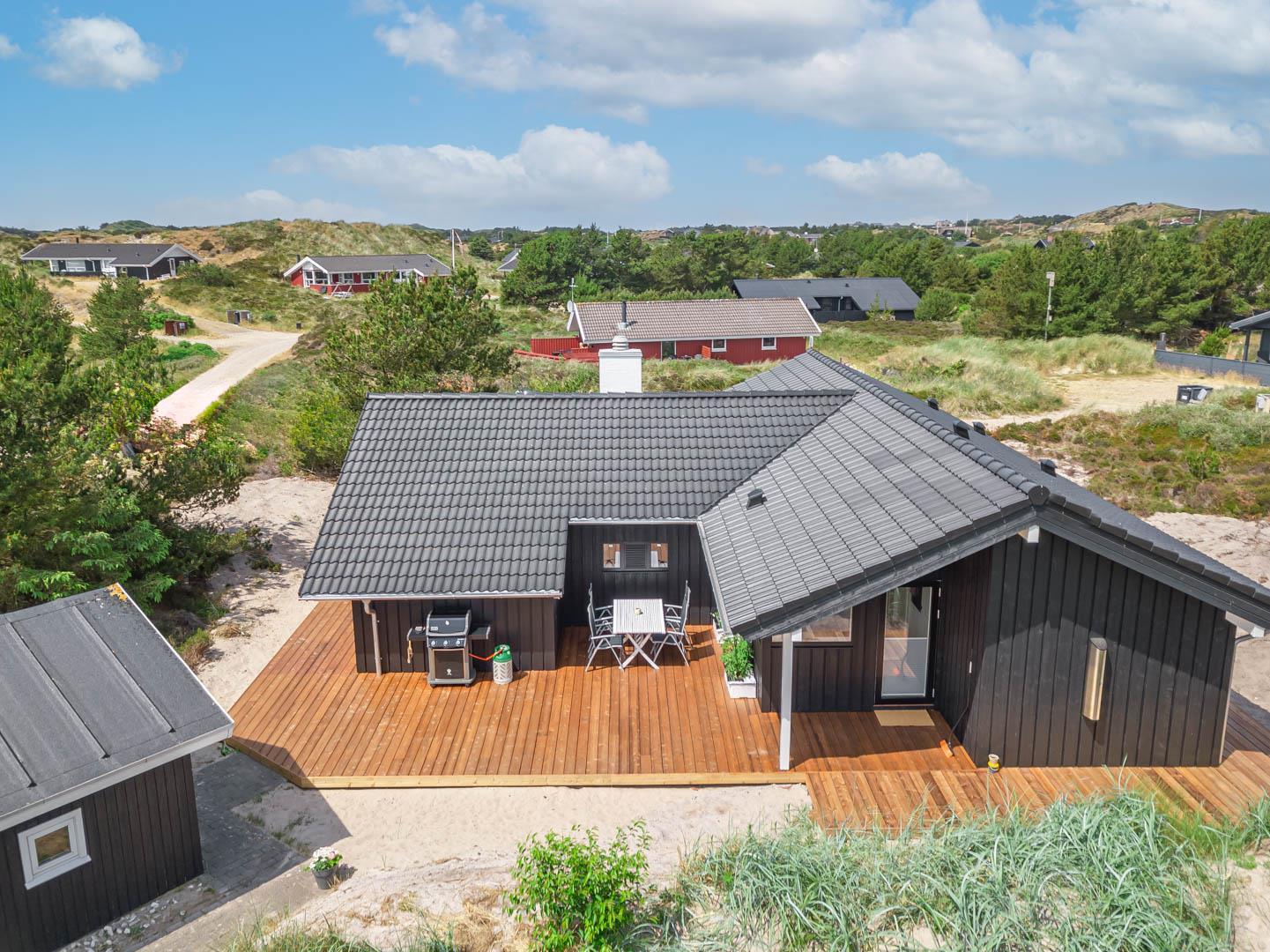 Sommerhuset ligger i gå afstand fra Henne Strand by med de gode handelsmuligheder, samt flere restauranter og den brusende Vesterhav. Der er flere gode naturstier i området, så husk vandreskoene samt cyklerne.