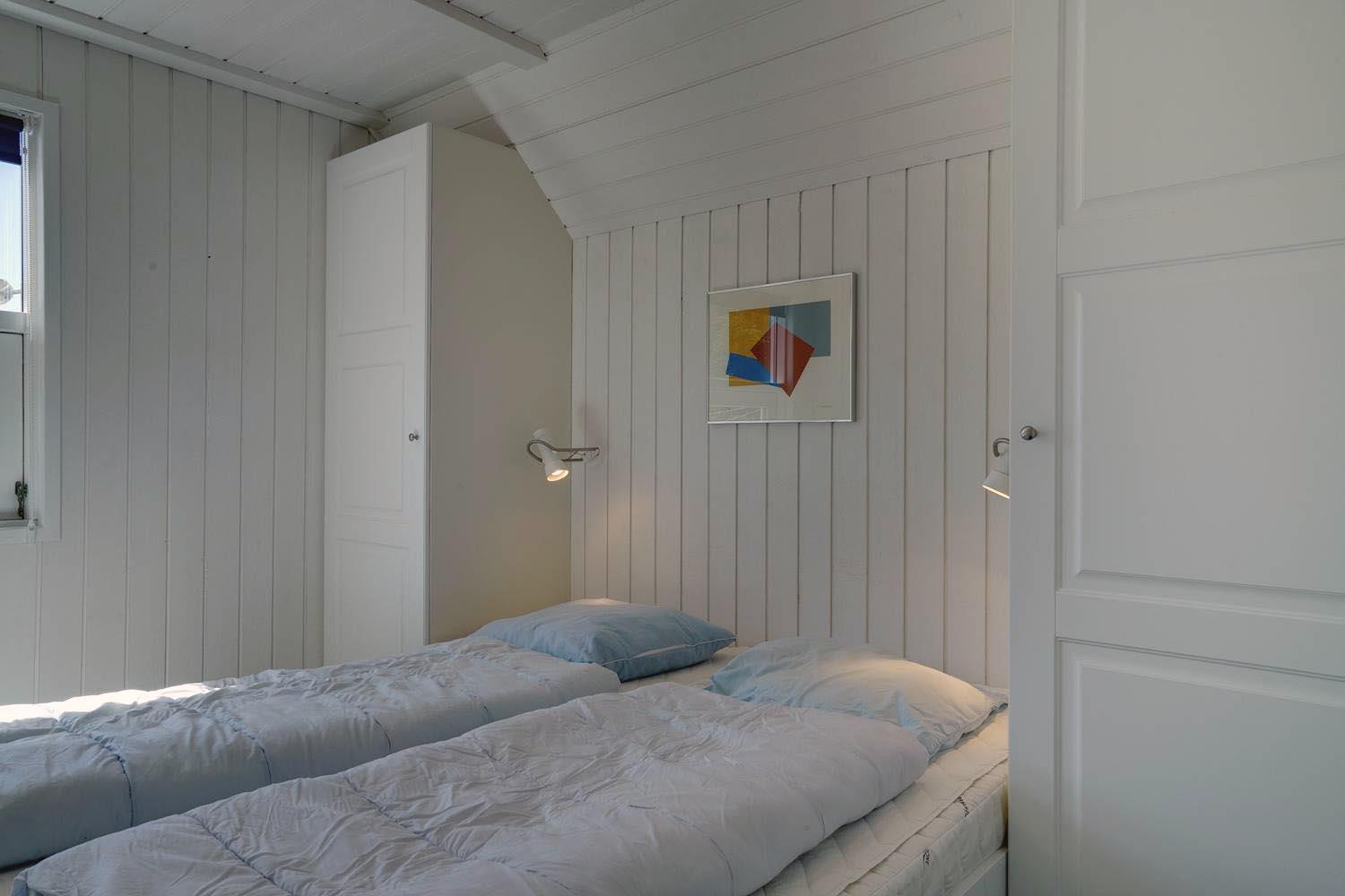 Huset rummer plads til op til 6 personer fordelt på tre skønne soveværelser: to med dobbeltsenge og ét med køjesenge . Badeværelset er lyst og moderne og har endda sauna – her kan du forkæle dig selv efter en lang dag i naturen.