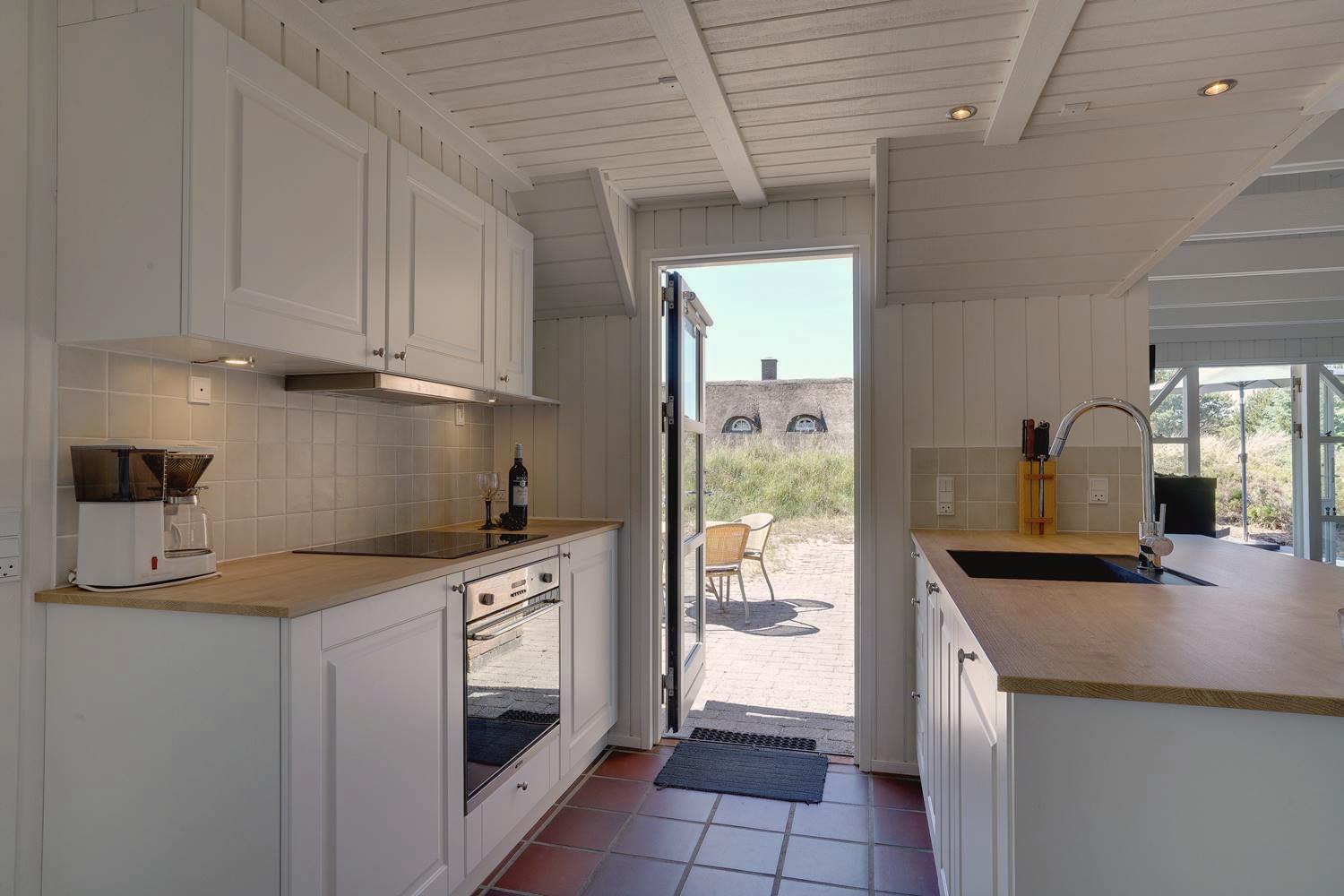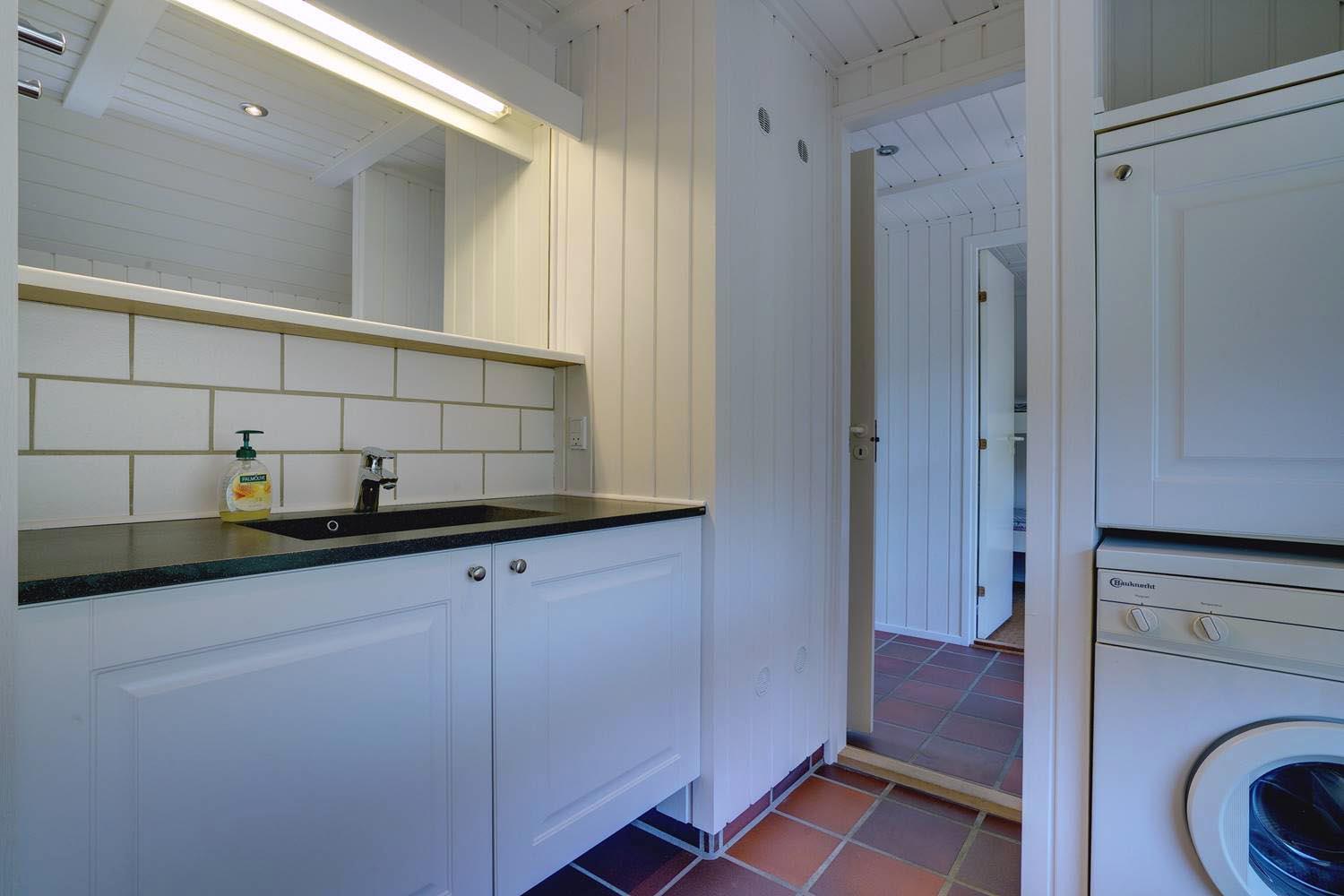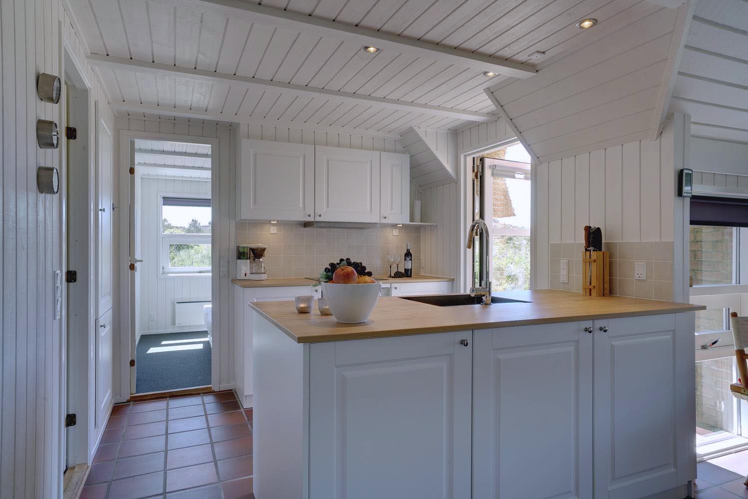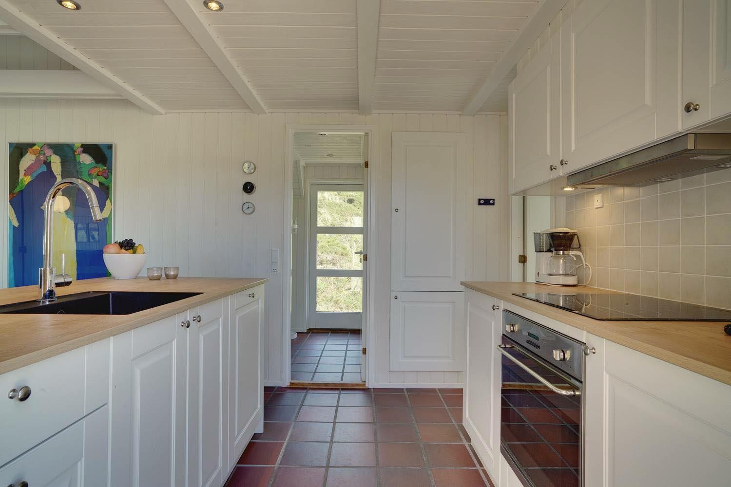 I stuen kan du tænde op i brændeovnen og nyde de hyggelige aftener med spil, bøger eller bare ro og samvær. Herfra er der direkte udgang til en hyggelig, delvist overdækket terrasse – perfekt til solrige dage og rolige aftener med et glas vin i hånden. Liggestolene står klar – det eneste du skal gøre, er at læne dig tilbage og nyde ferien.