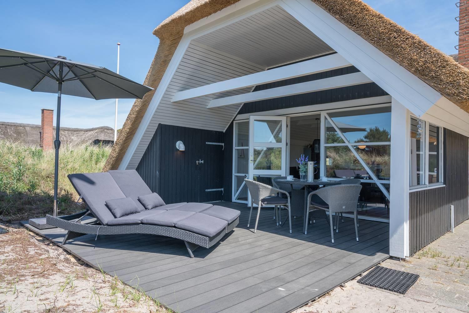 Skønt stråtækt sommerhus med sauna og centra beliggenhed – ægte feriehygge i hjertet af Henne Strand.
