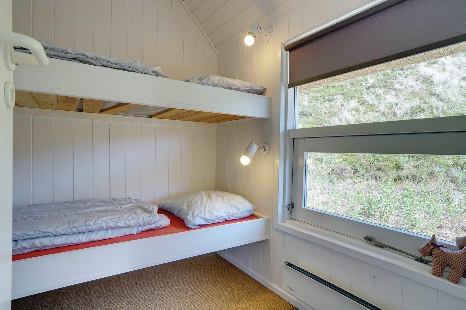 Sengestørrelser: 1 dobbeltseng med 180 x 200 cm + 1 dobbeltseng med 2 madrasser 80 x 200 cm + 1 køjeseng 70 x190m