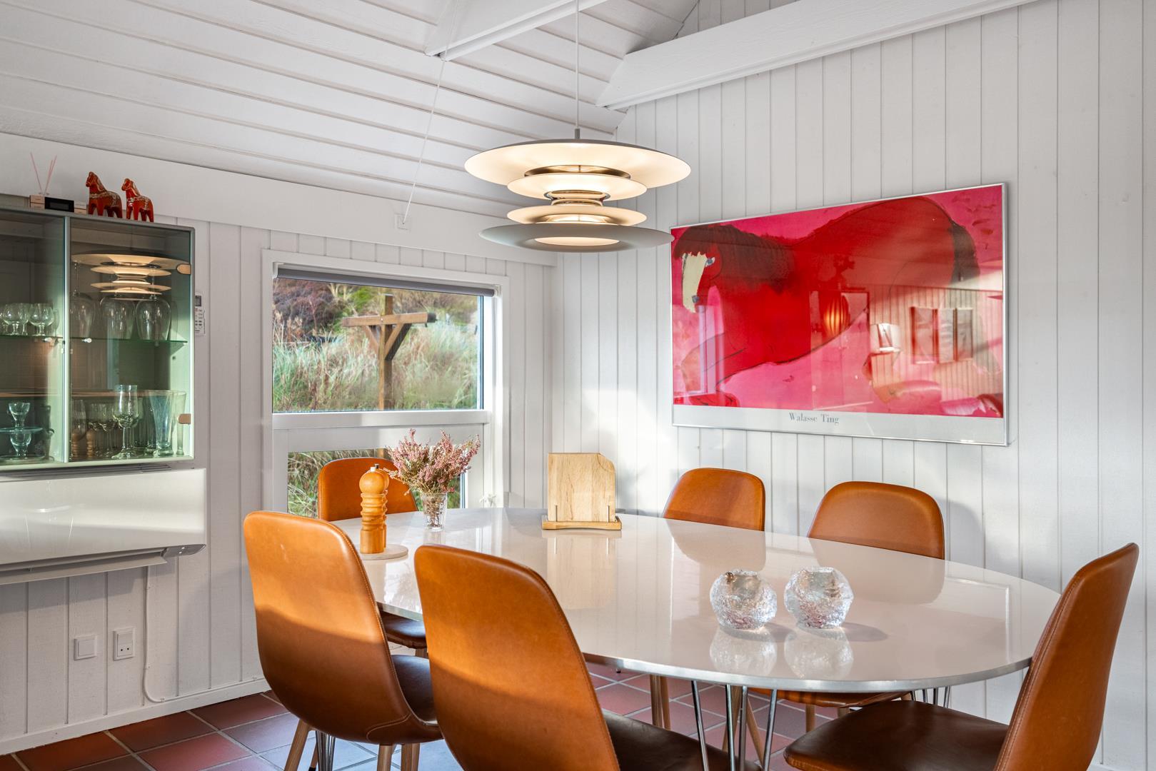 Huset er løbende moderniseret med blandt andet et stilrent køkken, flot badeværelse og nyere møbler – og fremstår overalt lyst, indbydende og personligt indrettet. Her får du en varm og afslappet atmosfære, hvor både detaljer og komfort er tænkt ind med omhu.