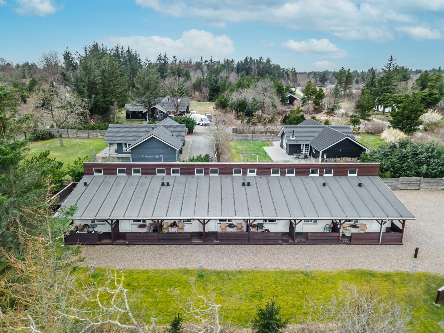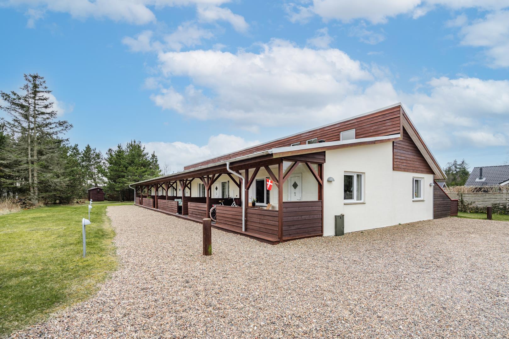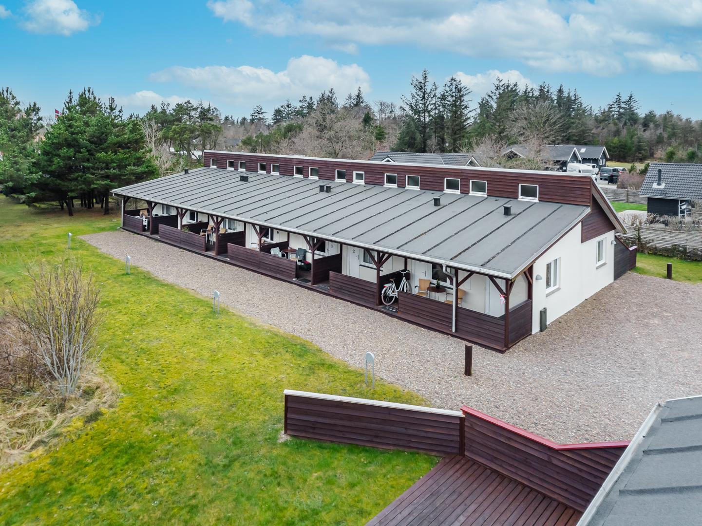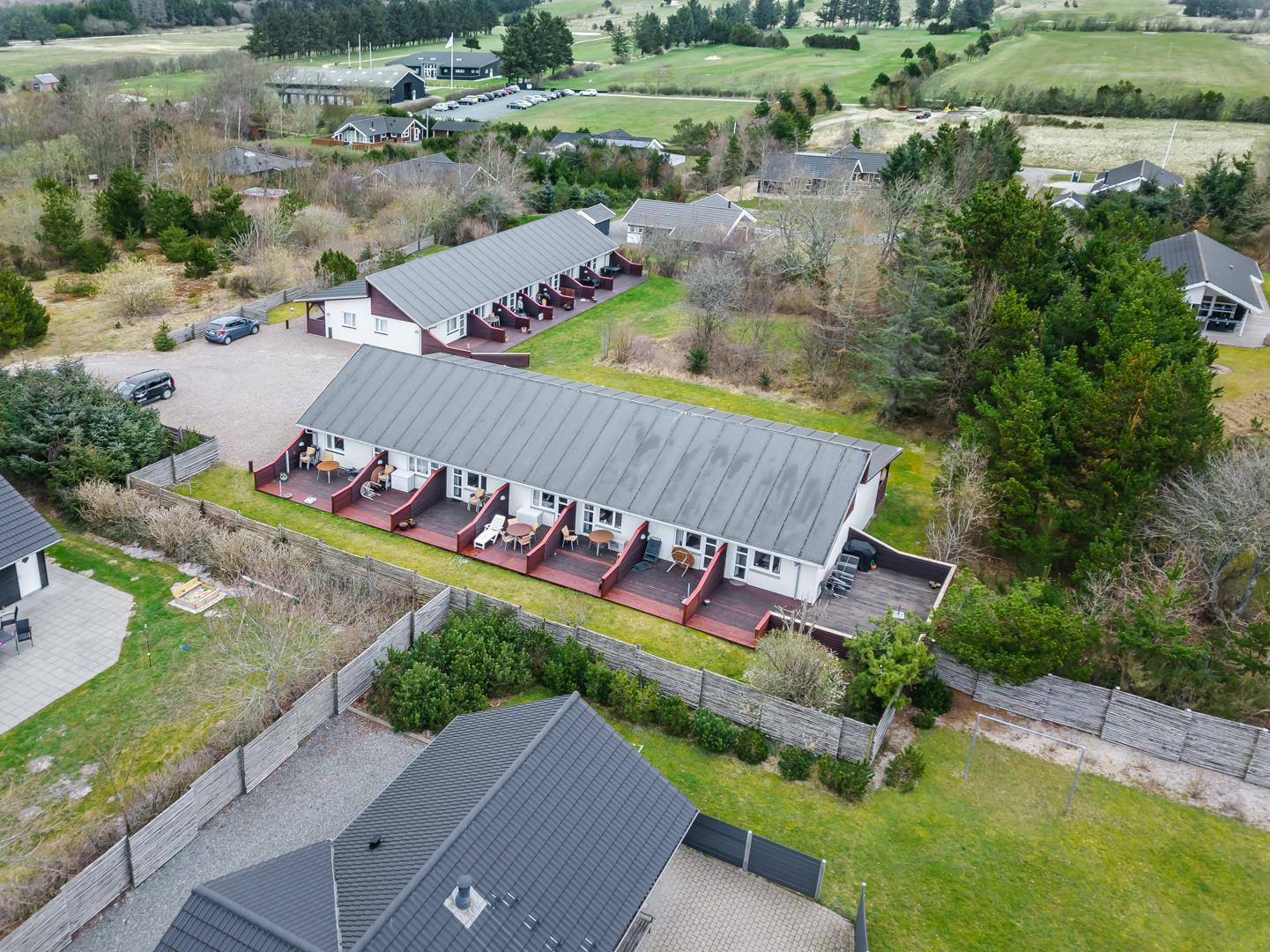 Velholdt ferielejlighed beliggende ca. 200 meter fra Henne Golfbane. Ferielejligheden er indrettet med 1 soverum med dobbeltseng. 2 madrasser på hems 1. sal. Fra det kombinerede køkken/alrum er der direkte udgang til lejlighedens terrasse. Ud over golf, er der god mulighed for at besøge områdets ride center og i kort cykelafstand ligger Blåbjerg Plantage. Blåbjerg Plantage er beliggende sydvest for Nr. Nebel grænsende helt ud til klitheden langs vestkysten, og mod nord ligger plantagen i direkte sammenhæng med Nymindegab Plantage. Blaabjerg Plantage har næsten overalt præg af sandflugt og byder på spændende natur med klitter, kystskrænter, bjerge, hede, egekrat og plantage. Man kan endvidere være heldig at se noget af det kronvildt der er i plantagen. Langs kysten er der anlagt en række parkeringspladser. Inde i plantagen er der gang-, ride- og cykelstier.