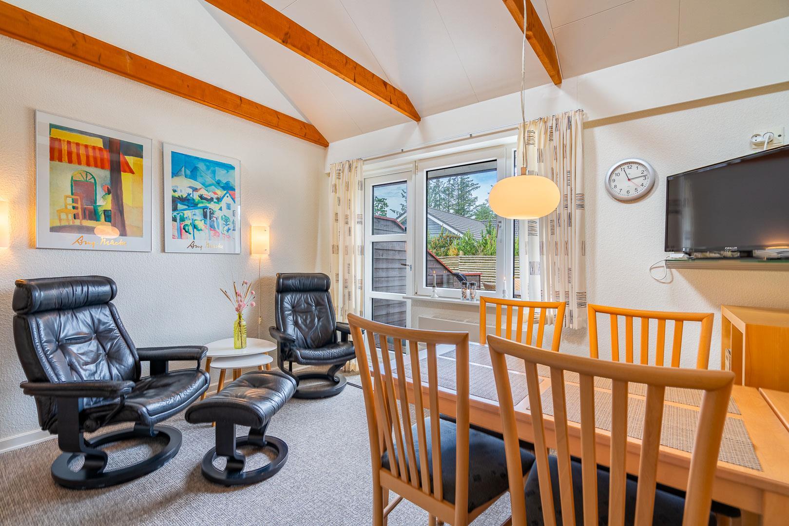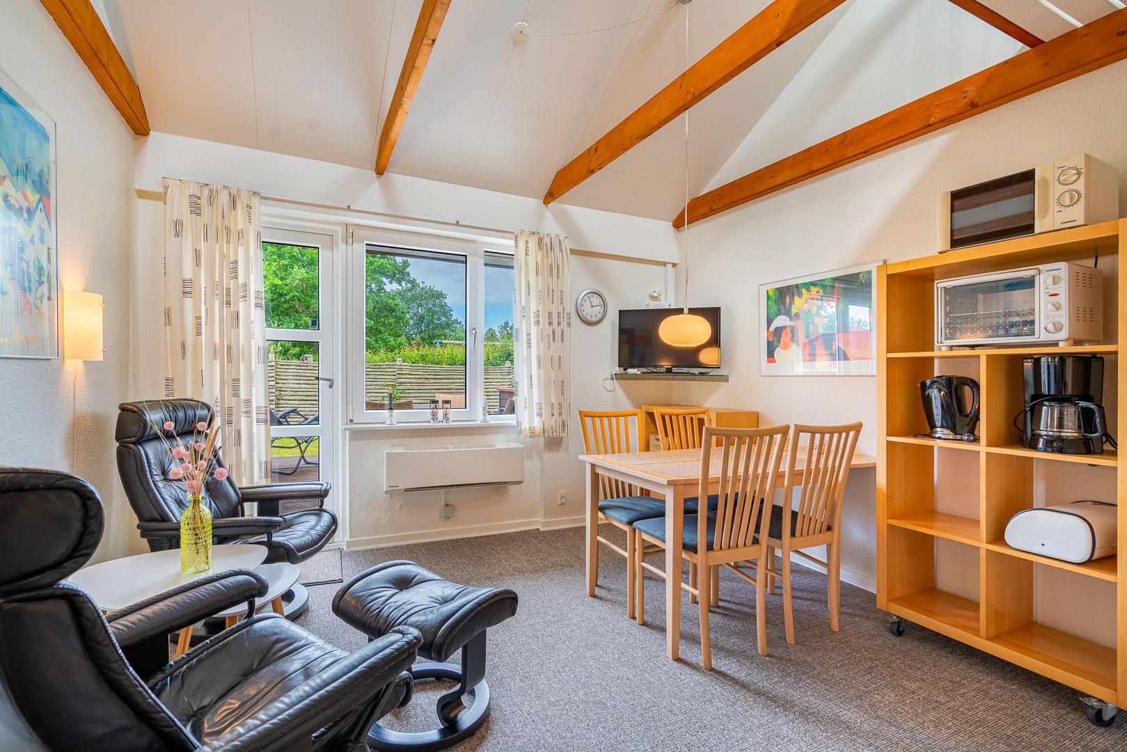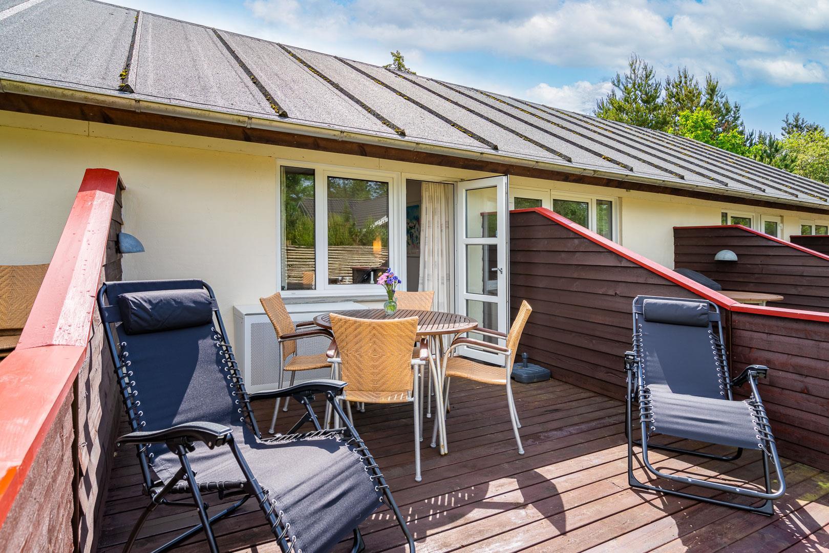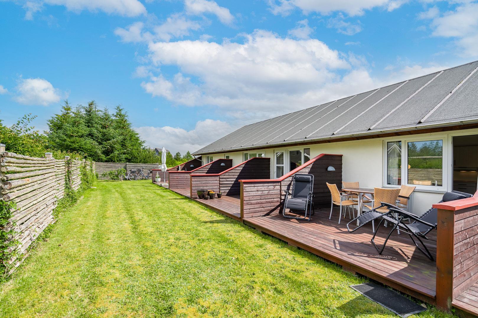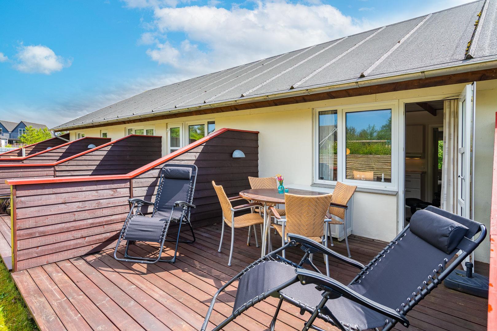 Velholdt ferielejlighed beliggende ca. 200 meter fra Henne Golfbane. Ferielejligheden er indrettet med 1 soverum med dobbeltseng. 2 madrasser på hems 1. sal. Fra det kombinerede køkken/alrum er der direkte udgang til lejlighedens terrasse. Ud over golf, er der god mulighed for at besøge områdets ride center og i kort cykelafstand ligger Blåbjerg Plantage. Blåbjerg Plantage er beliggende sydvest for Nr. Nebel grænsende helt ud til klitheden langs vestkysten, og mod nord ligger plantagen i direkte sammenhæng med Nymindegab Plantage. Blaabjerg Plantage har næsten overalt præg af sandflugt og byder på spændende natur med klitter, kystskrænter, bjerge, hede, egekrat og plantage. Man kan endvidere være heldig at se noget af det kronvildt der er i plantagen. Langs kysten er der anlagt en række parkeringspladser. Inde i plantagen er der gang-, ride- og cykelstier.