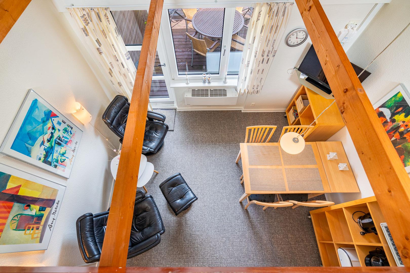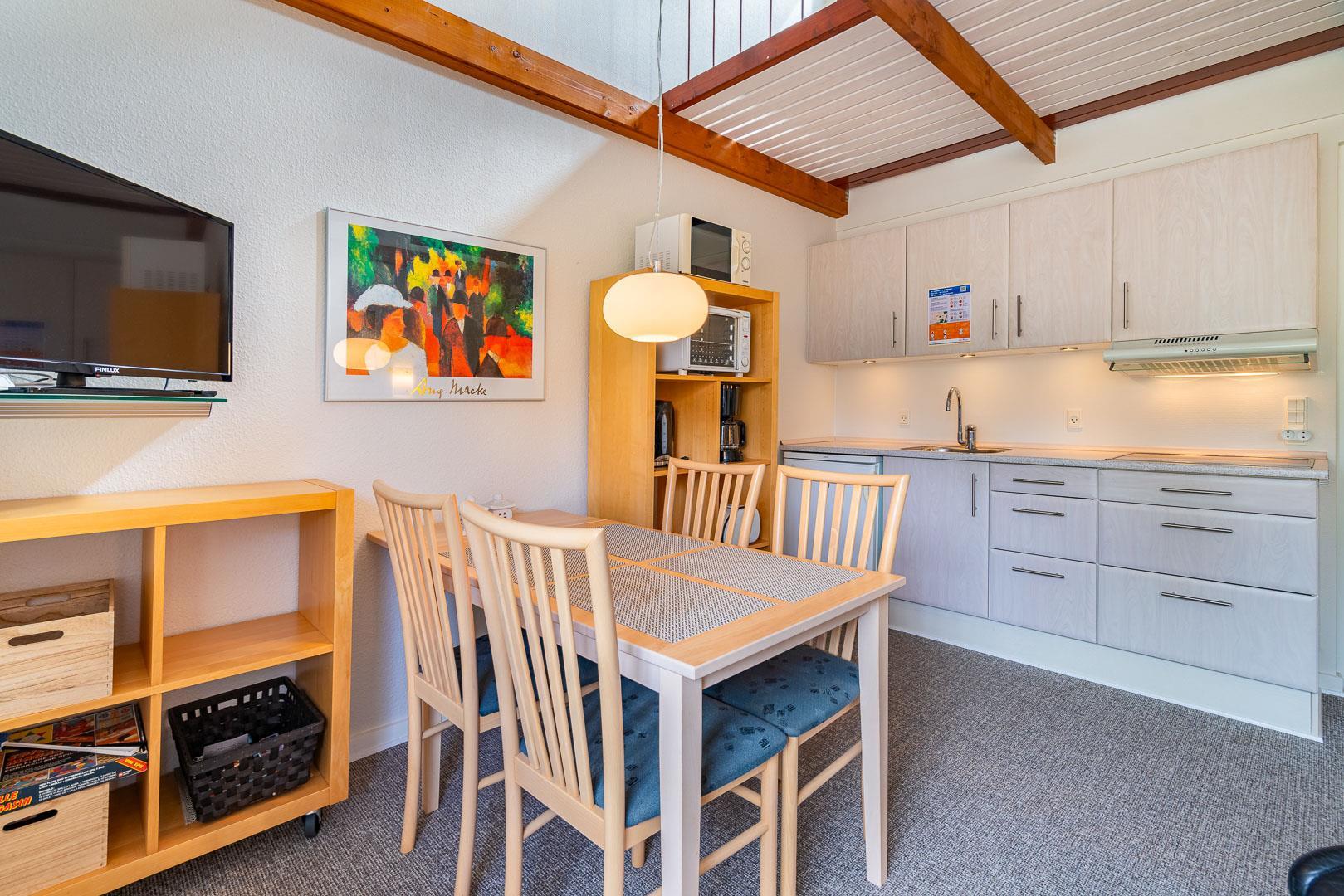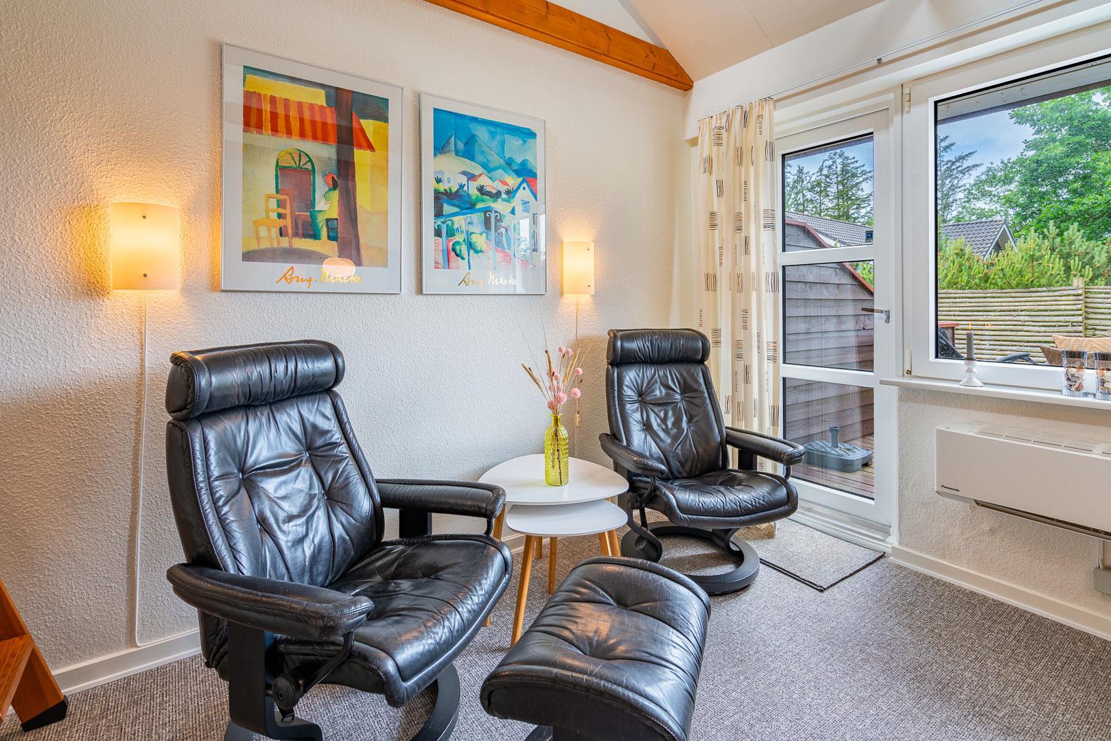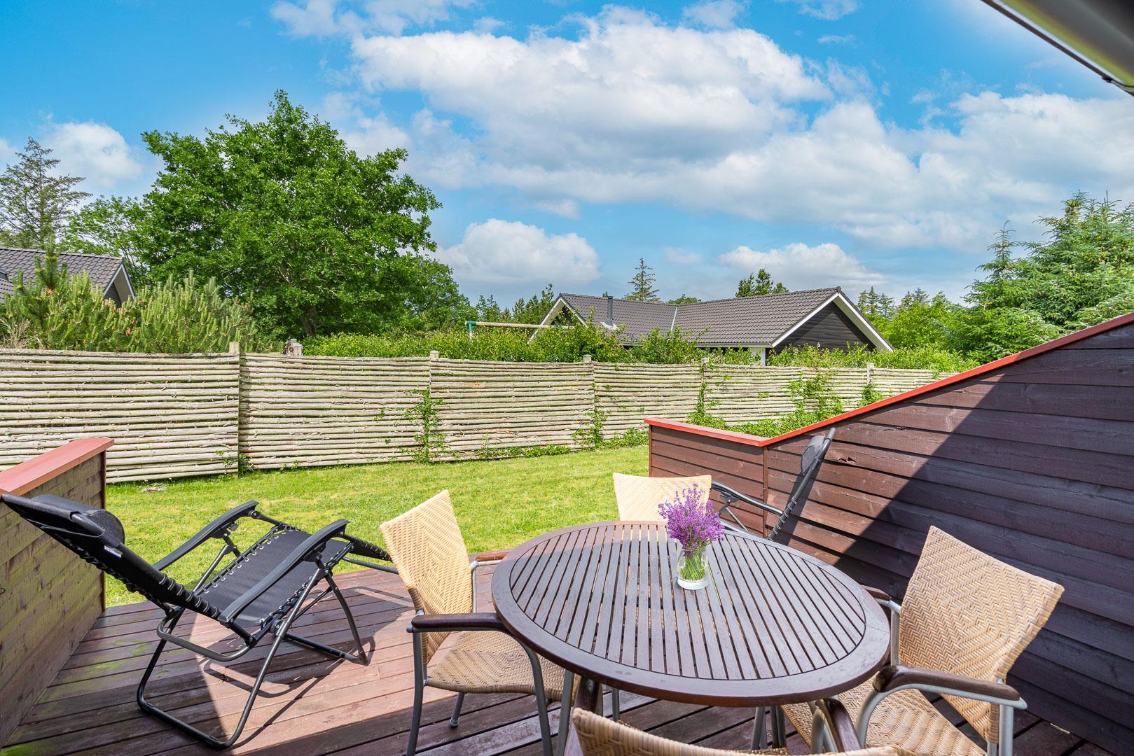 Velholdt ferielejlighed beliggende ca. 200 meter fra Henne Golfbane. Ferielejligheden er indrettet med 1 soverum med dobbeltseng. 2 madrasser på hems 1. sal. Fra det kombinerede køkken/alrum er der direkte udgang til lejlighedens terrasse. Ud over golf, er der god mulighed for at besøge områdets ride center og i kort cykelafstand ligger Blåbjerg Plantage. Blåbjerg Plantage er beliggende sydvest for Nr. Nebel grænsende helt ud til klitheden langs vestkysten, og mod nord ligger plantagen i direkte sammenhæng med Nymindegab Plantage. Blaabjerg Plantage har næsten overalt præg af sandflugt og byder på spændende natur med klitter, kystskrænter, bjerge, hede, egekrat og plantage. Man kan endvidere være heldig at se noget af det kronvildt der er i plantagen. Langs kysten er der anlagt en række parkeringspladser. Inde i plantagen er der gang-, ride- og cykelstier.