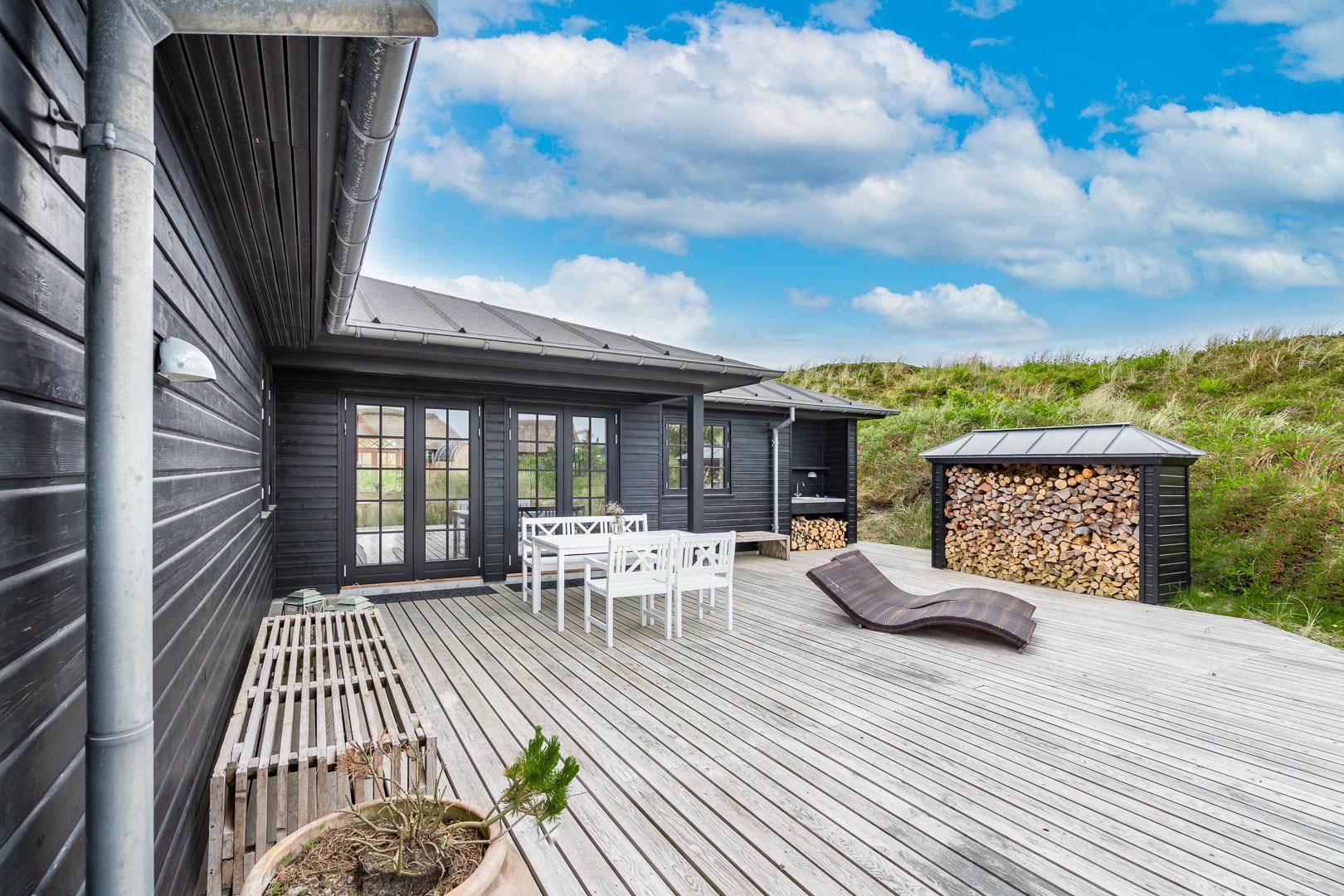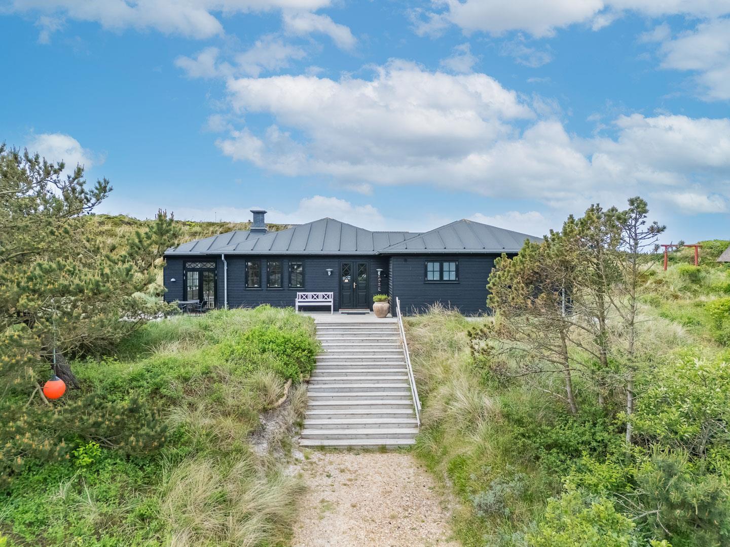 Træd ind i et sommerhus, der overgår dine forventninger og åbner dørene til en uforglemmelig ferieoplevelse. Fra det øjeblik, du ankommer, vil du blive fortryllet af atmosfæren og de fantastiske omgivelser. Oplev dette lækre sommerhus ved Henne Strand med en fortryllende udsigt udover det omkringliggende natur og de skønne klitter. Sommerhuset er lyst og lækkert indrettet, har et dejligt køkken og stue, som ligger i åben forbindelse – her finder du bl.a. også en brændeovn som spreder hygge og varme ud i hele rummet.