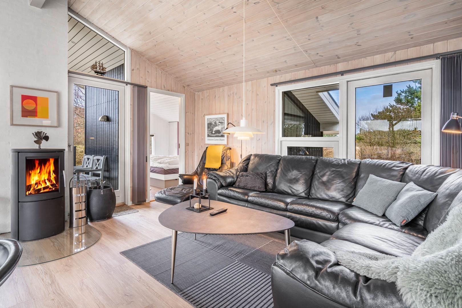 Skønt feriehus beliggende på en ugeneret naturgrund i rolige omgivelser. Stort badeværelse med spa og sauna. Desuden gæstetoilet. Til huset hører såvel åben som overdækket terrasse. Hyggelig og pænt møbleret stue med brændeovn. 3 gode og rummelige soverum med dobbeltsenge.