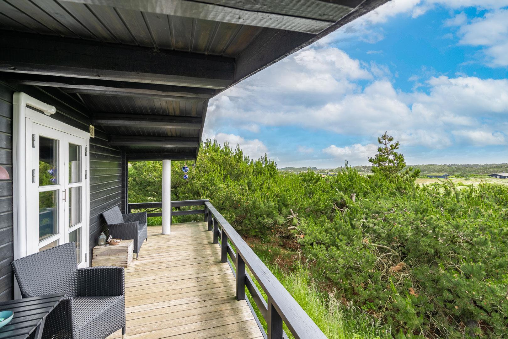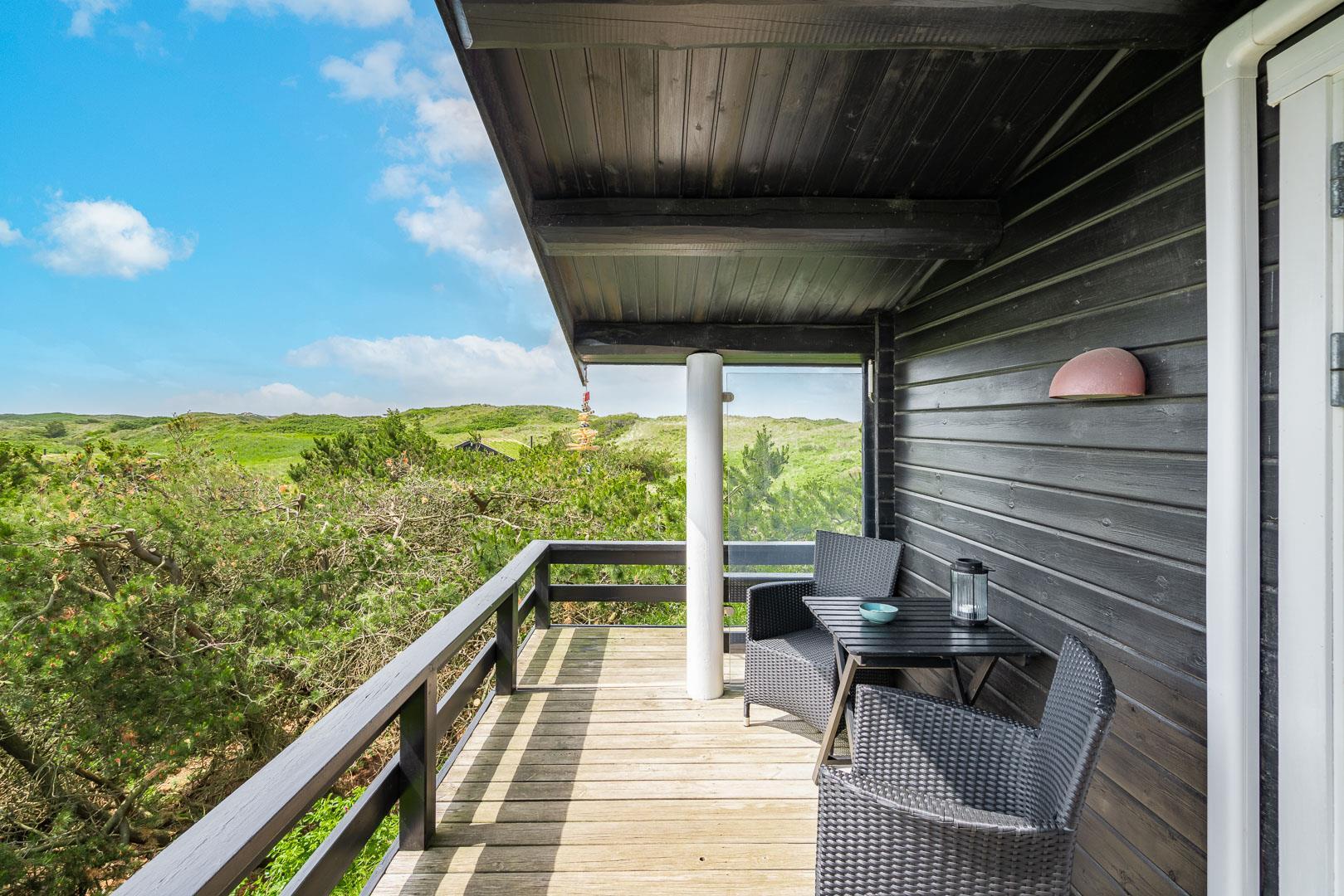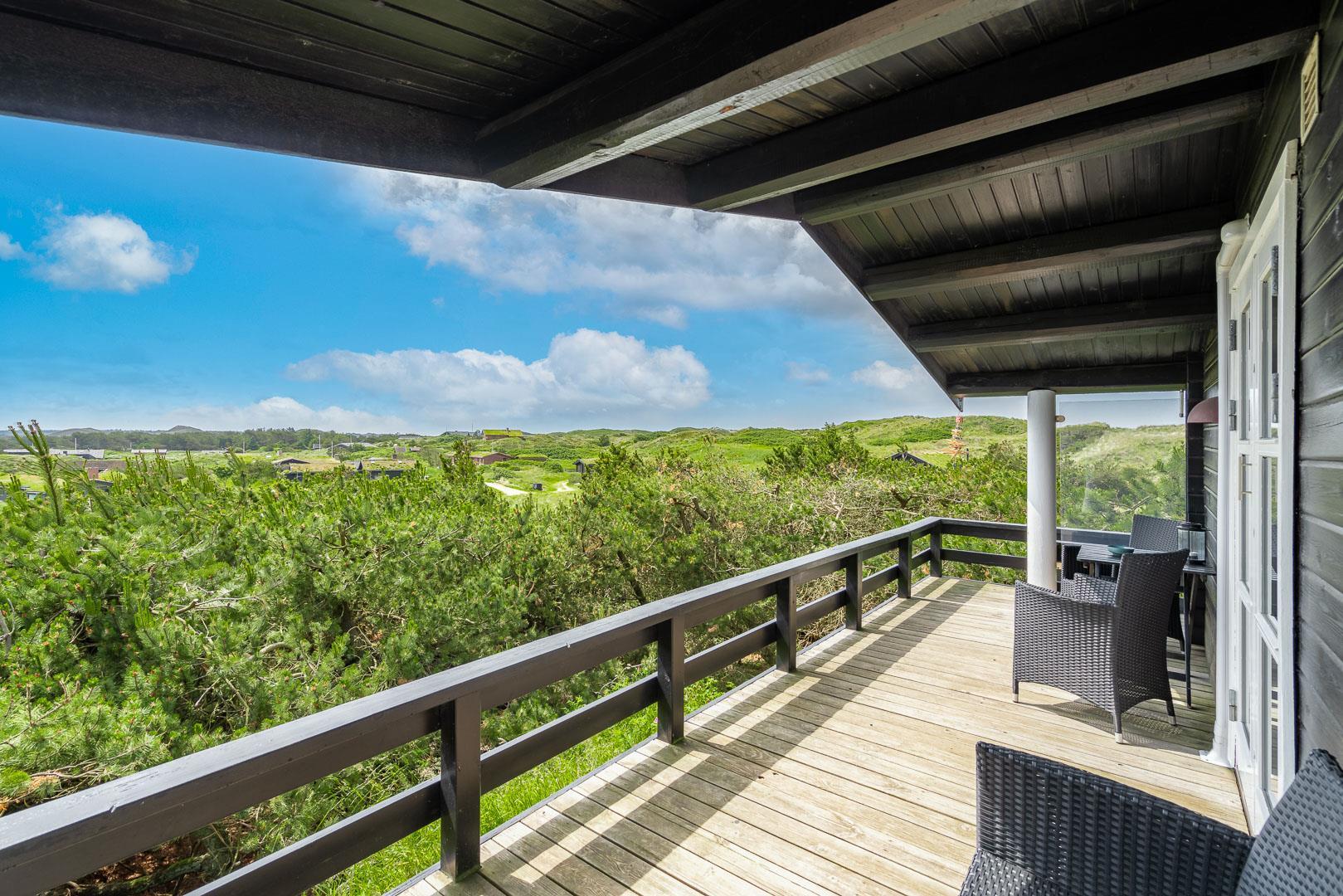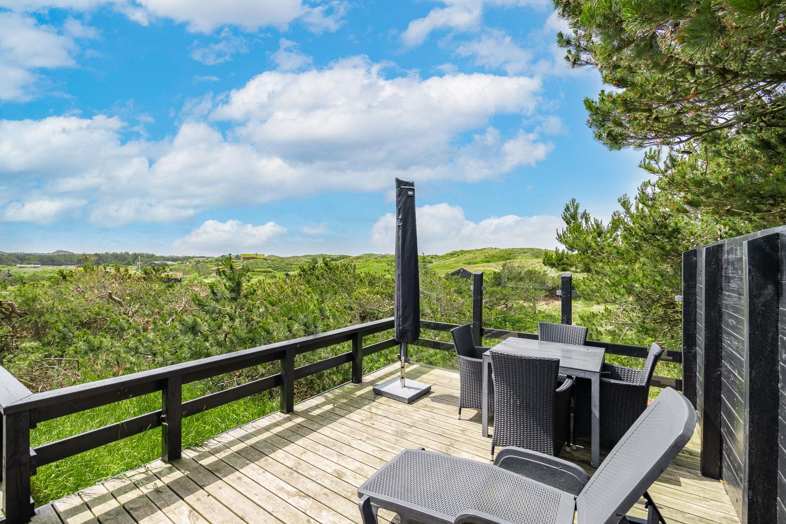 Hyggeligt feriehus i Henne Strand med fantastisk udsigt, træterrasse og moderne faciliteter, perfekt til en familieferie.