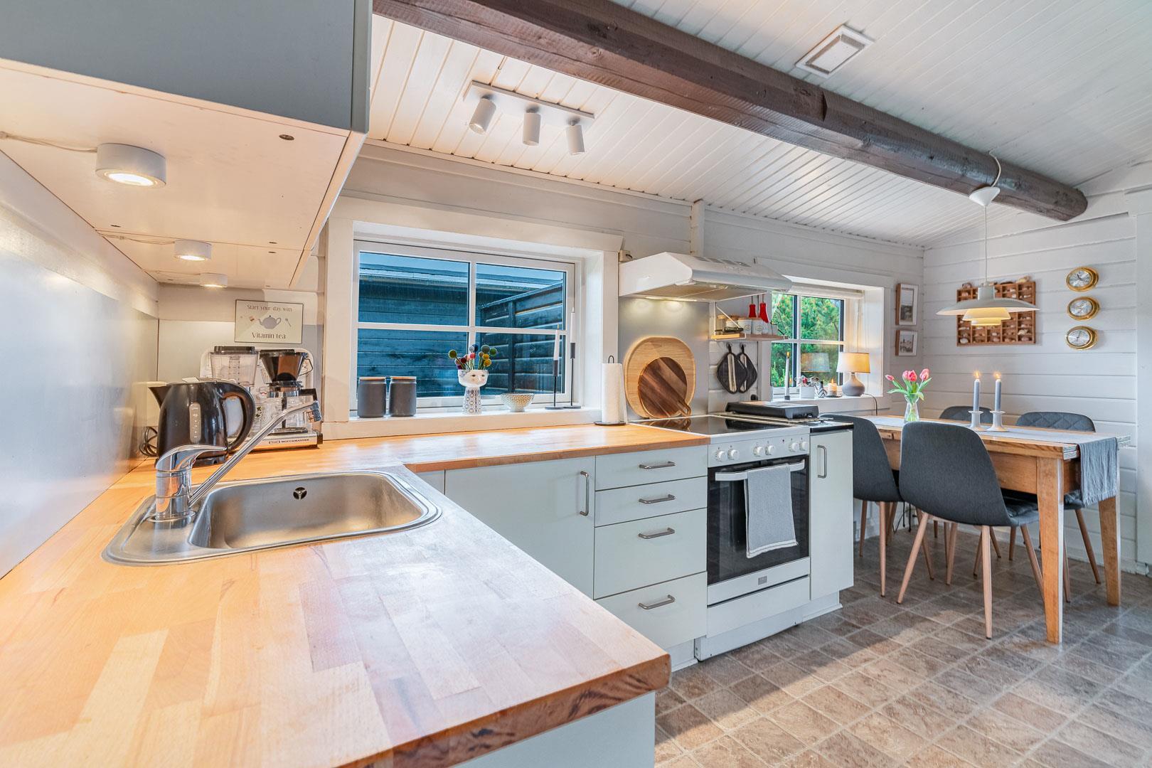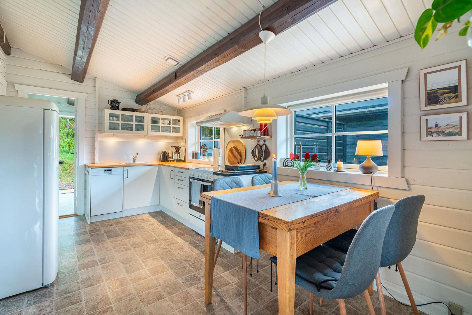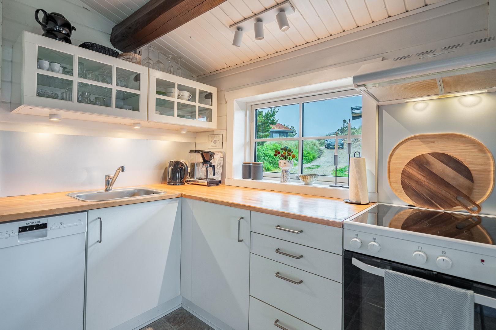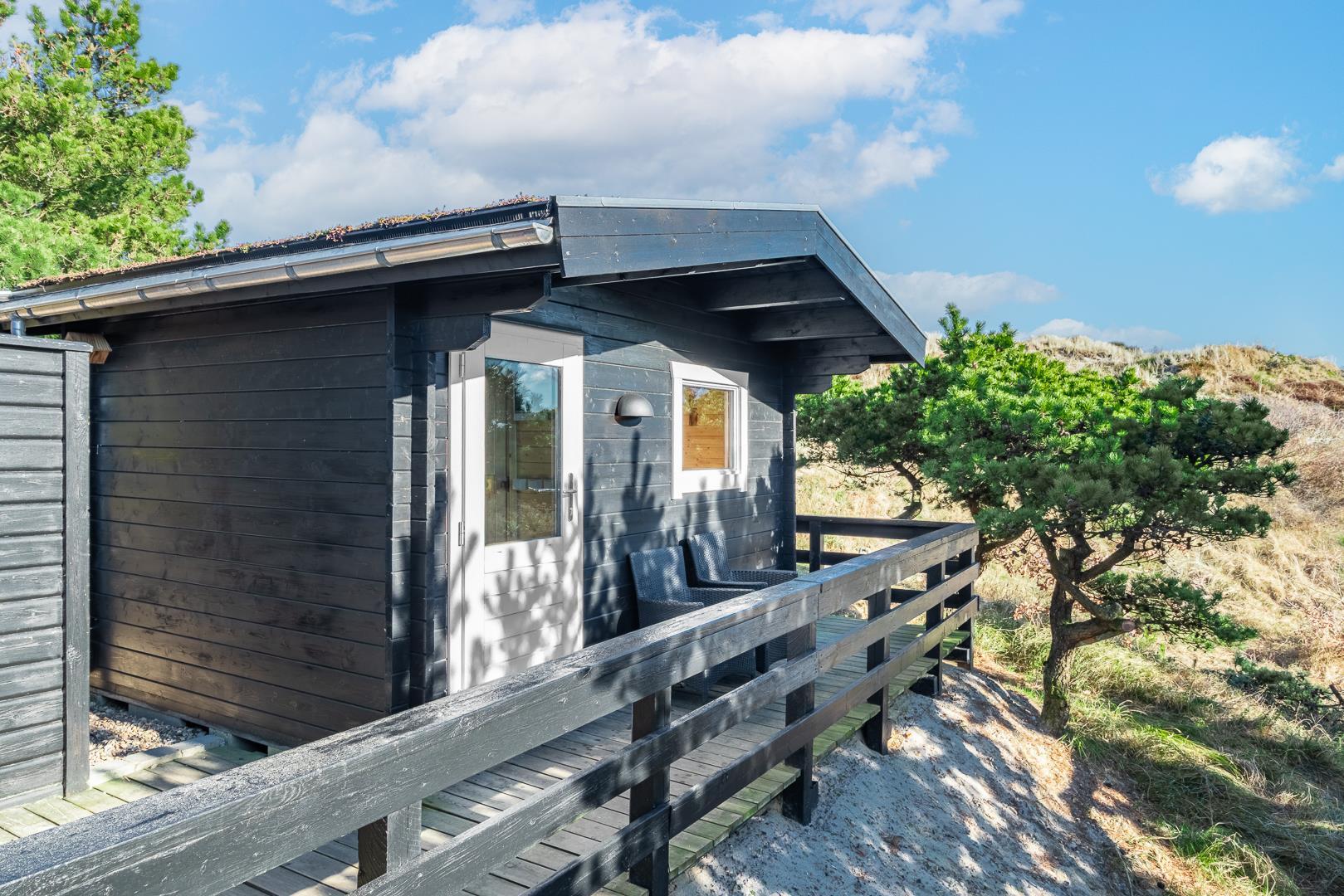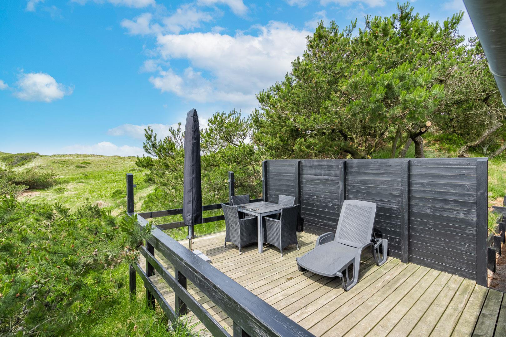 Hyggeligt feriehus i Henne Strand med fantastisk udsigt, træterrasse og moderne faciliteter, perfekt til en familieferie.