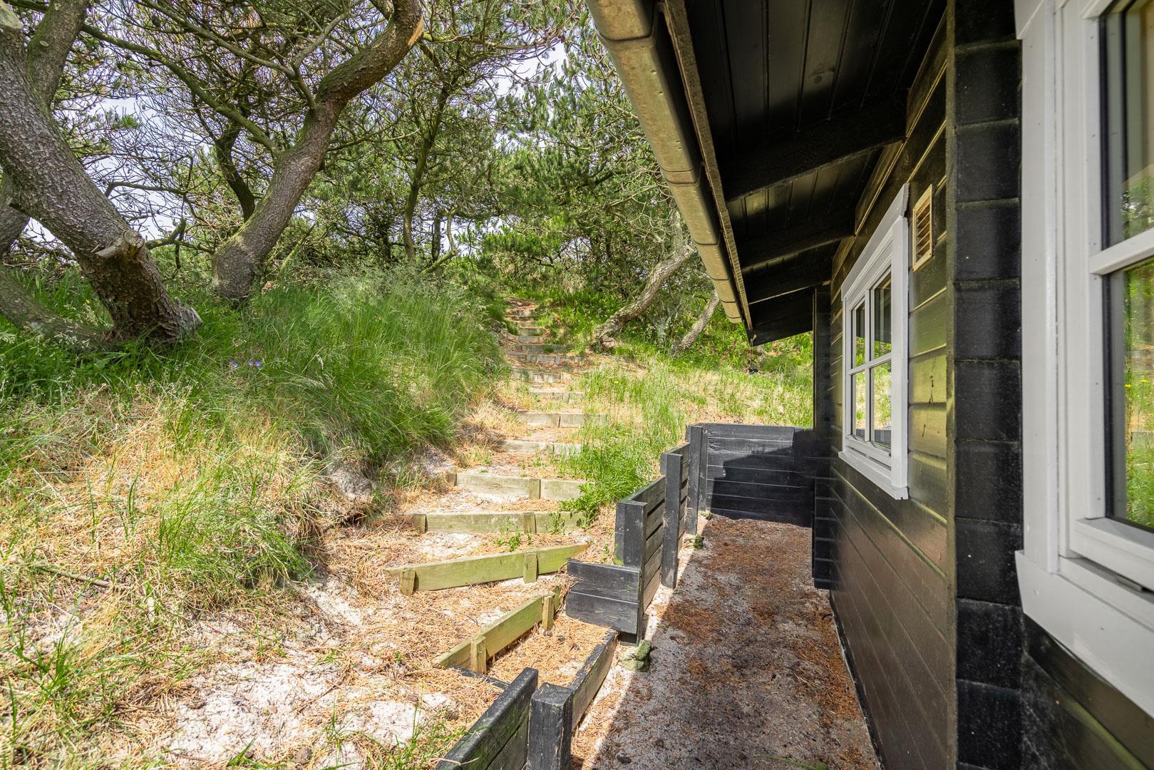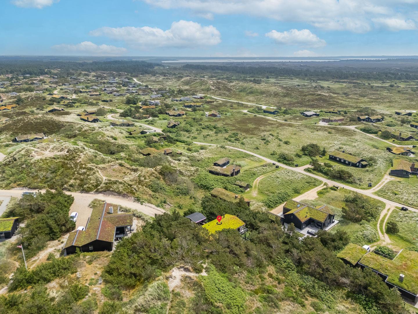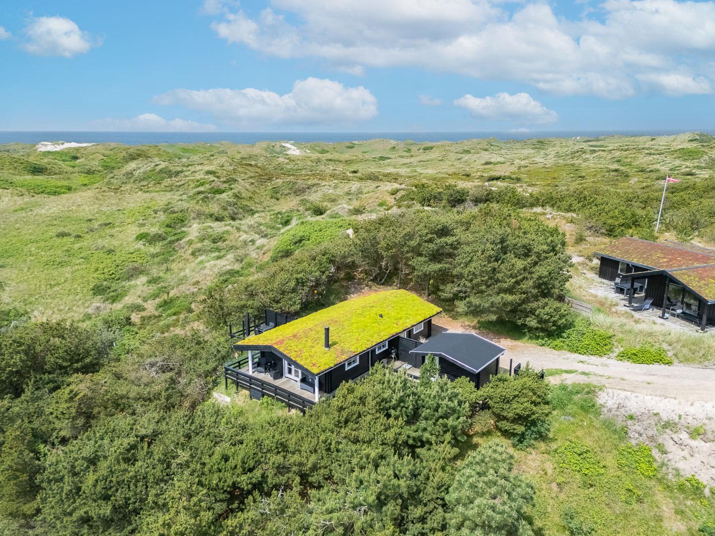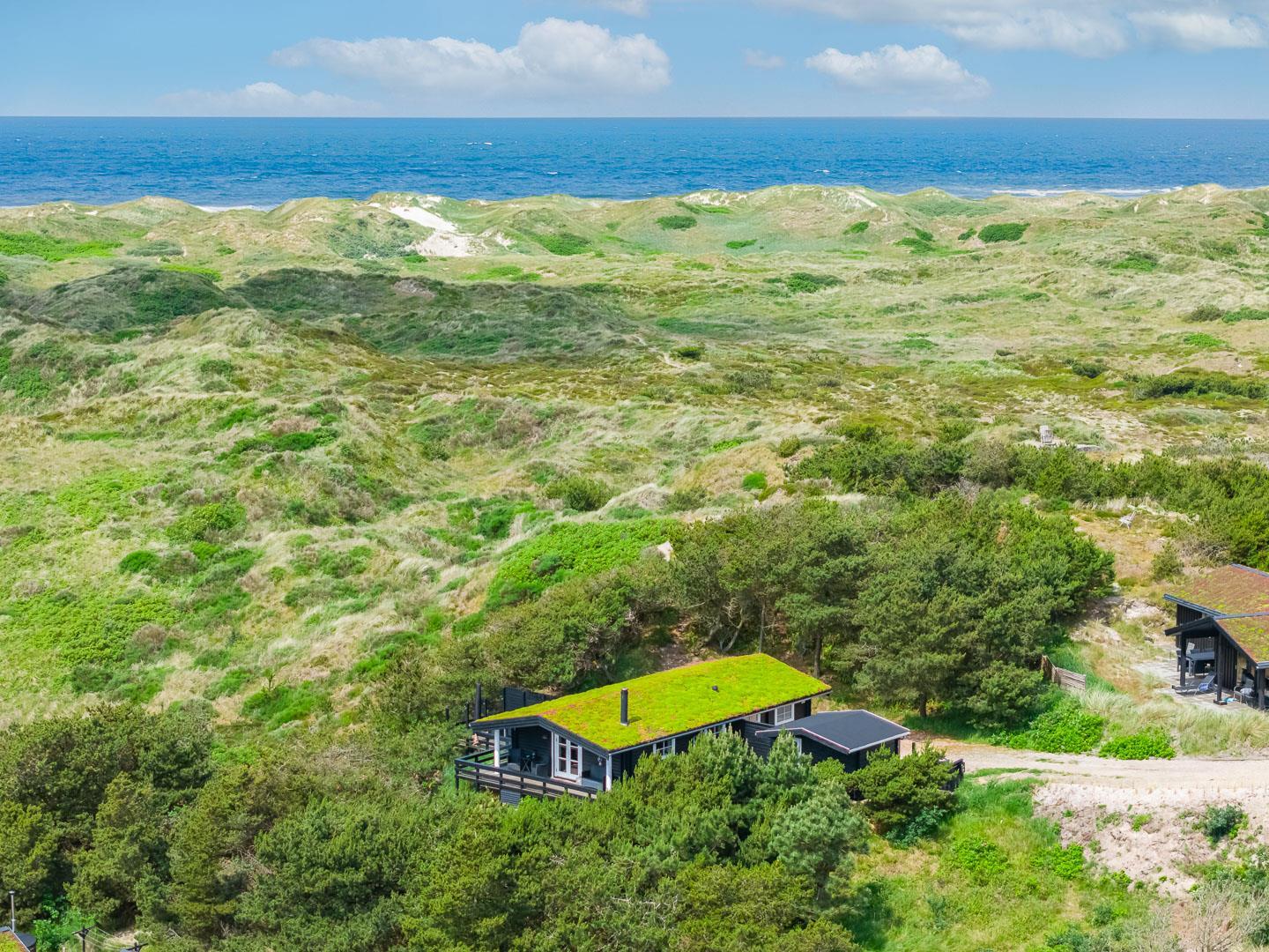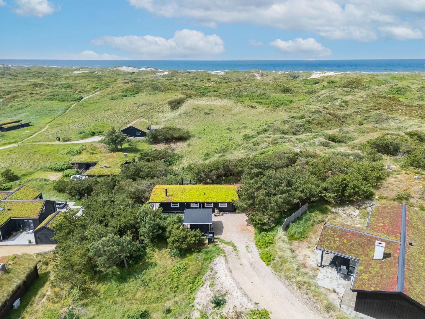 På klitgrund med fantastisk udsigt over området ligger dette hyggelige, feriehus for enden af en blind vej. Huset fremstår overalt lyst og venligt. Fra de skønne ugenerte, træterrasser er der gode muligheder for at nyde den pragtfulde udsigt og solen. Et godt hus til én familie. IKKE RYGER HUS.
