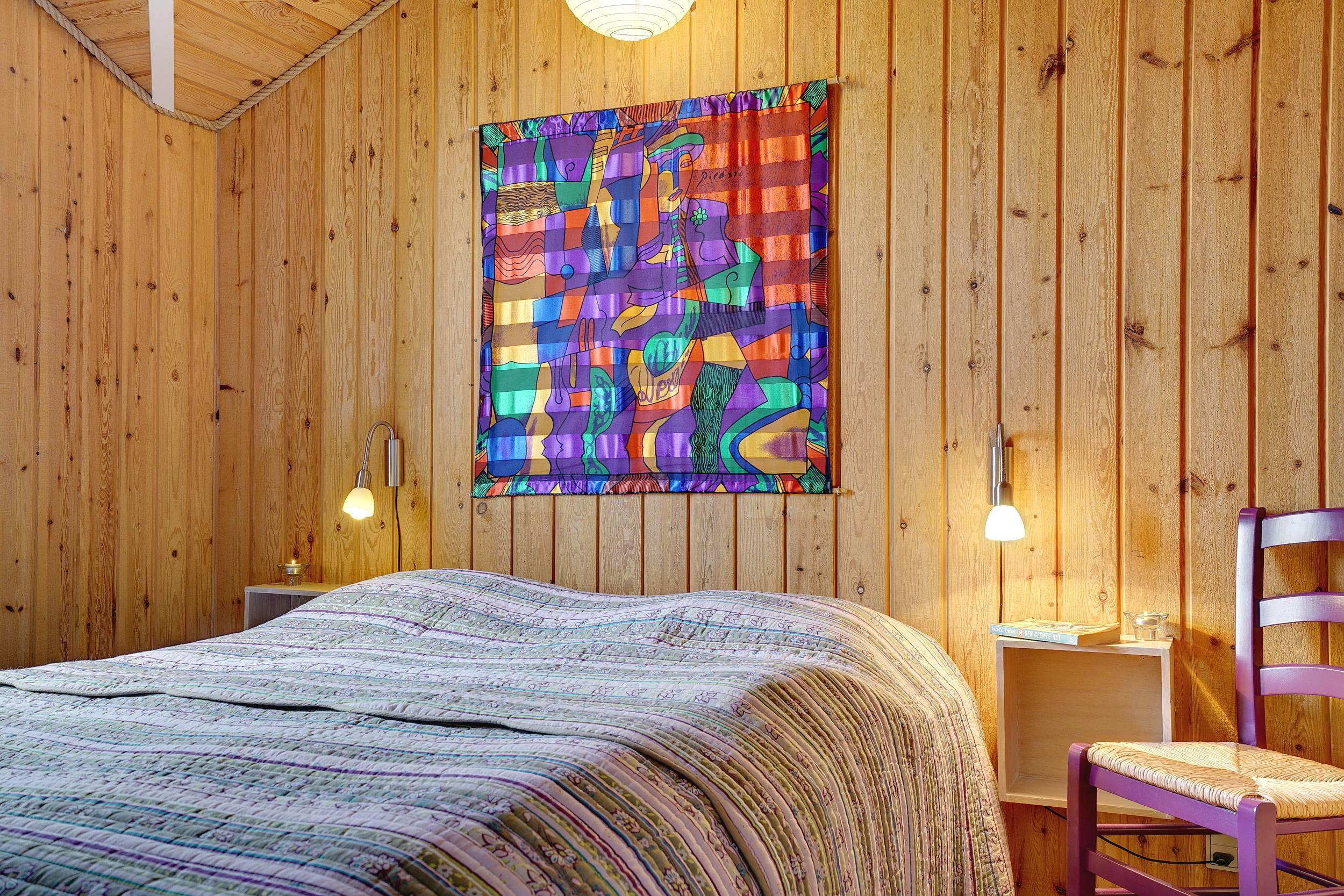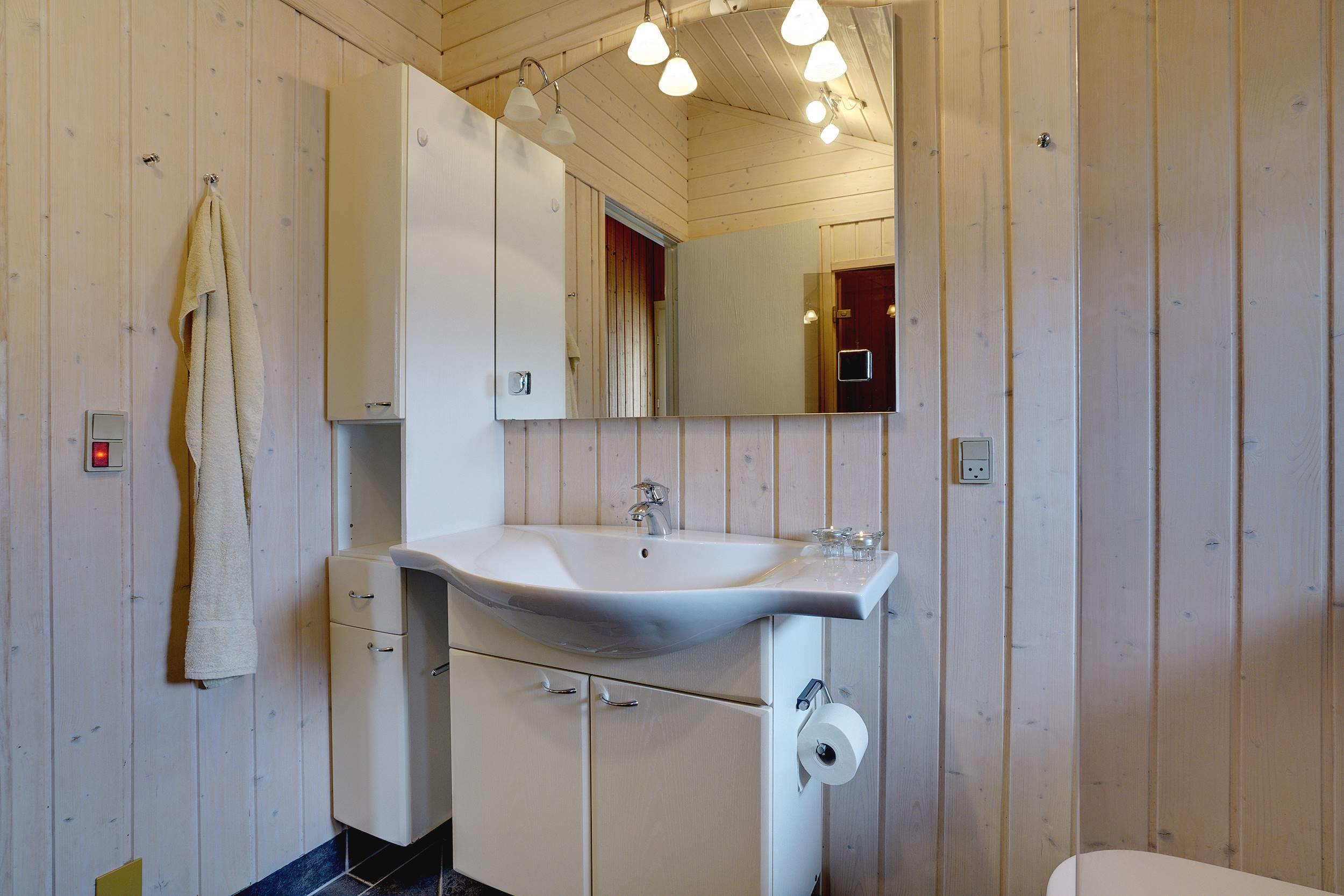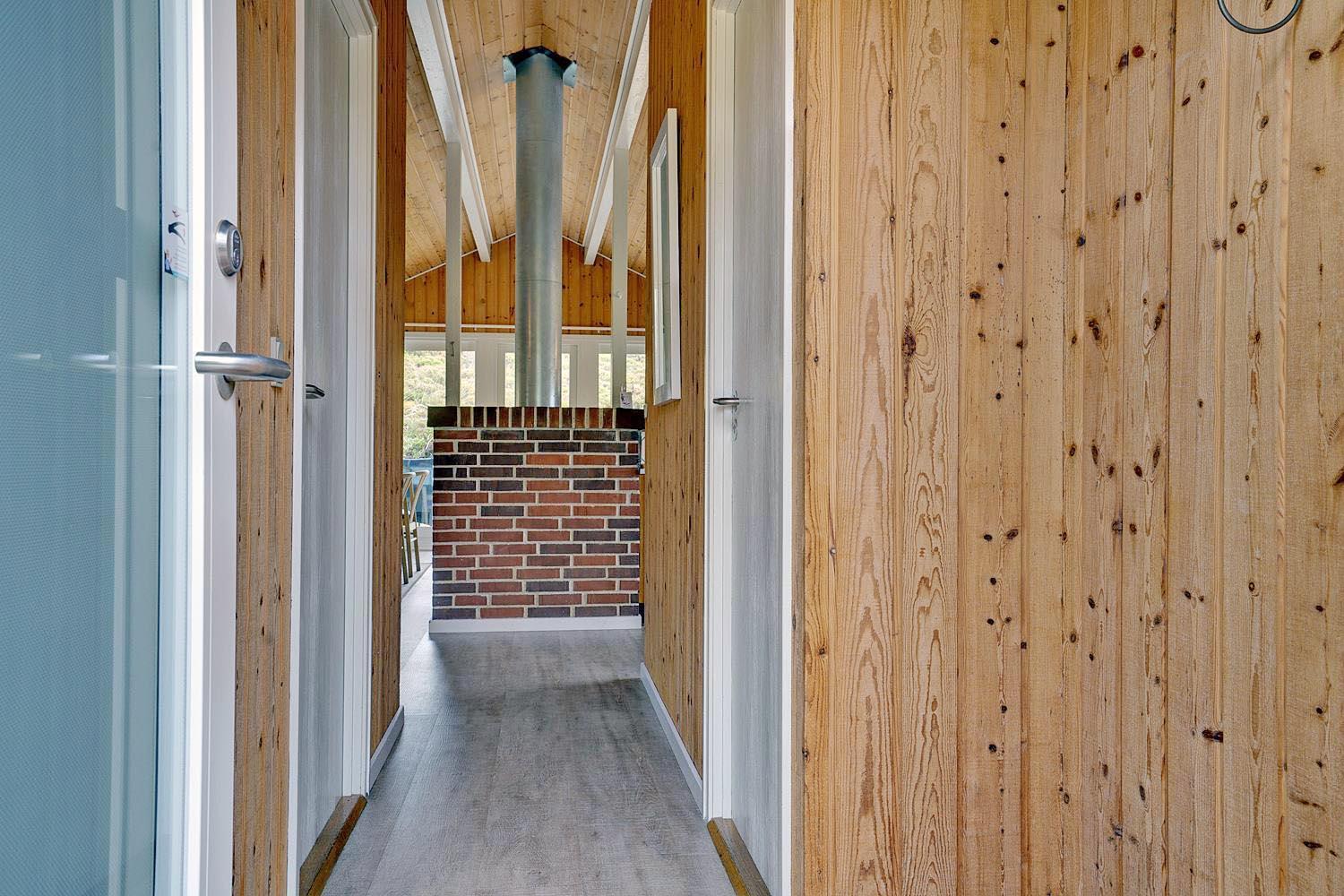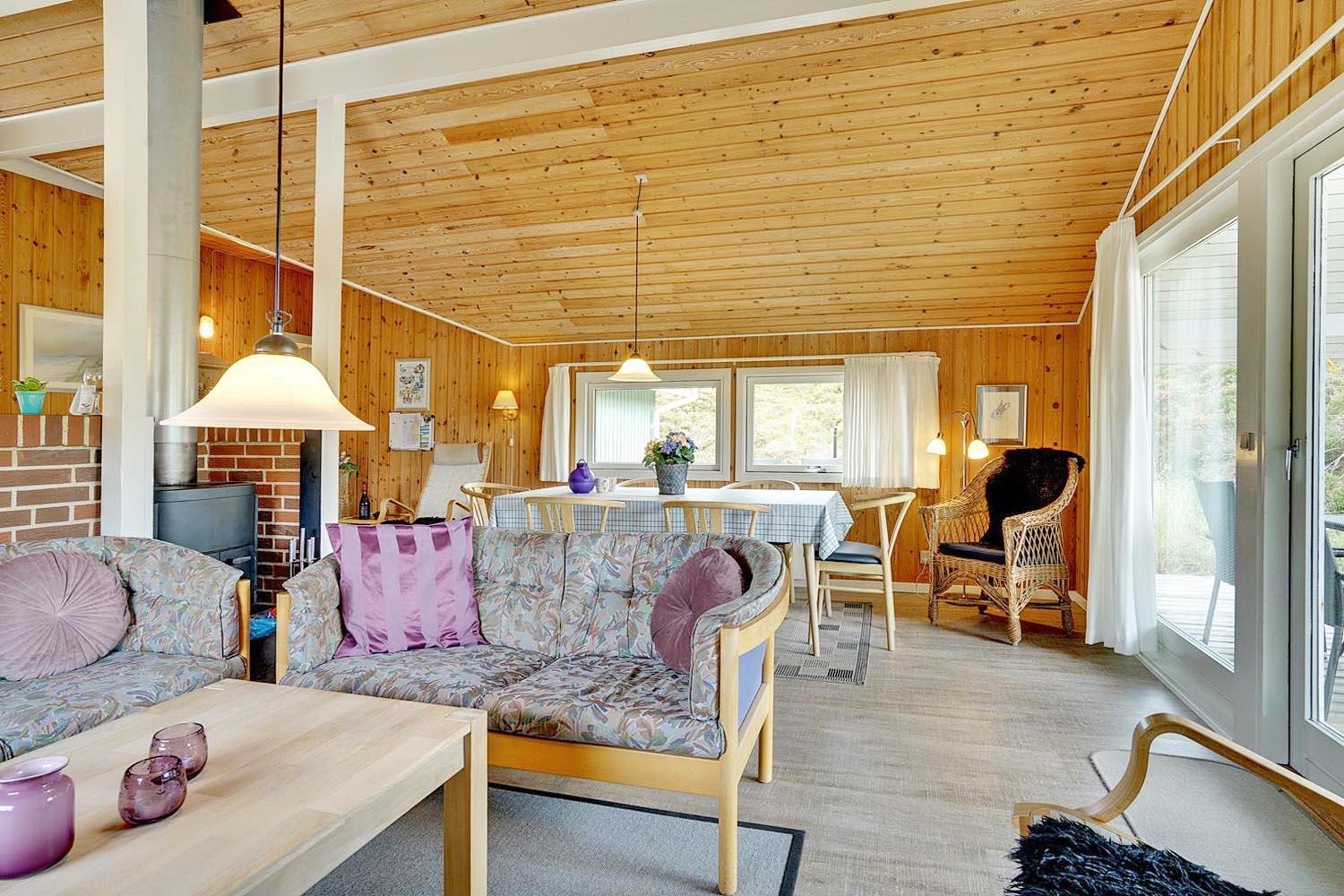 Dejligt og velholdt feriehus beliggende på en helt ugenert naturgrund for enden af blind vej. Flere ugenerede terrasser omkring huset. Nyere badeværelse med gulvvarme og sauna. Veludstyret køkkenet med bl.a. opvaskemaskine og mikrobølgeovn. Hyggelige opholdsstue indrettet med gode møbler og brændeovn. Til børnene er der sandkasse og gynge.