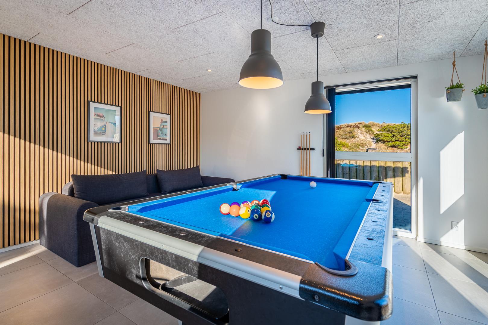 Når vinden rusker udenfor, bliver aktivitetsrummet sommerhusets naturlige samlingspunkt. Med billardbord og spillekonsol er der lagt op til sjove timer, hvor både store og små kan være med. Her opstår smil, samvær og de øjeblikke, man husker længe efter ferien.