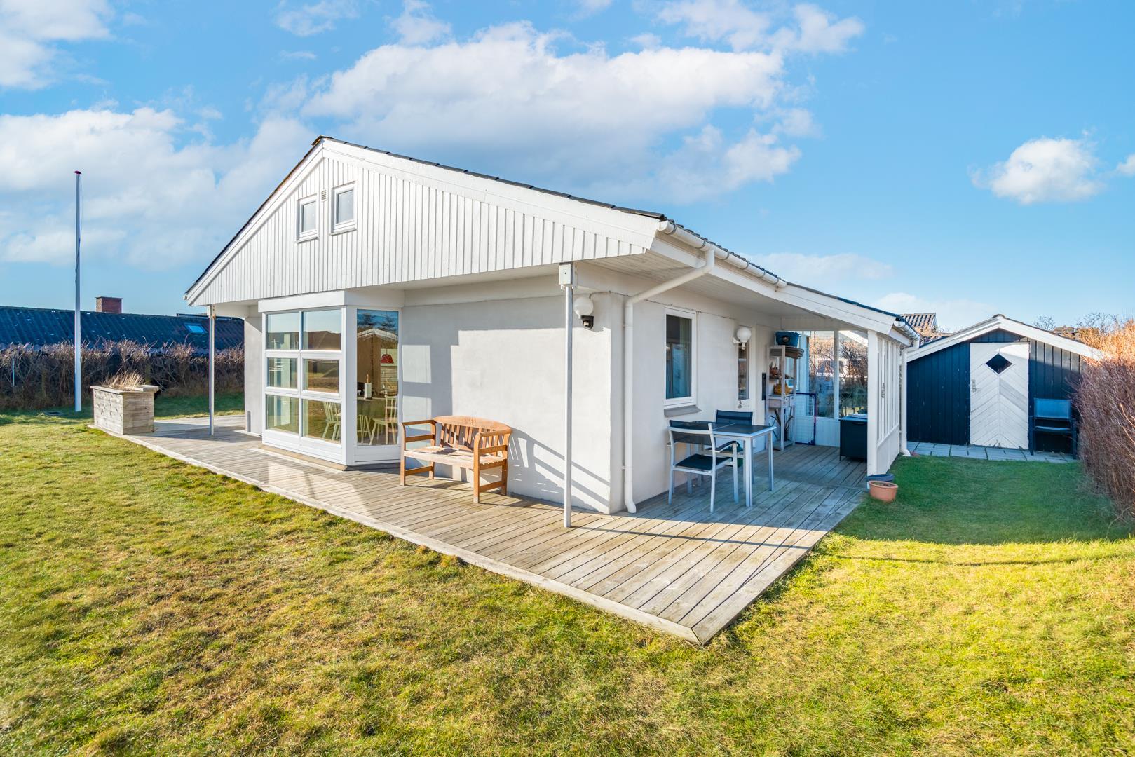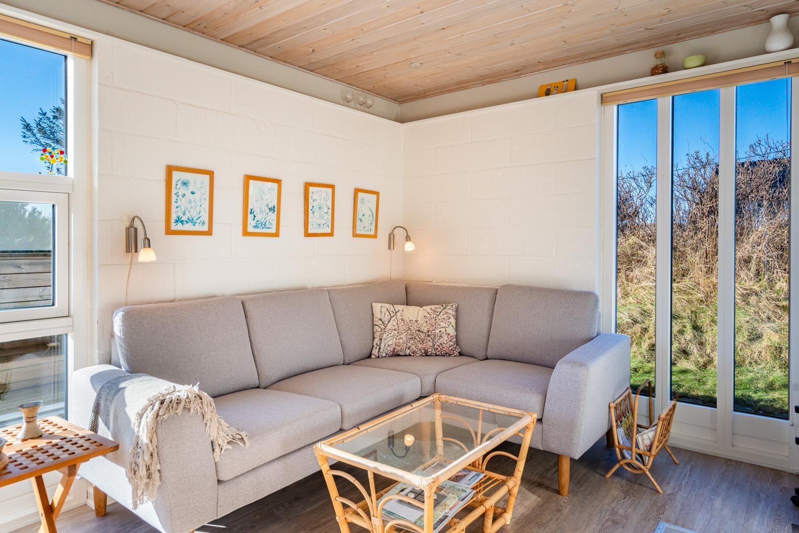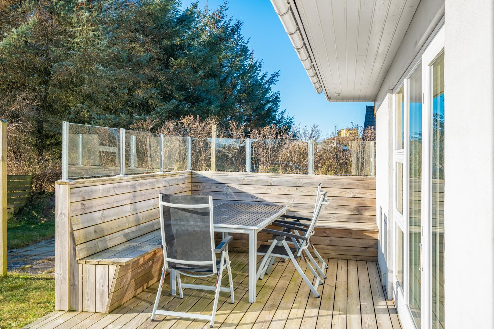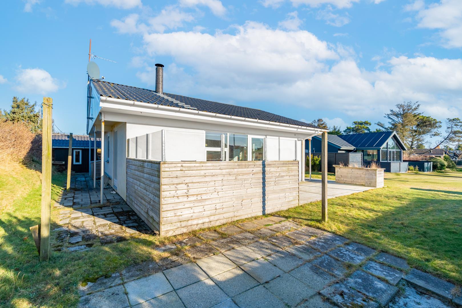 Udendørsområdet giver gode muligheder for at nyde ferien ved Vesterhavet. Start dagen med en kop kaffe på terrassen i den friske havluft, eller lad aftenen falde roligt på plads efter en gåtur langs stranden.