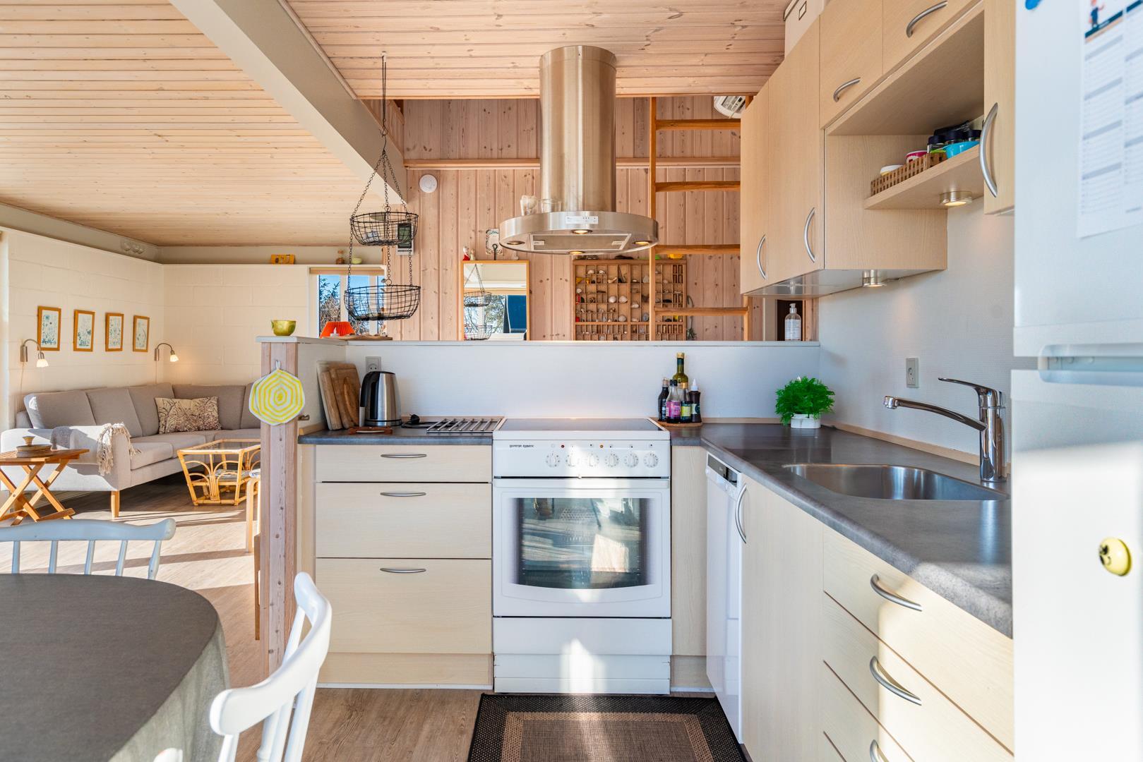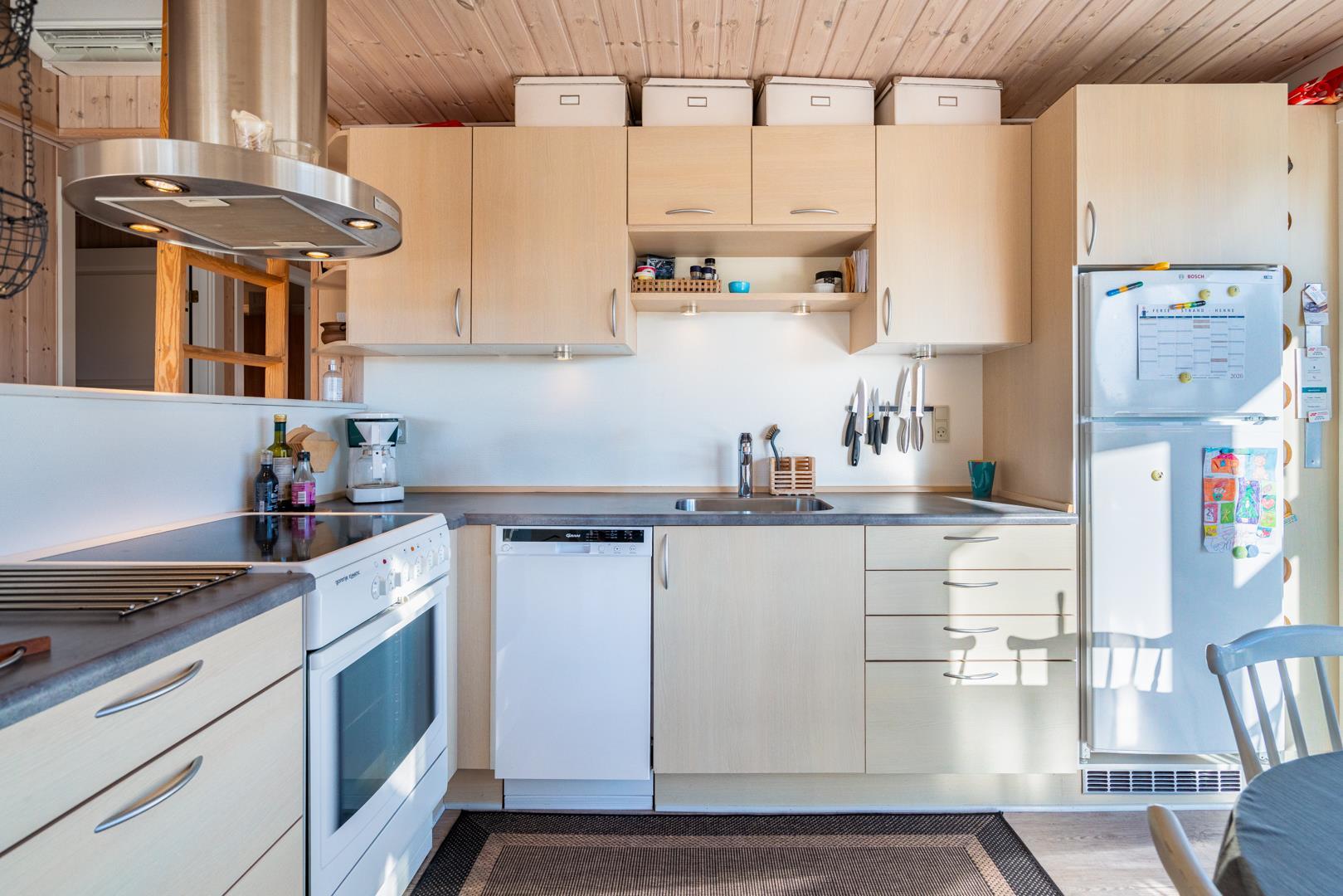 Køkkenet er funktionelt indrettet og udstyret med opvaskemaskine, så hverdagen på ferien bliver lidt lettere. Derudover er der vaskemaskine, hvilket er praktisk ved længere ophold eller ferie med børn.