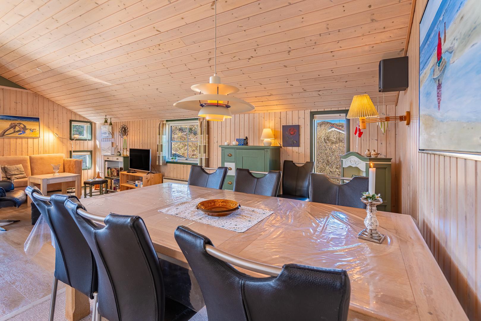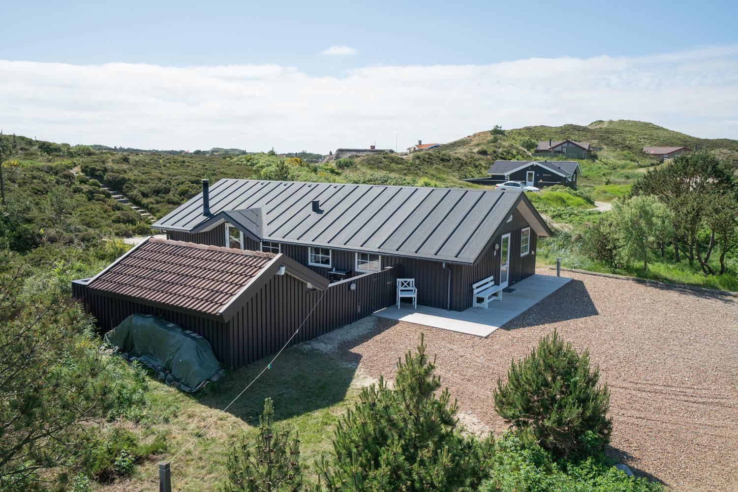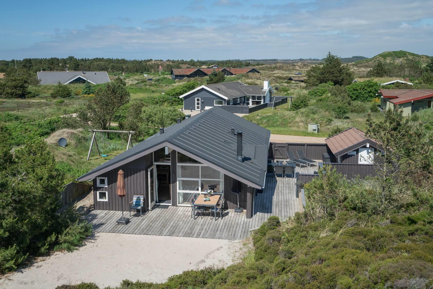 Utrolig hyggeligt, privat og meget velholdt feriehus beliggende på en dejlig klitgrund. Huset har 2 nyere badeværelser med bruser. Entre med håndvask, vaskemaskine, tørretumbler og køleskab og fryser. Åben køkken og stue med 2 sofagrupper og udgang til stor lukket, ugenert og delvis overdækket terrasse. Der er bl.a. stort soverum med god skabsplads.