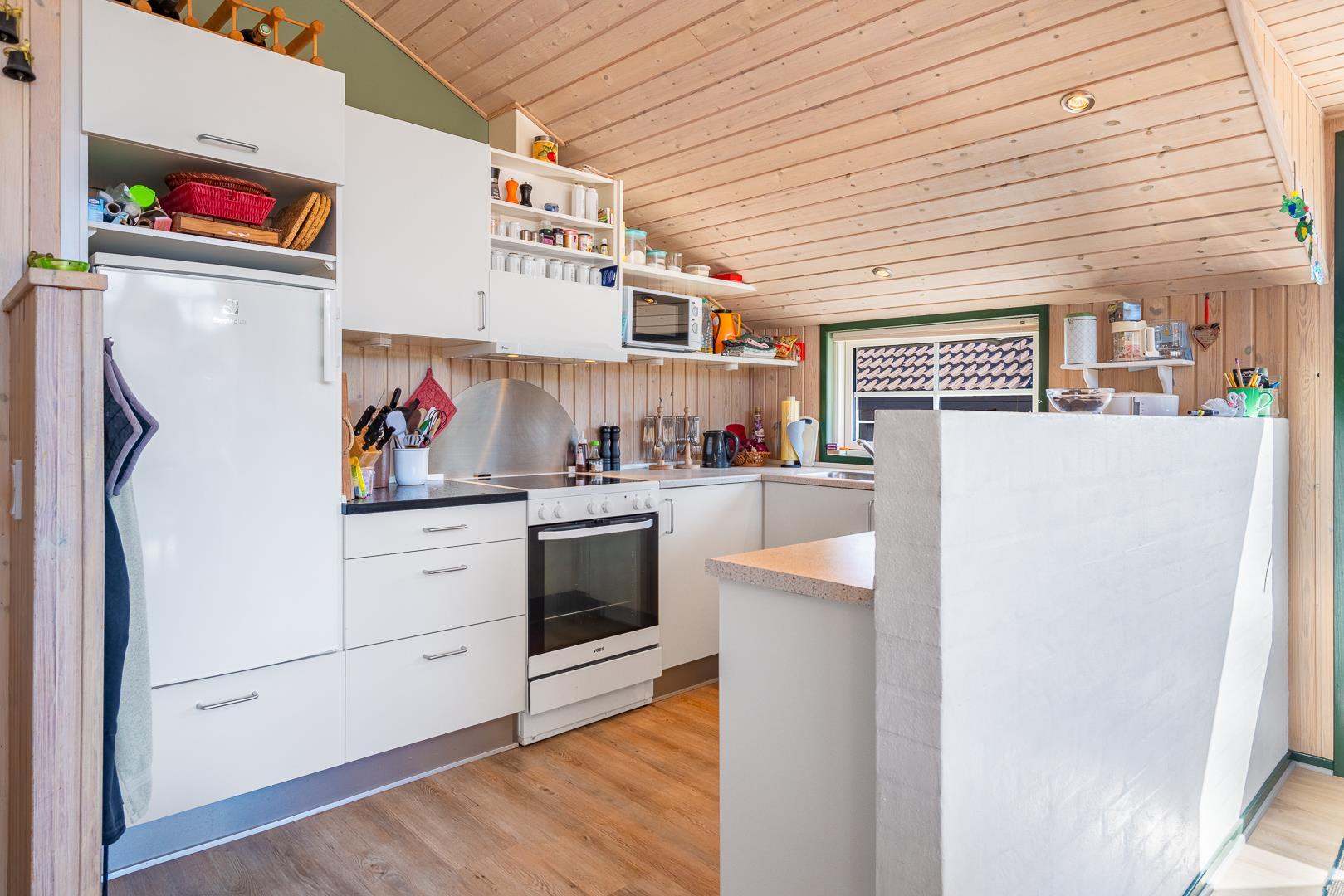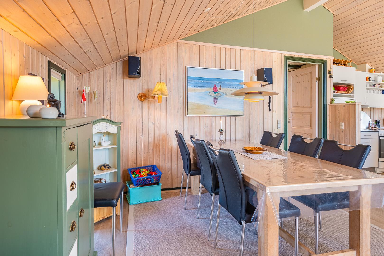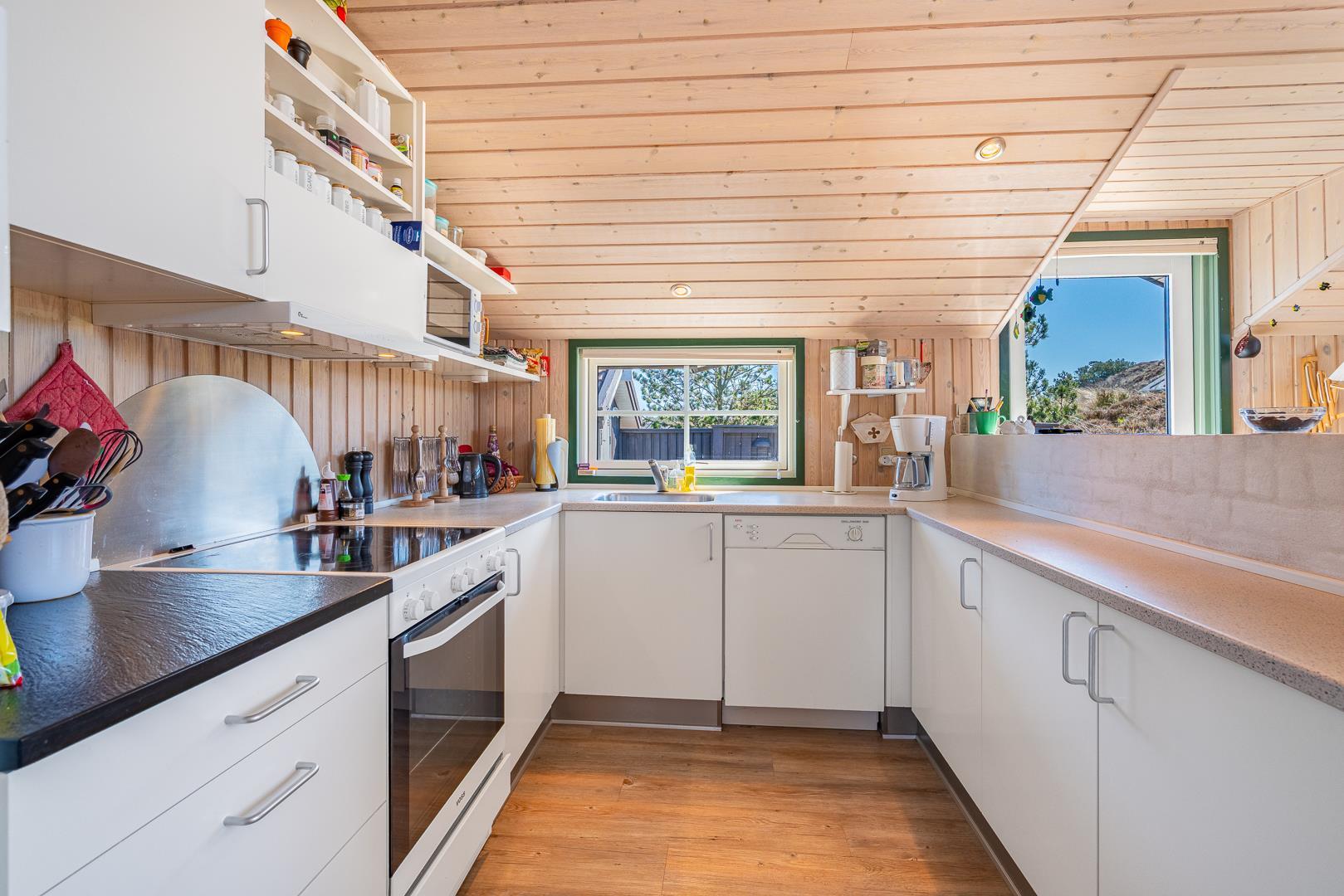 Utrolig hyggeligt, privat og meget velholdt feriehus beliggende på en dejlig klitgrund. Huset har 2 nyere badeværelser med bruser. Entre med håndvask, vaskemaskine, tørretumbler og køleskab og fryser. Åben køkken og stue med 2 sofagrupper og udgang til stor lukket, ugenert og delvis overdækket terrasse. Der er bl.a. stort soverum med god skabsplads.