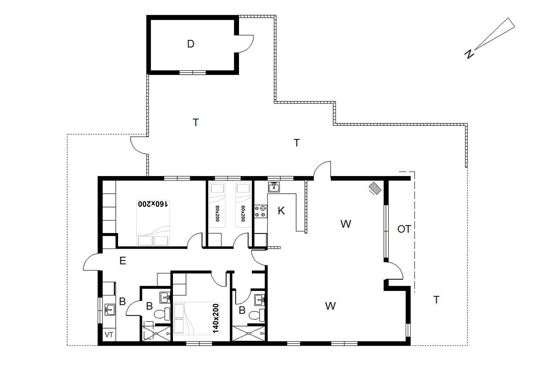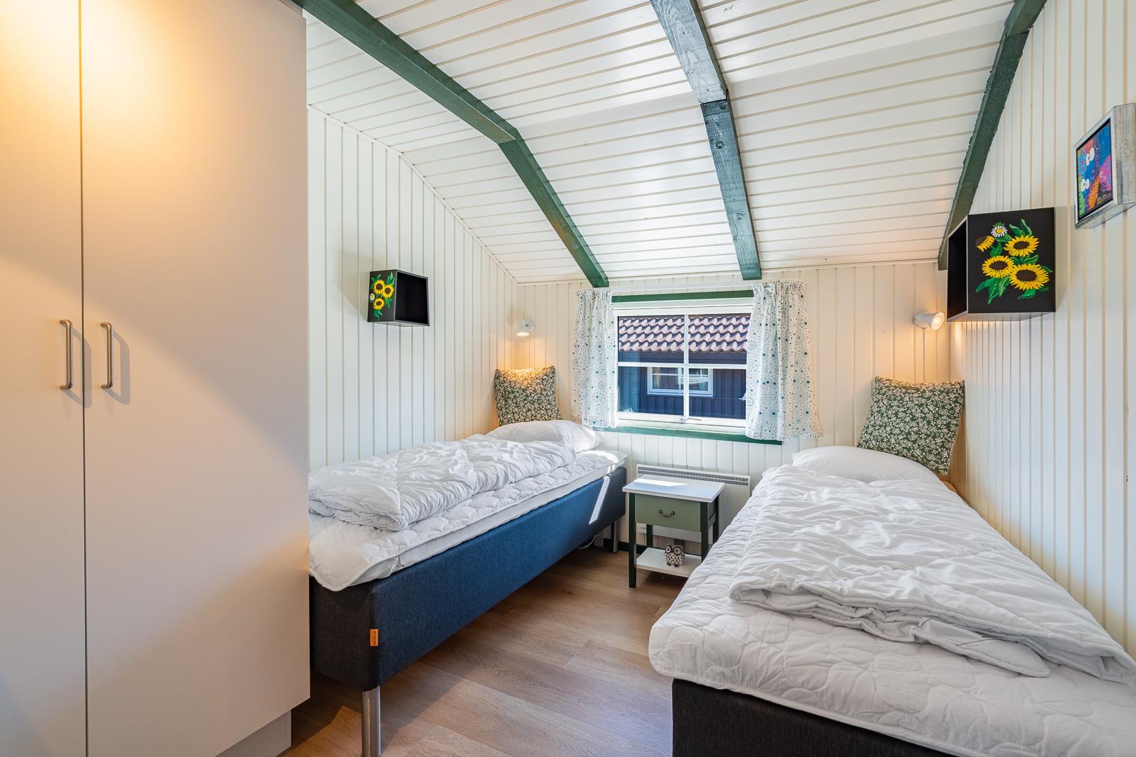Sengestørrelser: 1 dobbeltseng 160 x 200 cm + 1 dobbeltseng 140 x 200 cm + 2 enkeltsenge 80 x 200 cm.