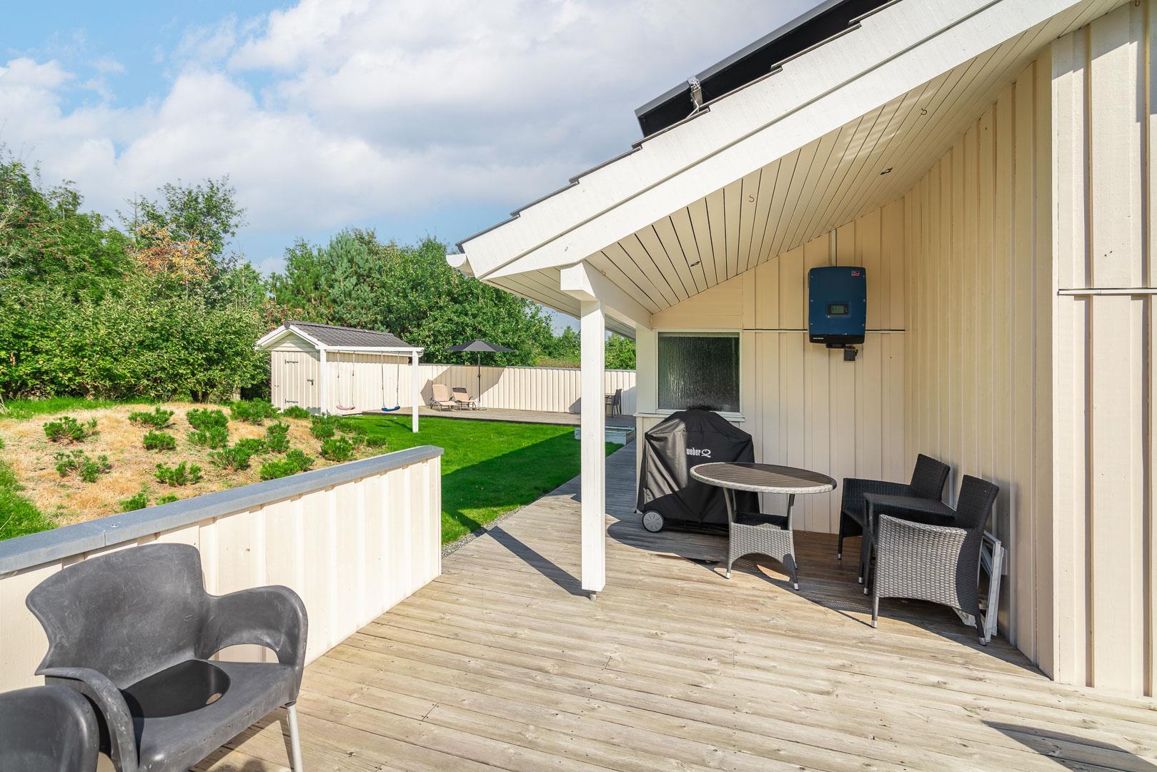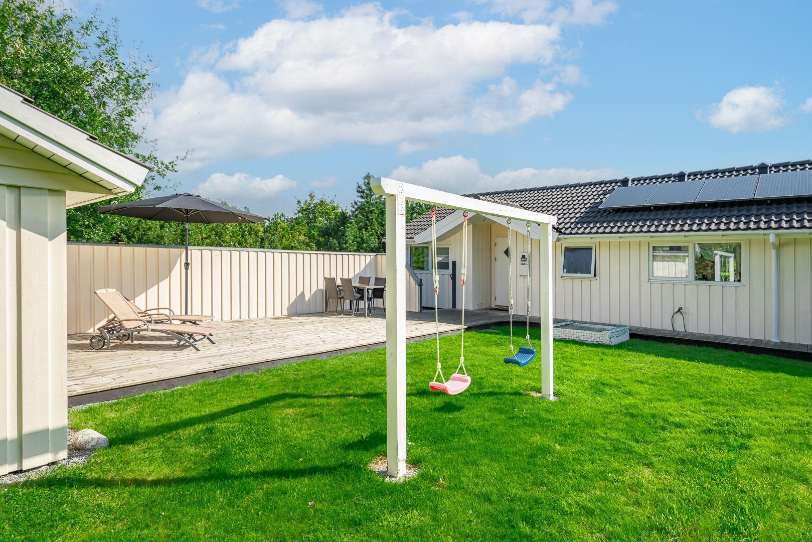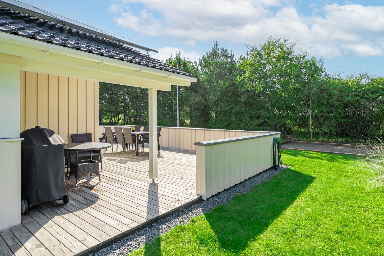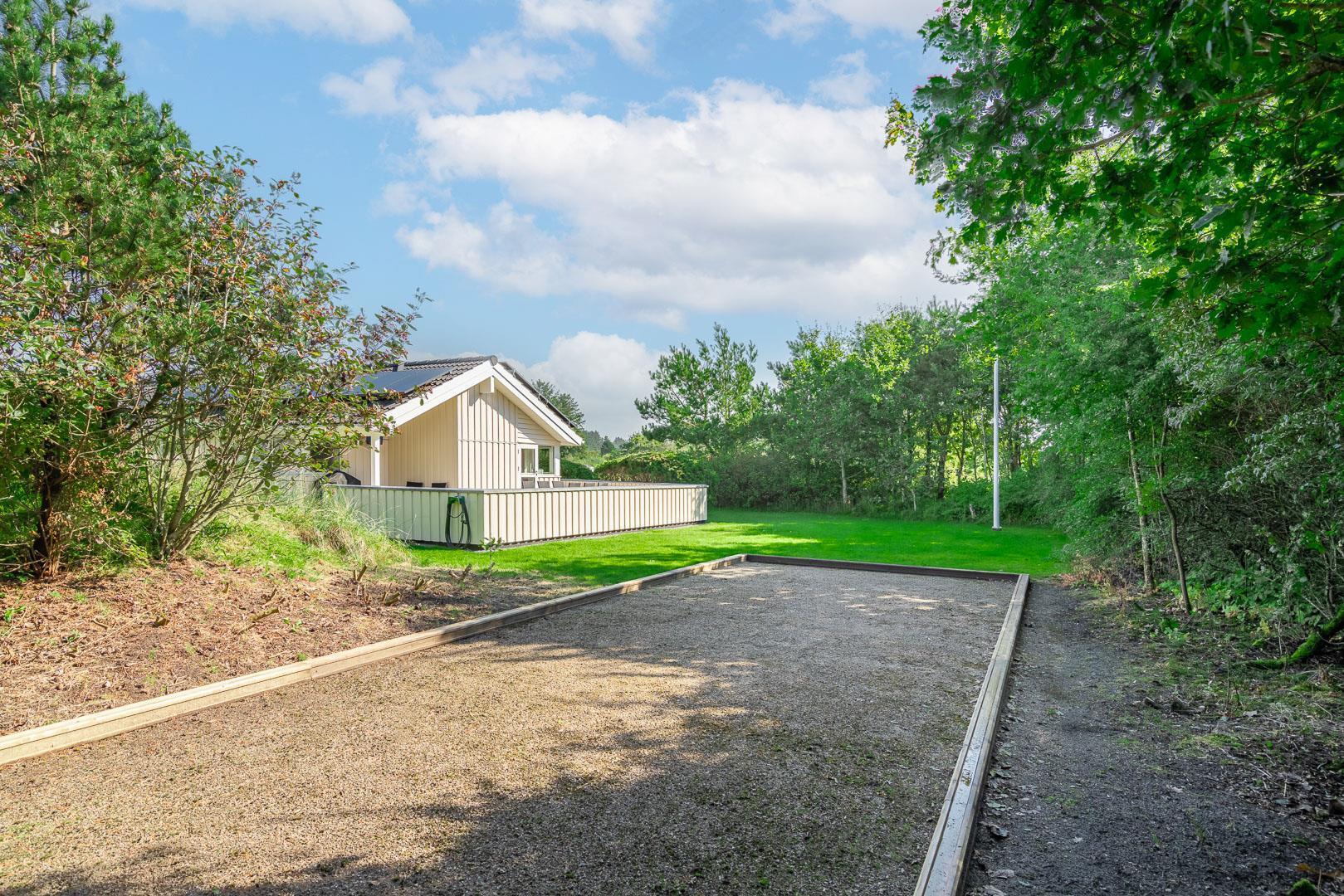 Det er beliggende på en storartet velholdt grund med en skøn have, hvor børnene kan tumle rundt. Der går terrasser hele vejen rundt om huset, hvor I altid kan finde læ og nyde det gode vejr i fred og ro. Desuden er der anlagt en flot petanque-bane.
