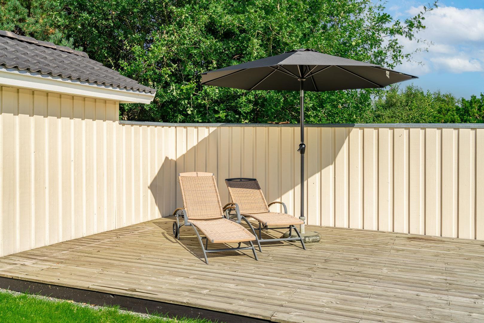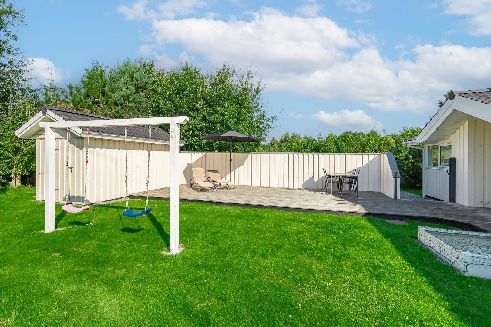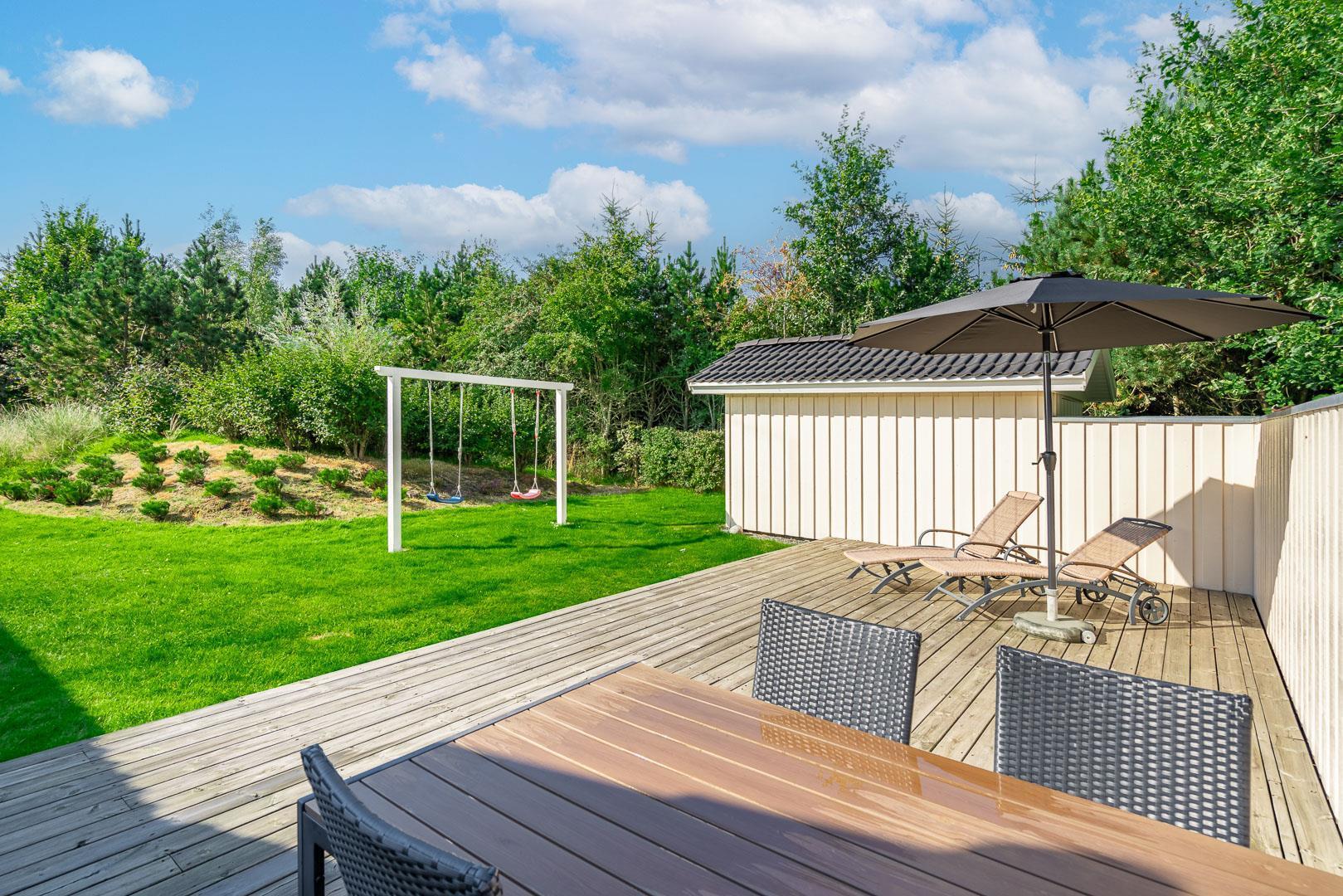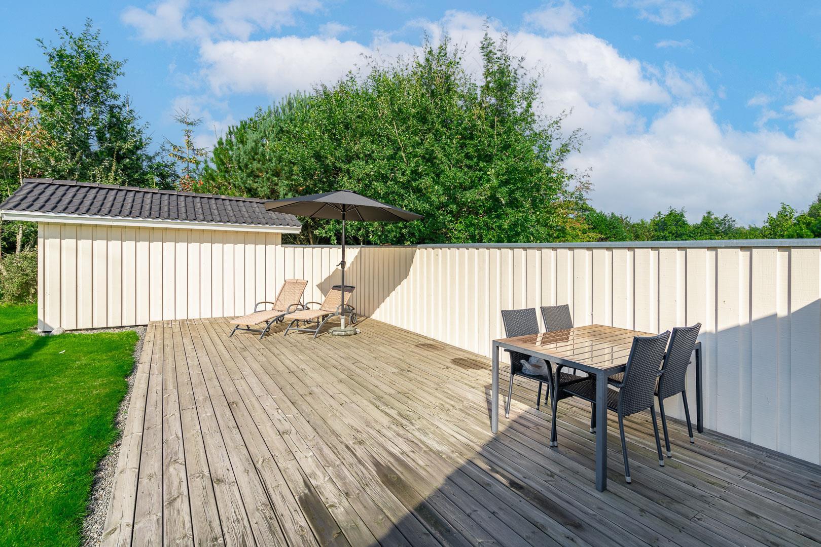 Det er beliggende på en storartet velholdt grund med en skøn have, hvor børnene kan tumle rundt. Der går terrasser hele vejen rundt om huset, hvor I altid kan finde læ og nyde det gode vejr i fred og ro. Desuden er der anlagt en flot petanque-bane.