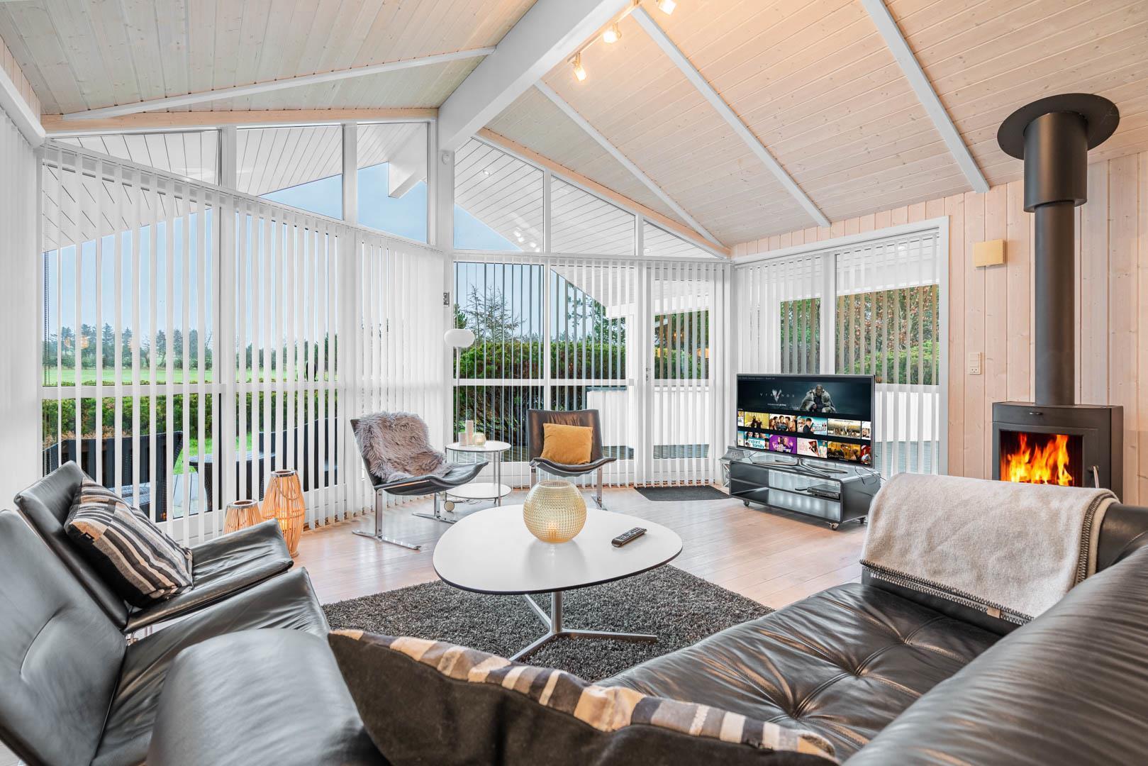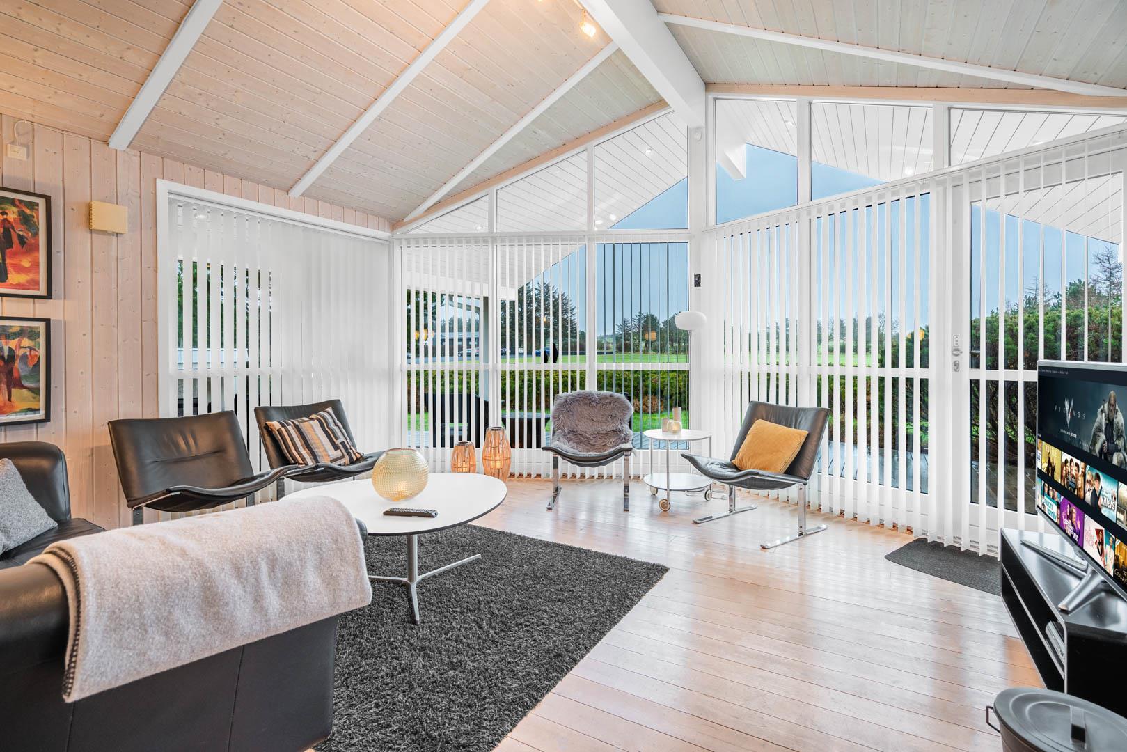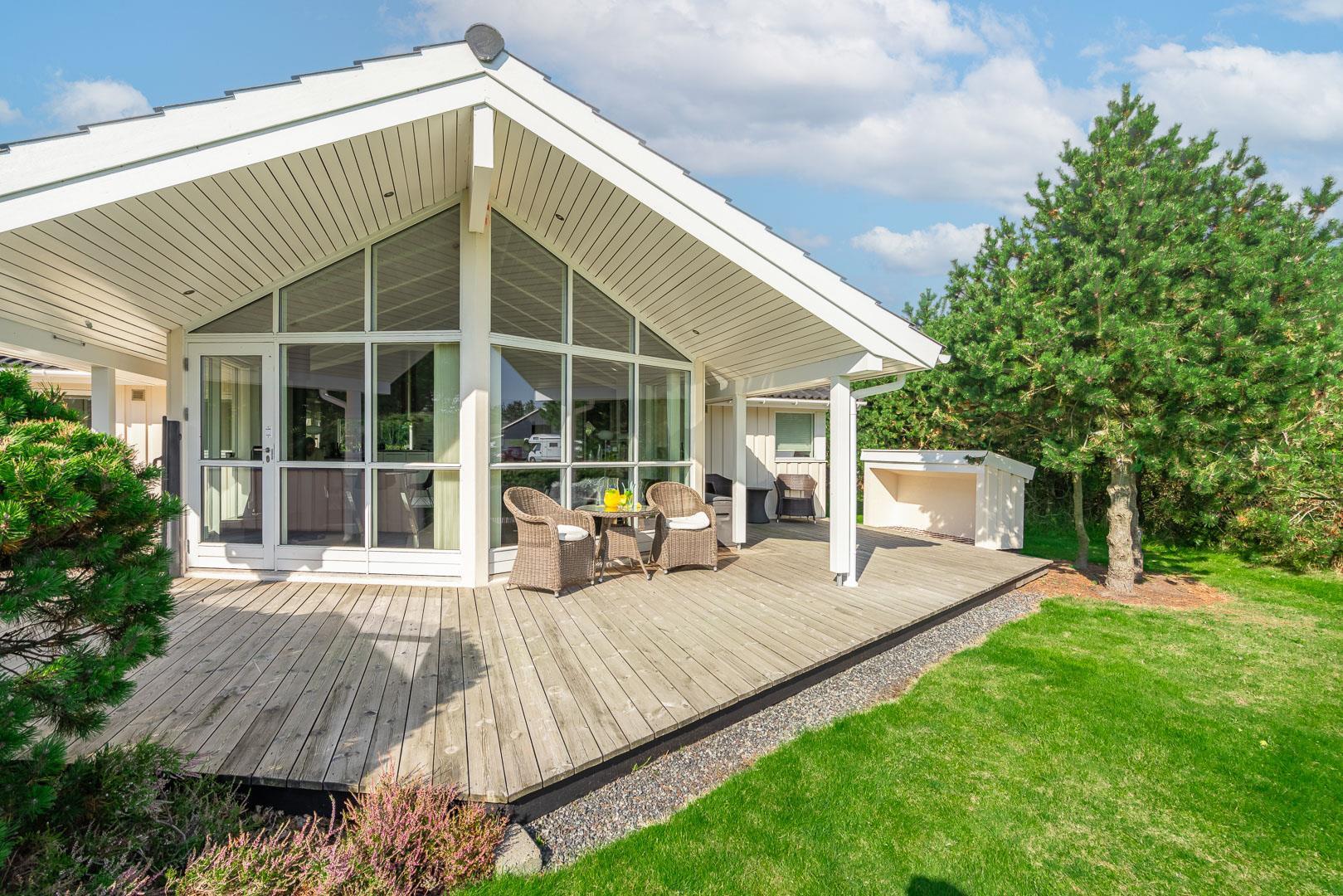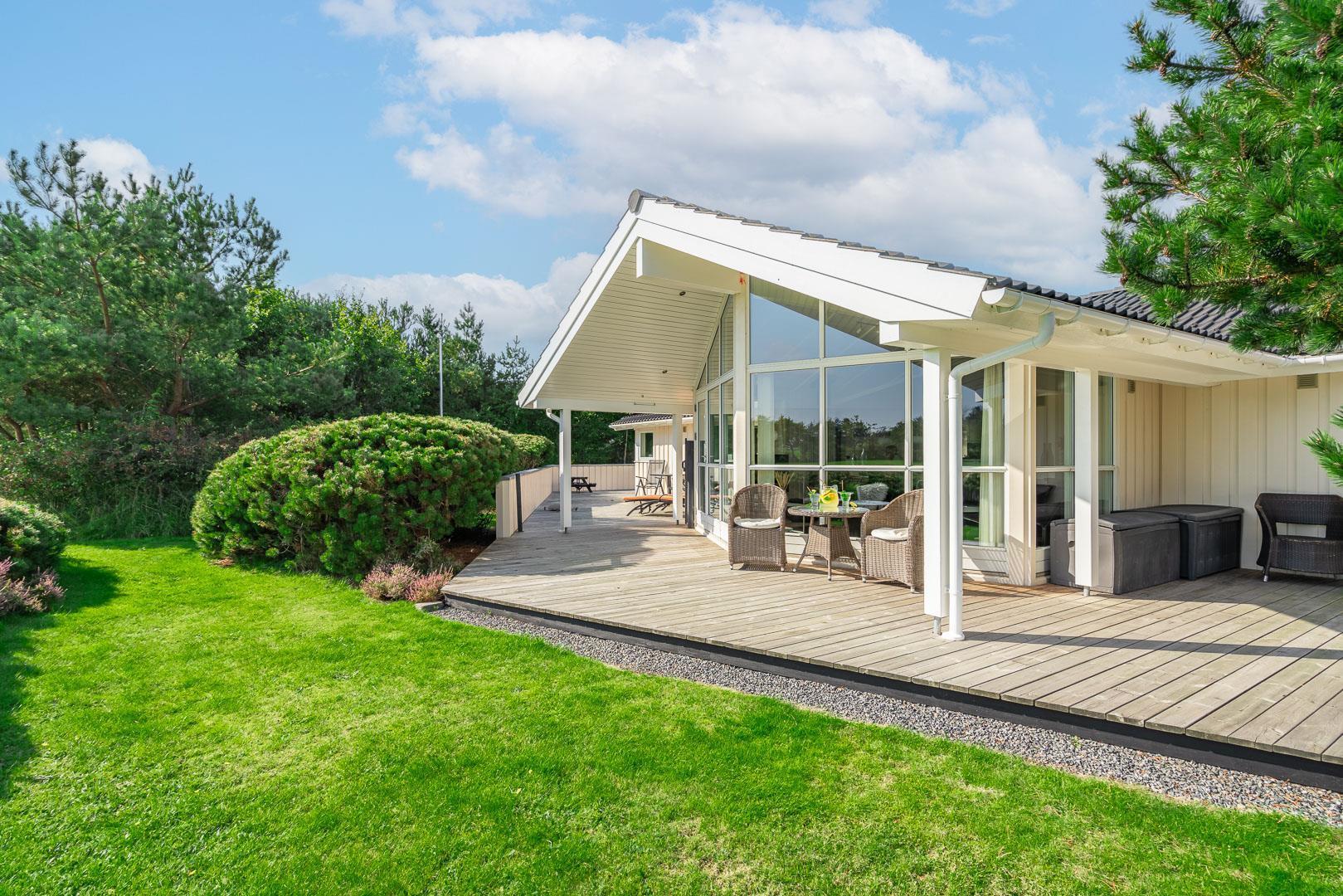Sommerhus med panorama udsigt over Henne Golfklub hvortil der er gratis adgang.