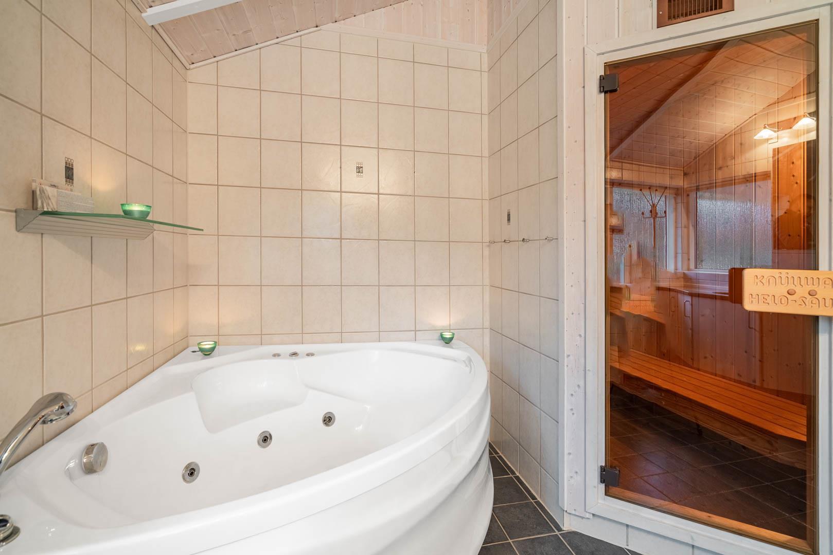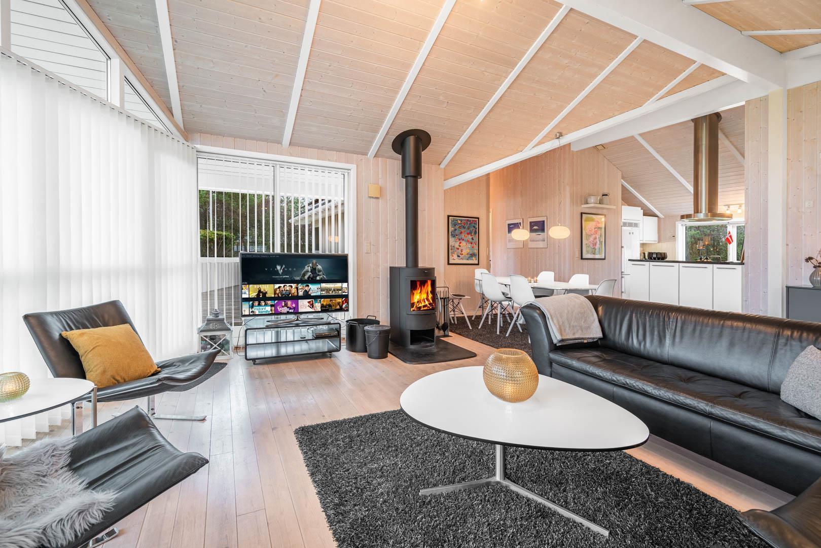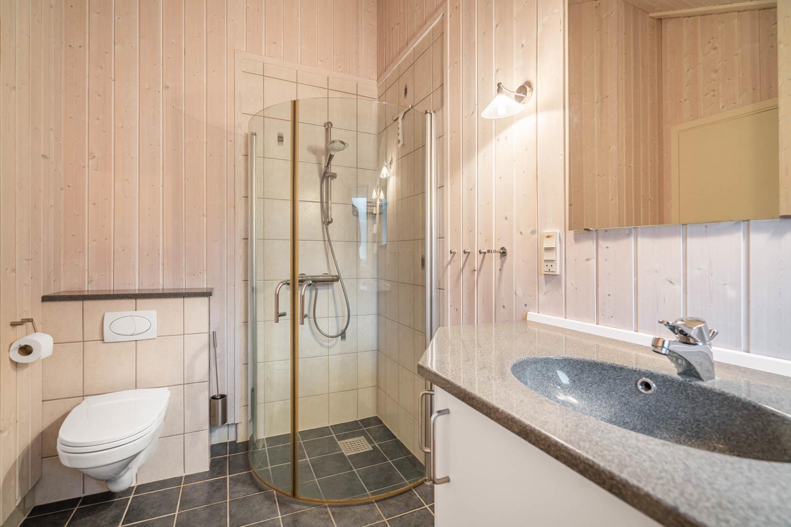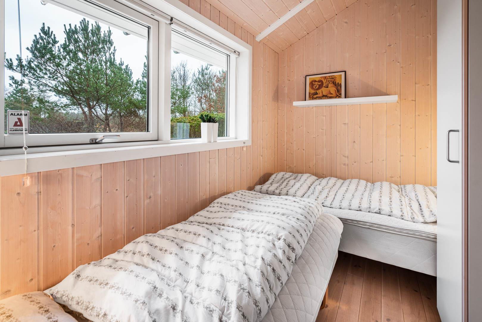 Den hyggelige og hjemlige indretning sætter rammerne for ferien, og med lyse farver på vægge og højt til loftet føles huset ekstra rummeligt. Der er 2 gode badeværelser - begge med gulvvarme. Det største har spabad og sauna. I stuen er der bl.a. brændeovn, som kan give den helt rigtige feriestemning. Der er 4 soveværelser, - 2 mindre soverum med hver 1 skab og 2 større rum med rigtig god opbevaringsplads.