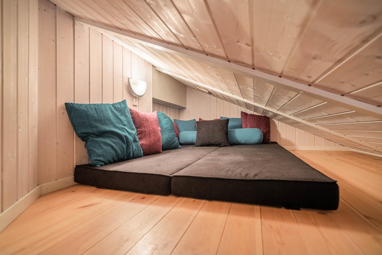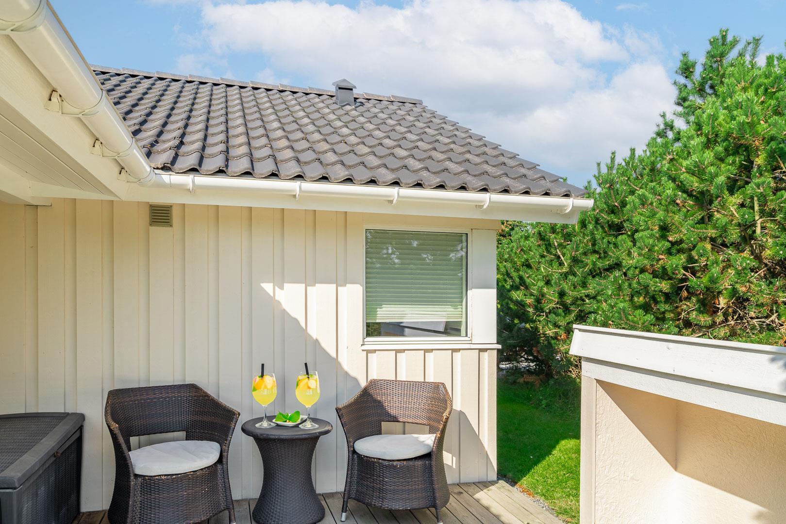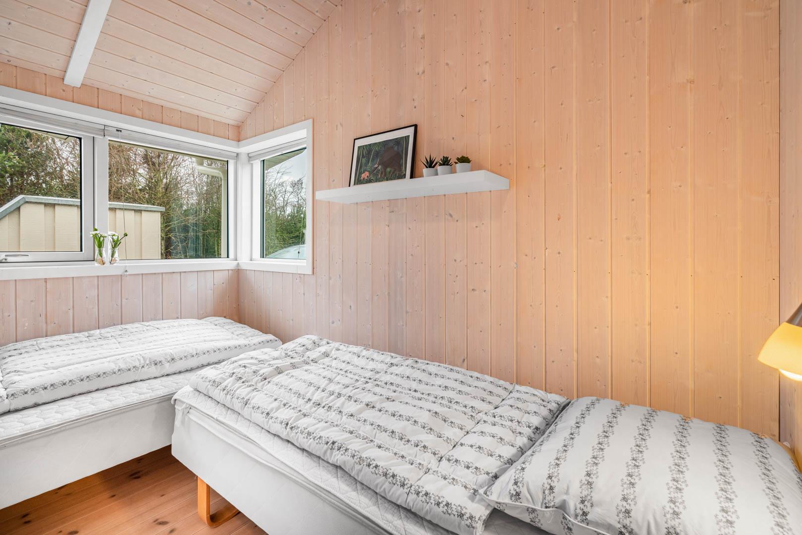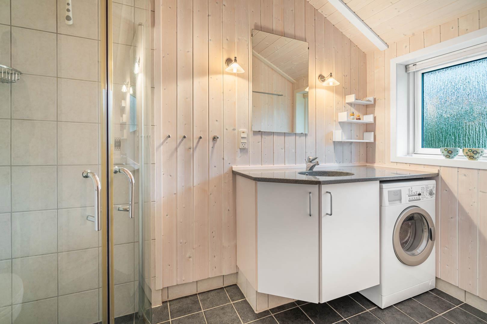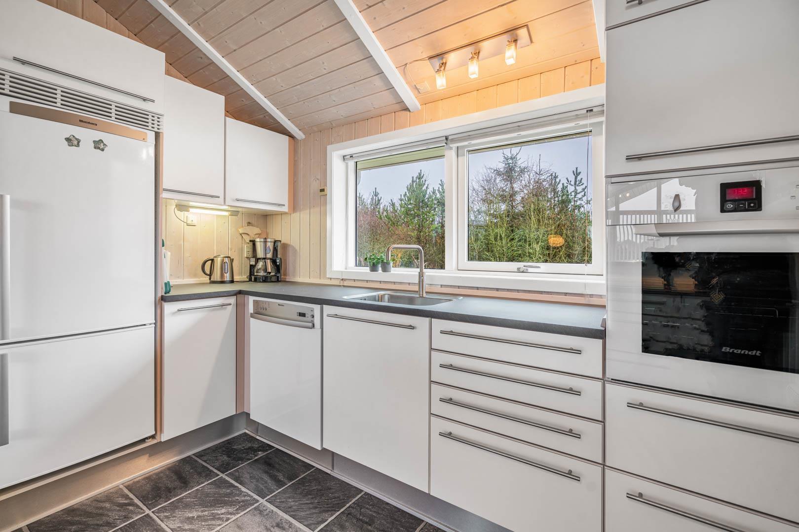 Den hyggelige og hjemlige indretning sætter rammerne for ferien, og med lyse farver på vægge og højt til loftet føles huset ekstra rummeligt. Der er 2 gode badeværelser - begge med gulvvarme. Det største har spabad og sauna. I stuen er der bl.a. brændeovn, som kan give den helt rigtige feriestemning. Der er 4 soveværelser, - 2 mindre soverum med hver 1 skab og 2 større rum med rigtig god opbevaringsplads.