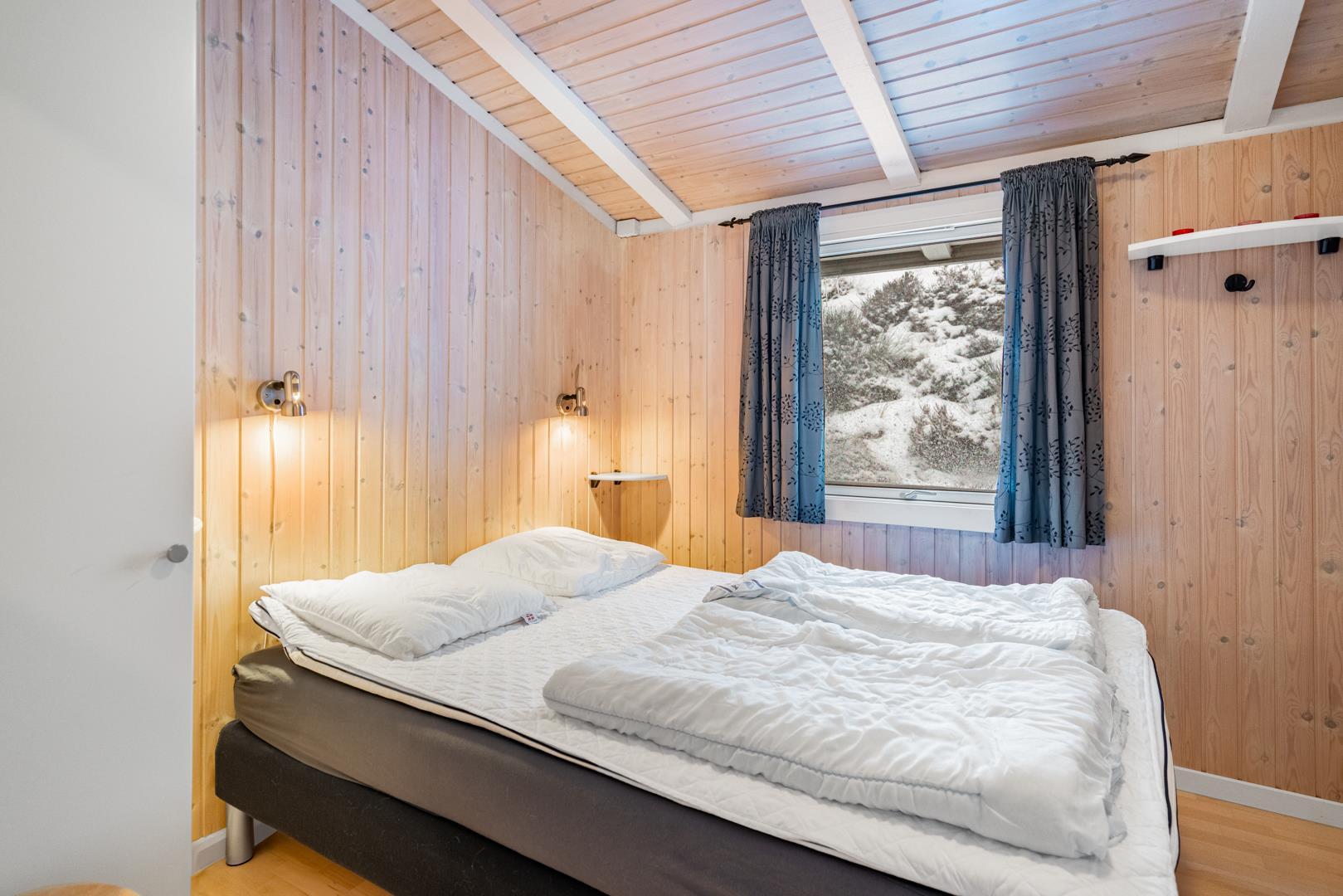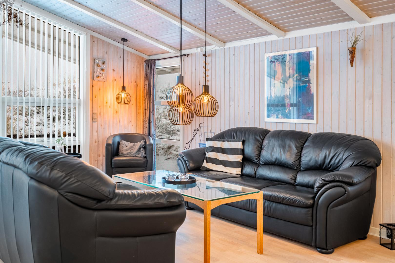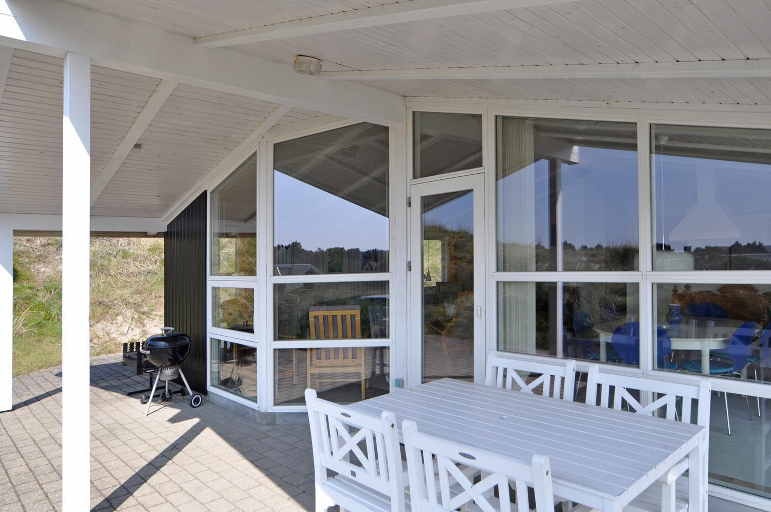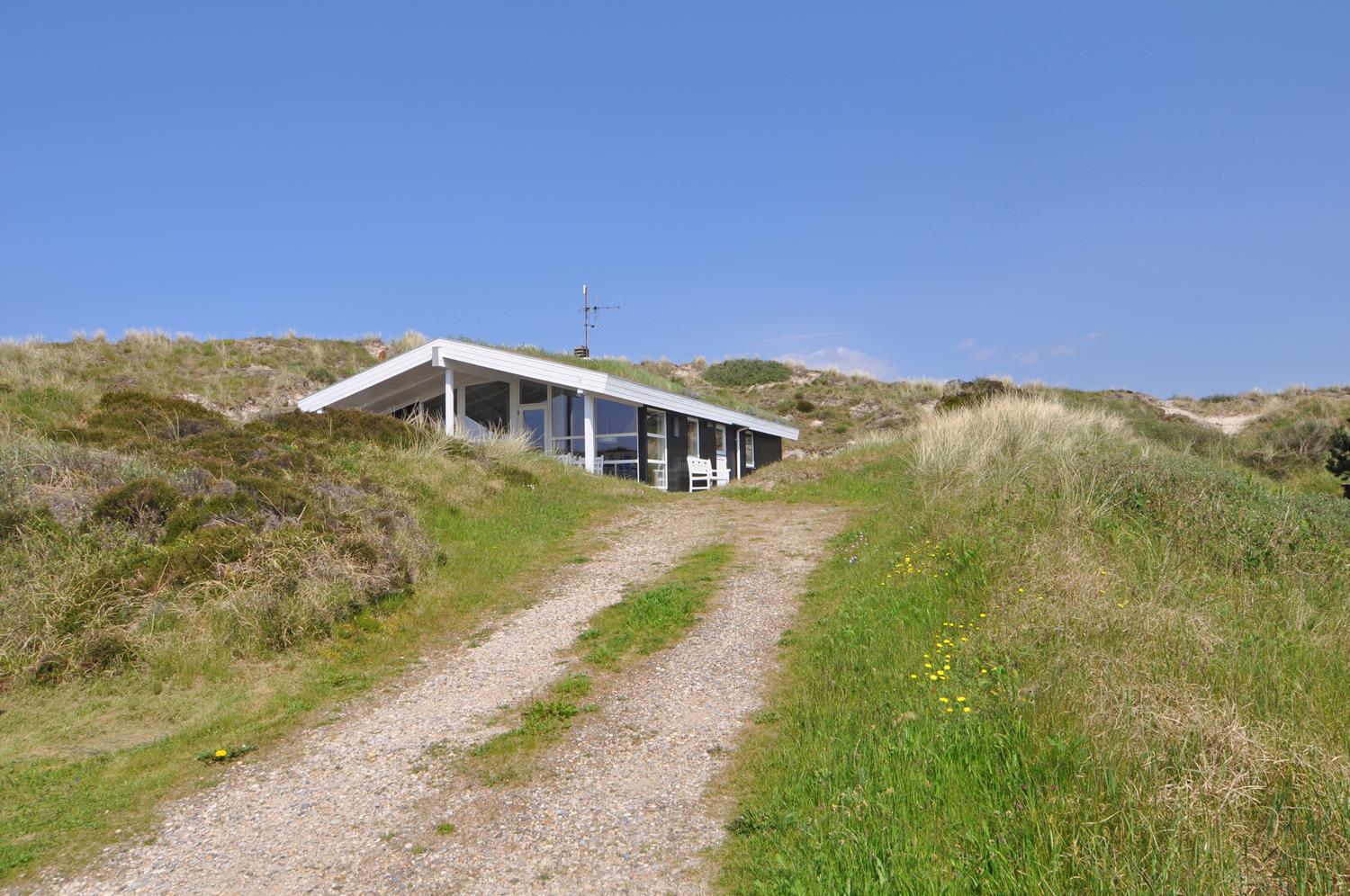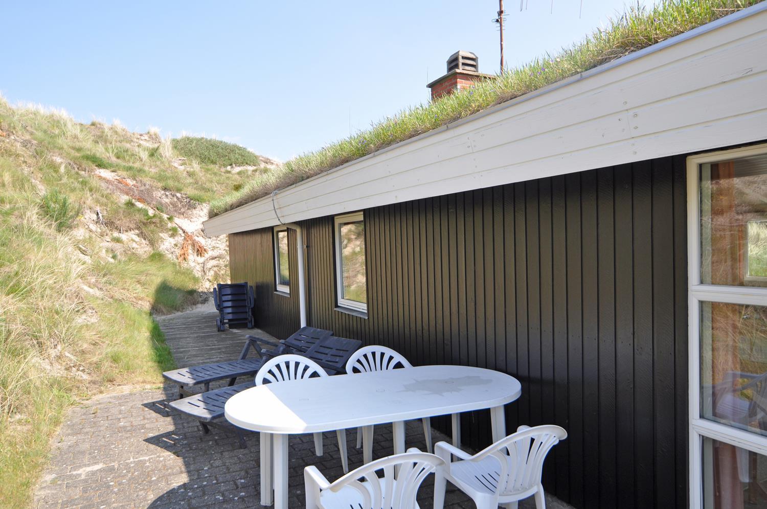 Feriehuset er lyst og indbydende og ligger smukt placeret i en stor klit, som skaber de perfekte rammer for en dejlig ferie – uanset årstid. Den energibesparende varmepumpe sikrer et behageligt indeklima året rundt.