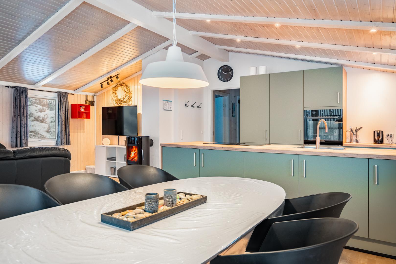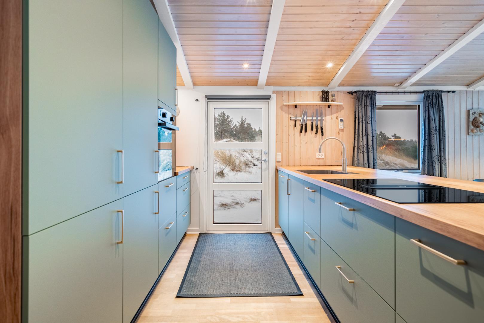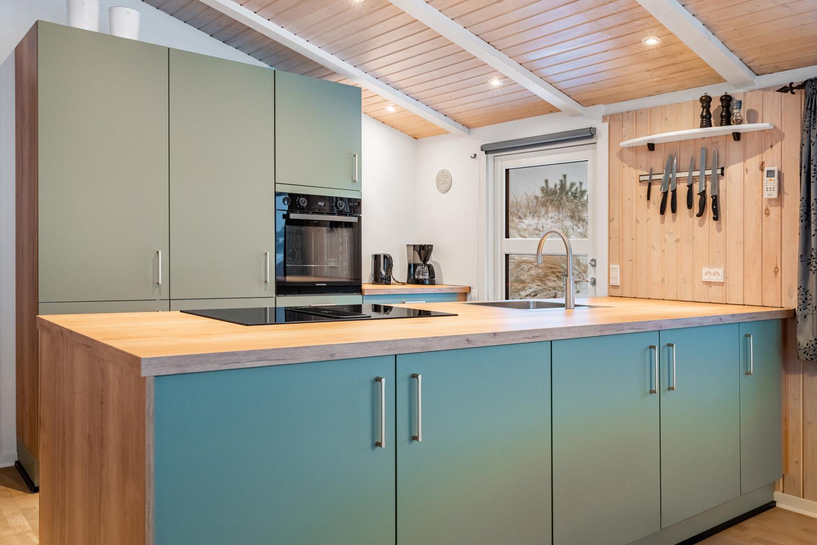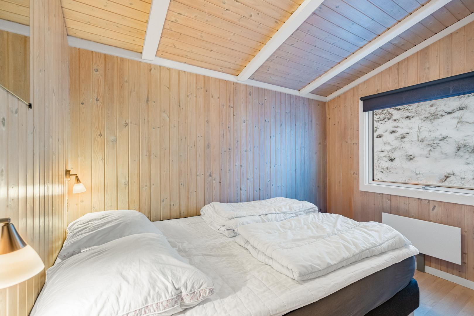 Feriehuset er lyst og indbydende og ligger smukt placeret i en stor klit, som skaber de perfekte rammer for en dejlig ferie – uanset årstid. Den energibesparende varmepumpe sikrer et behageligt indeklima året rundt.