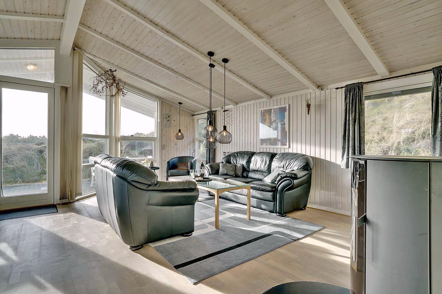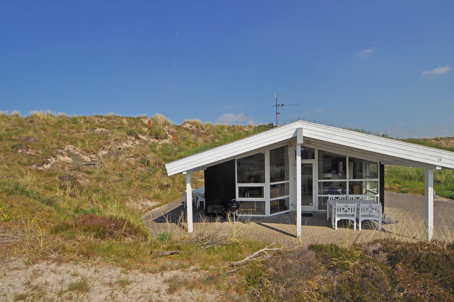 Pragtfuld feriehus med både overdækket og åbne terrasser beliggende på en skøn, sydvendt skråning med fantastisk udsigt over fredet lyngområde. Huset er hyggeligt og i god stand. Fra den hyggelige stue, som er indrettet med et personligt og smagfuld præg, er der udgang til de ugenerede terrasser. Godt udstyret køkken som ligger i åben forbindelse med stuen, som er indrettet med gode kvalitets møbler. 3 soverum med nye komfortable boksmadrasser. Et lyst og dejligt feriehus beliggende i stor klit, hvor rammerne er til stede for en rigtig god ferie hele året. Energibesparende varmepumpe.