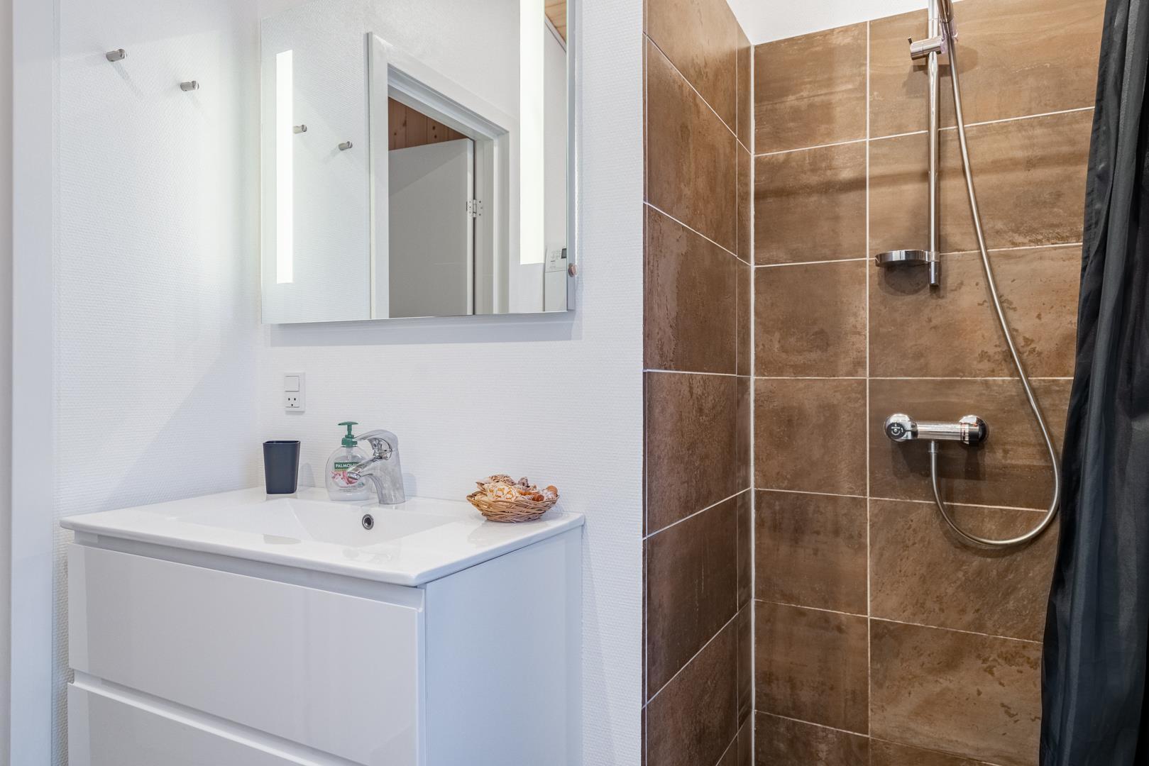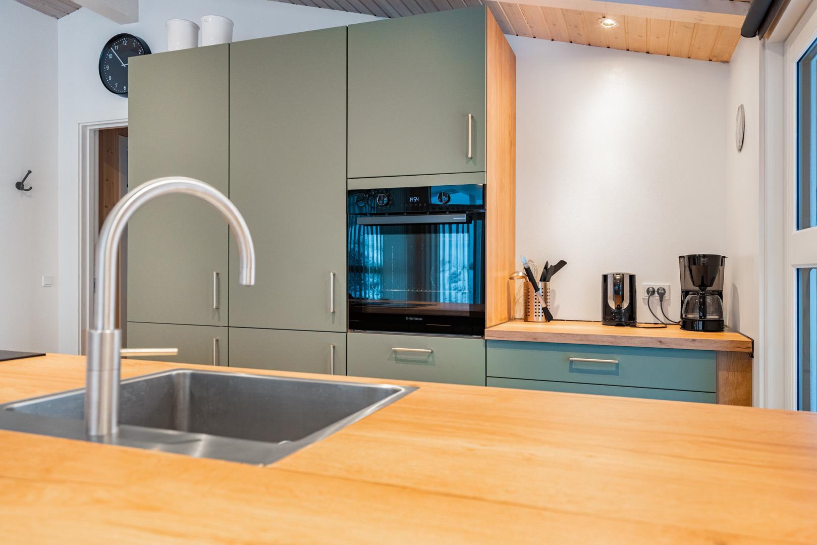 Det flotte, nye køkken fra 2025 ligger i åben forbindelse med stuen og indbyder til hyggelige madoplevelser. Badeværelset fremstår pænt og velholdt, og huset rummer tre gode soveværelser med nye, komfortable boksmadrasser.