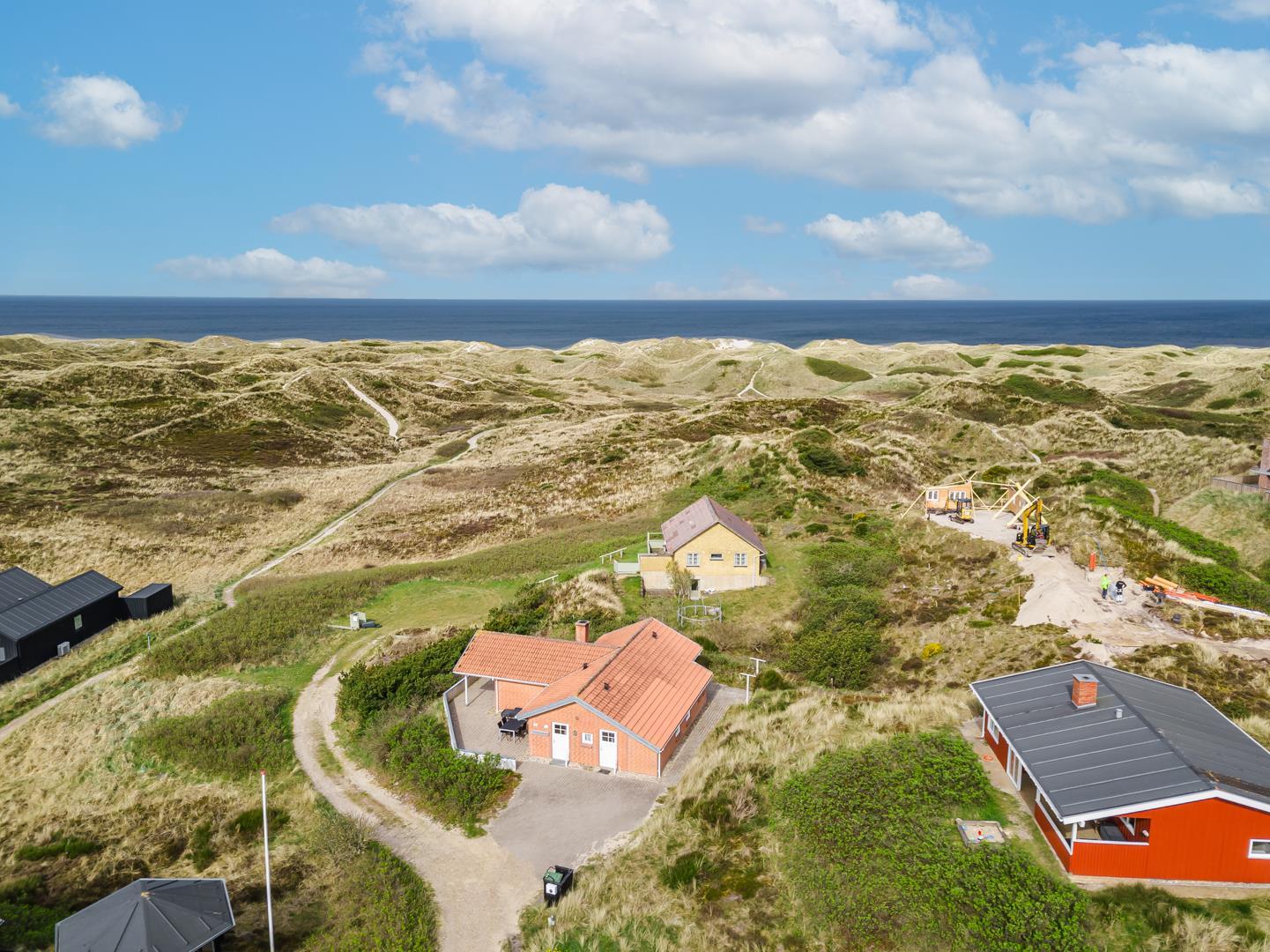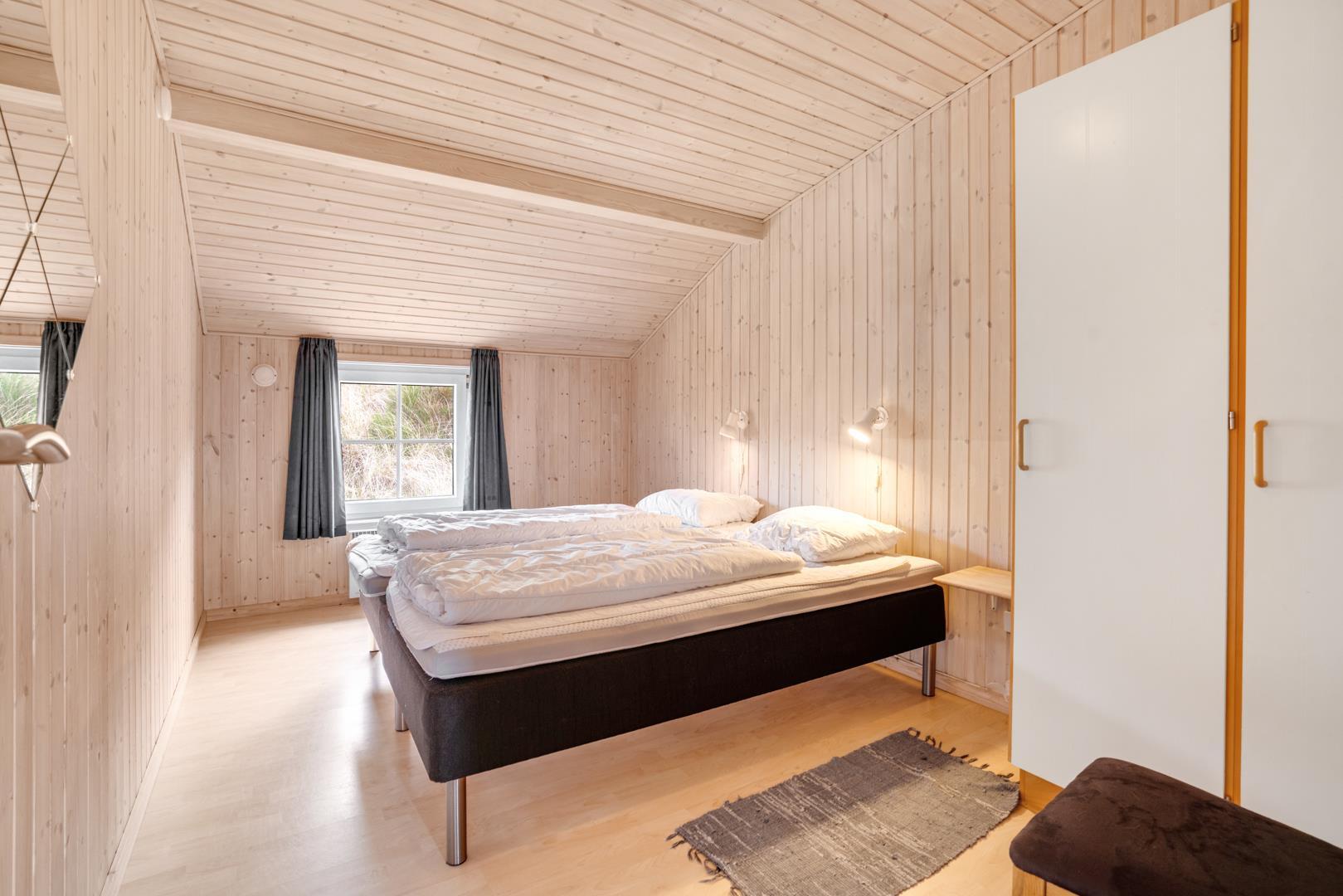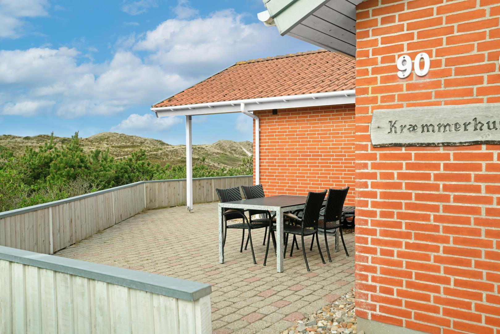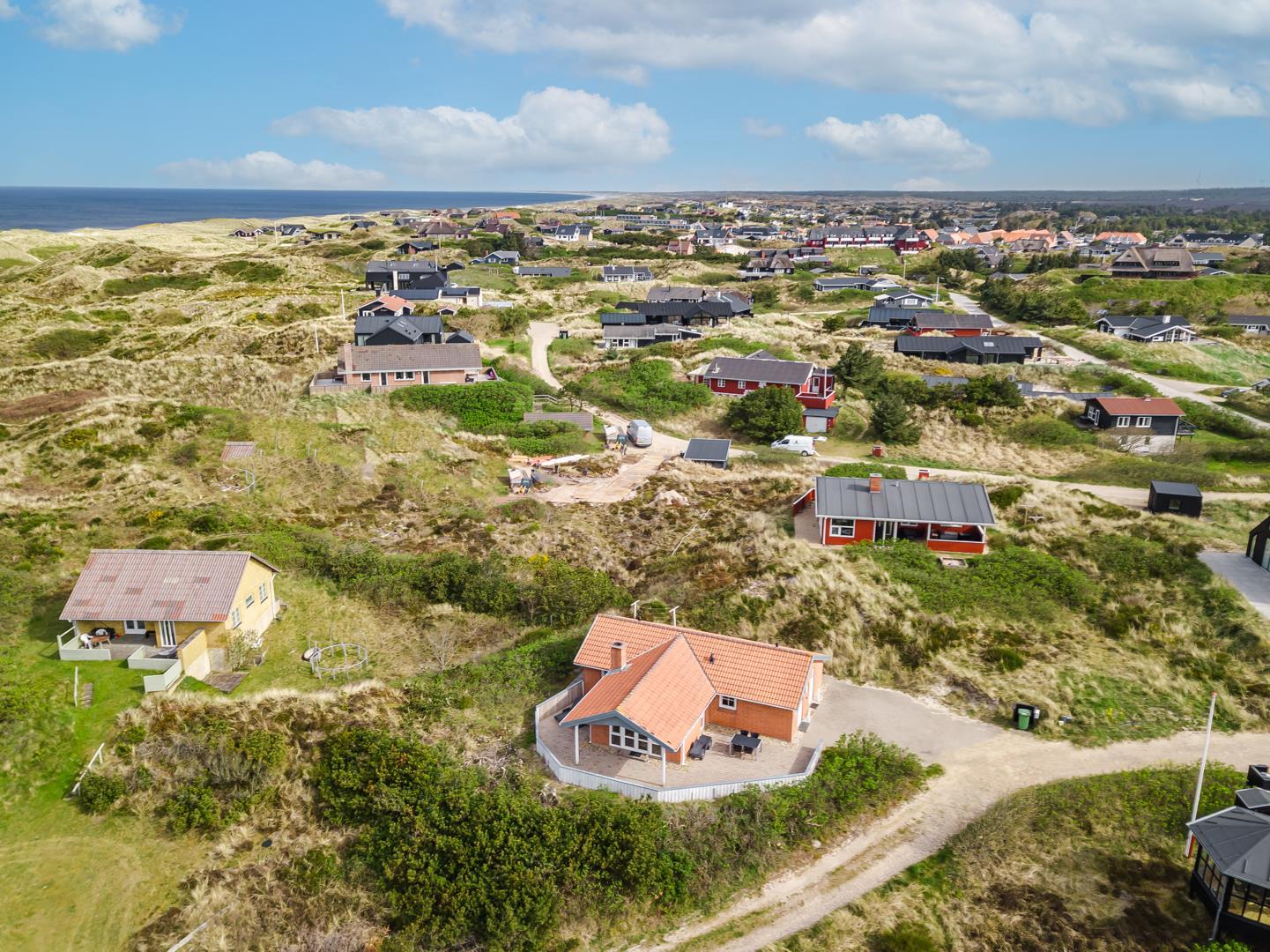 På en skøn, kuperet klitgrund for enden af blind vej helt fremme i klitterne, ligger dette dejlige feriehus. Hyggelig indrettet stue med udgang til skøn delvis overdækket terrasse, hvor den fantastiske udsigt ud over klitterne kan nydes. Fint badeværelse med spa og sauna samt ekstra toilet. 2 store soverum med dobbeltseng.