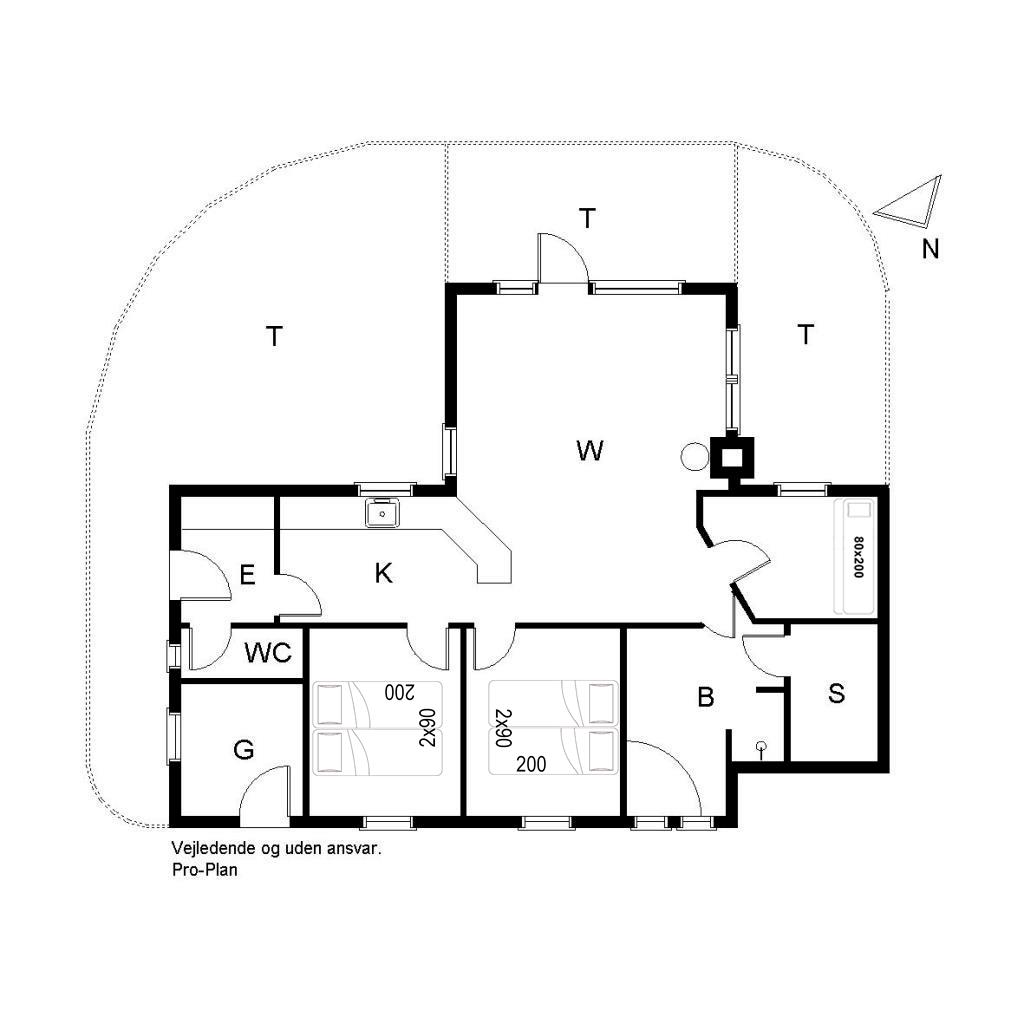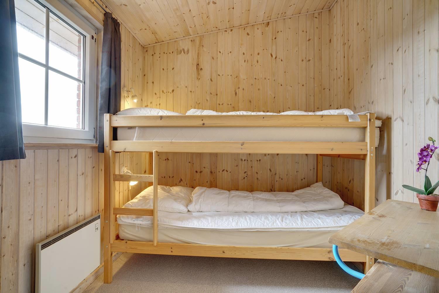 Sengestørrelser: 2 dobbeltsenge med 2 madrasser 90 x 200 cm + 1 køjeseng 80 x 200 cm.