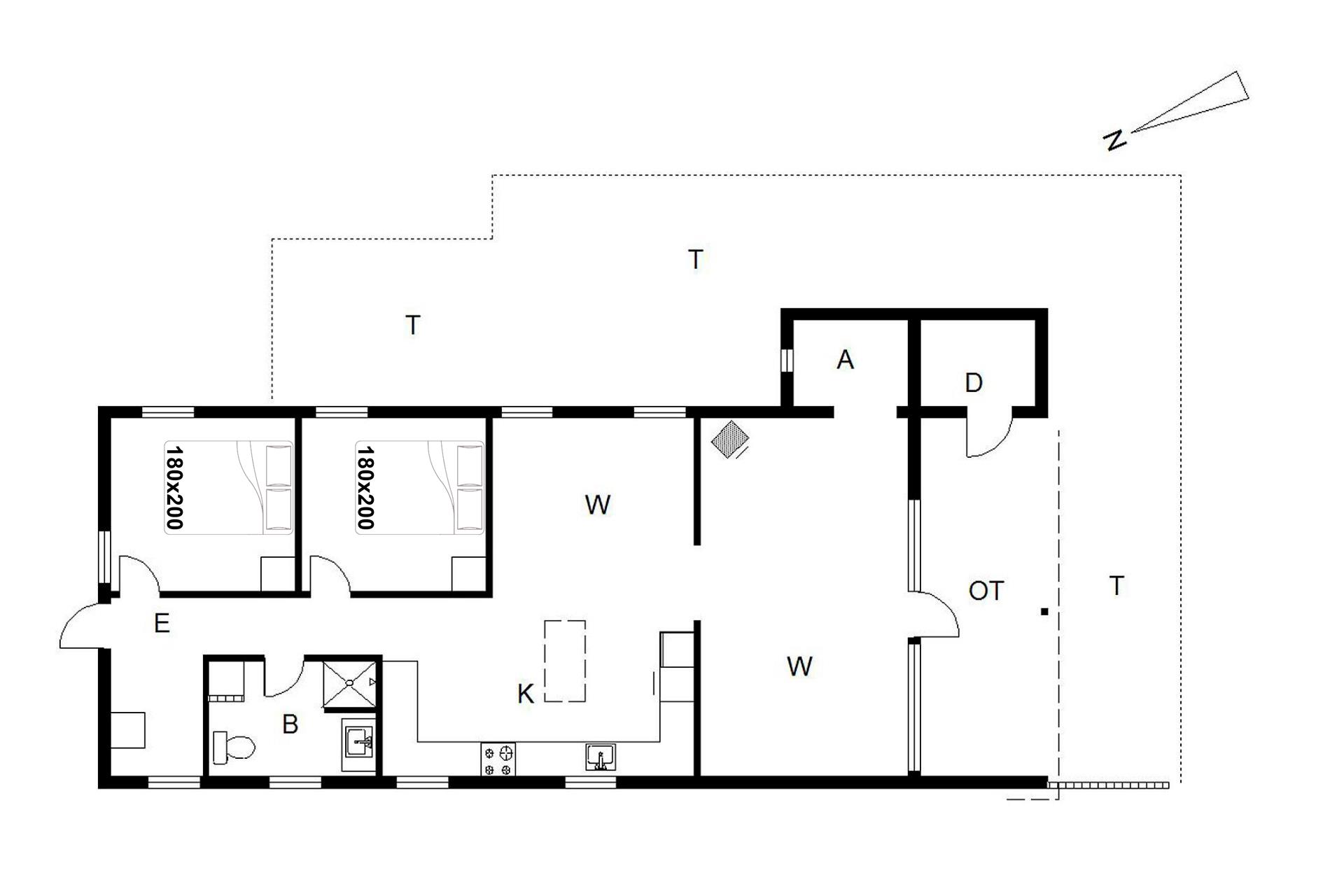 Sengestørrelser: 2 dobbeltsenge 180 x 200 cm.