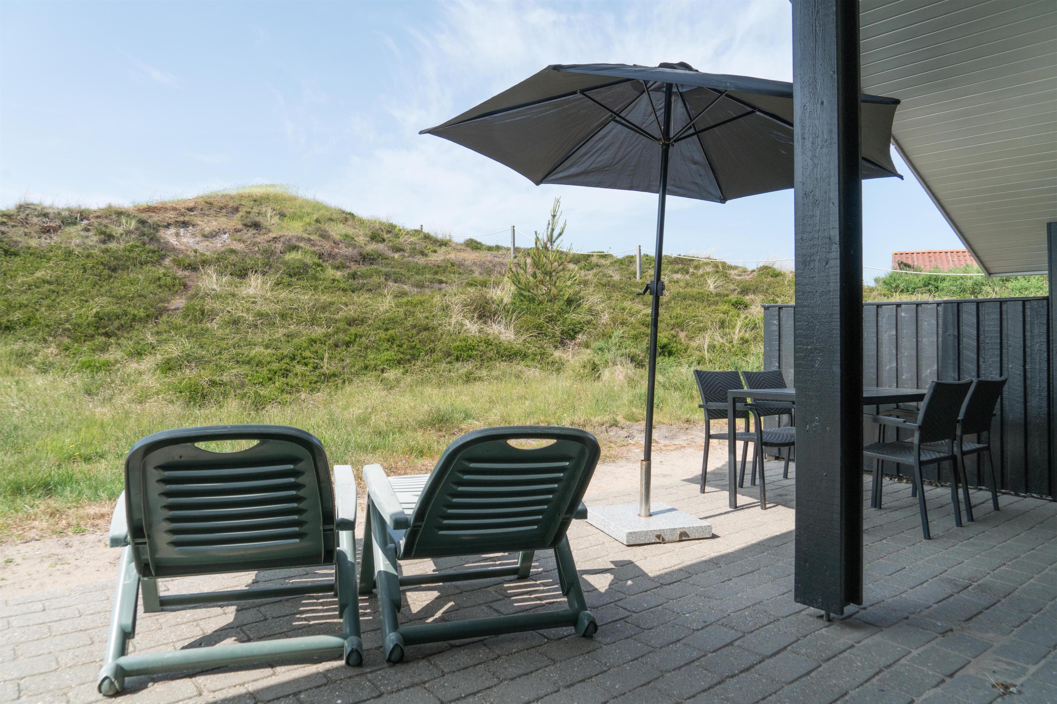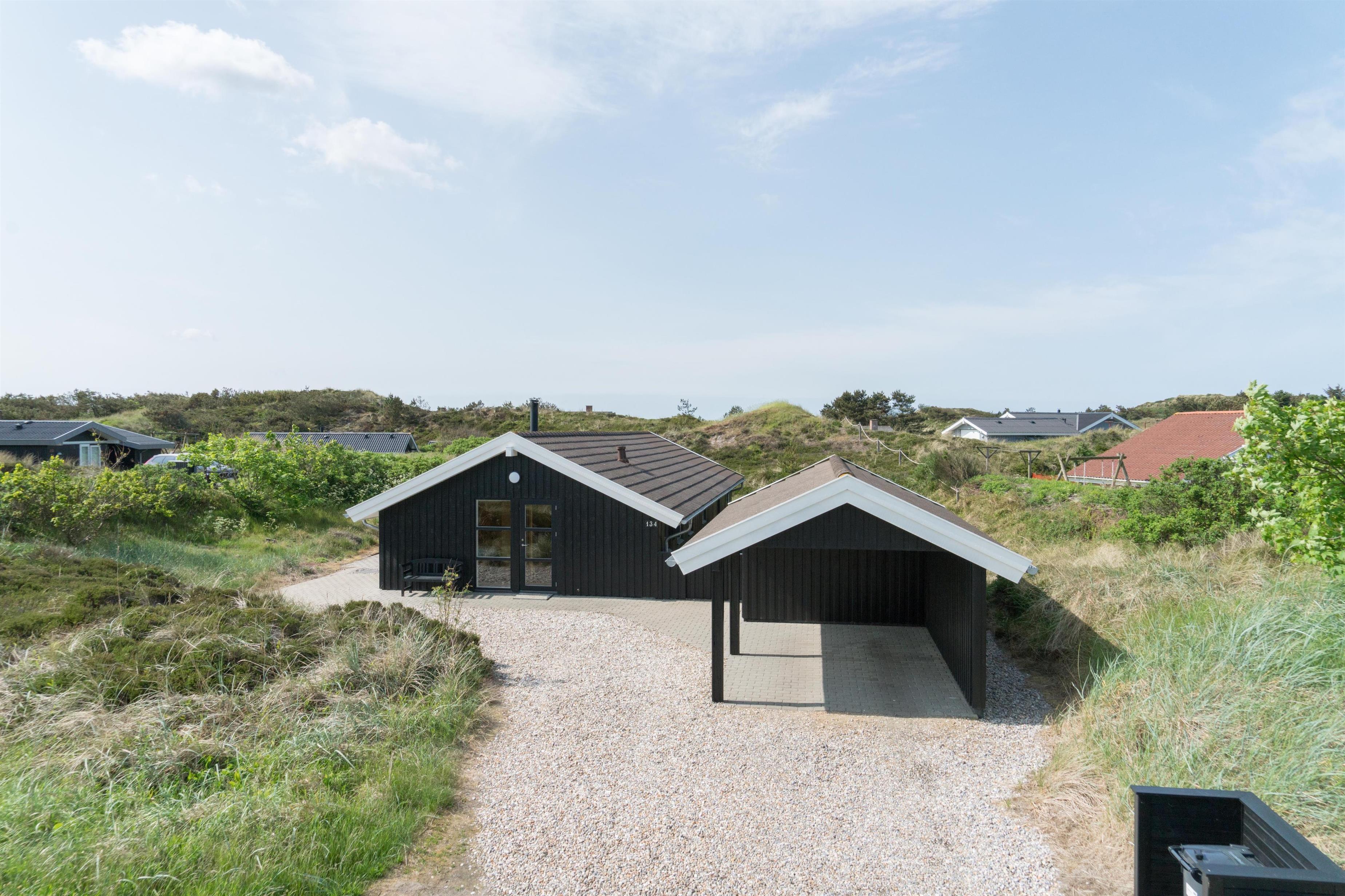 Dette stemningsfyldte og total renoverede feriehus med carport er beliggende på Hjelmevej 134 ved Henne Strand. Huset ligger på en ugeneret klitgrund og er omkranset er skønne terrasser, hvoraf en er overdækket.