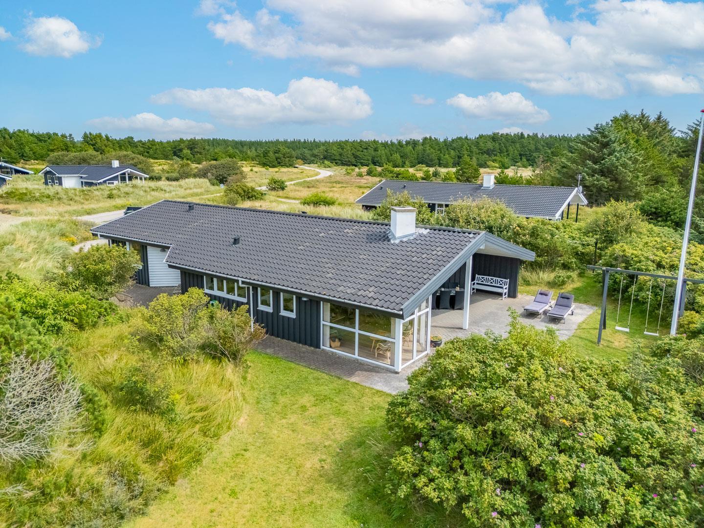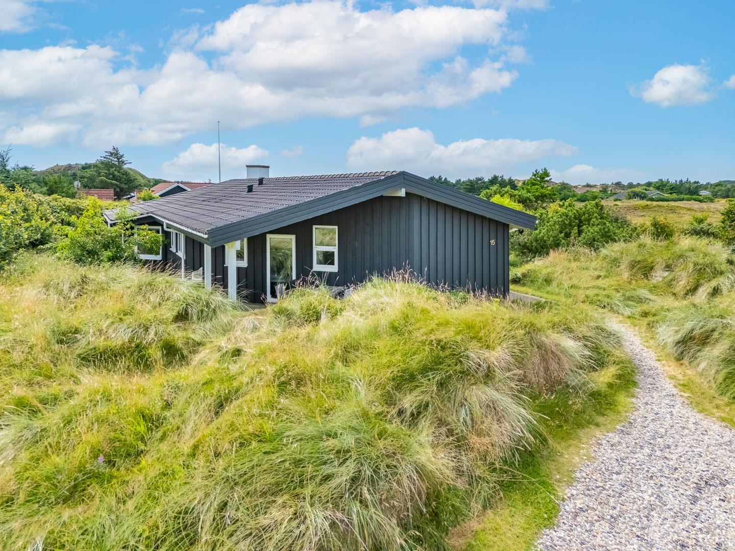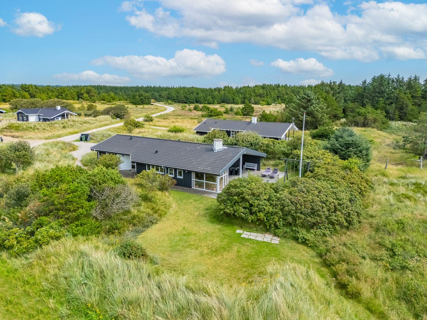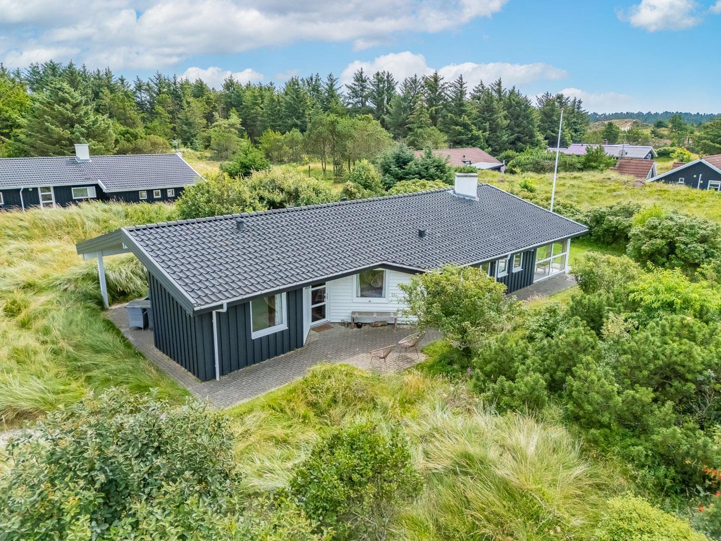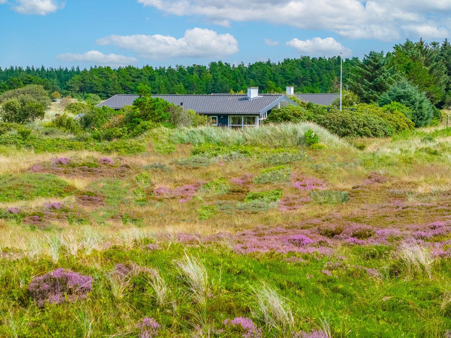 Du finder ikke meget bedre omgivelser at tilbringe ferien end her i Henne. Du er omgivet af en fantastisk natur med store brede sandstrande, der åbner sig bag bælter af bløde, marehalmsbeklædte klitter. Det er oplagt at drage på opdagelse i Blåbjerg Plantage eller ved Henne Mølle Å. Fra feriehuset er der kun 15 minutters gåafstand til Strandvejen, hvor der er restaurant, tøjforretninger, købmænd og cafeer.