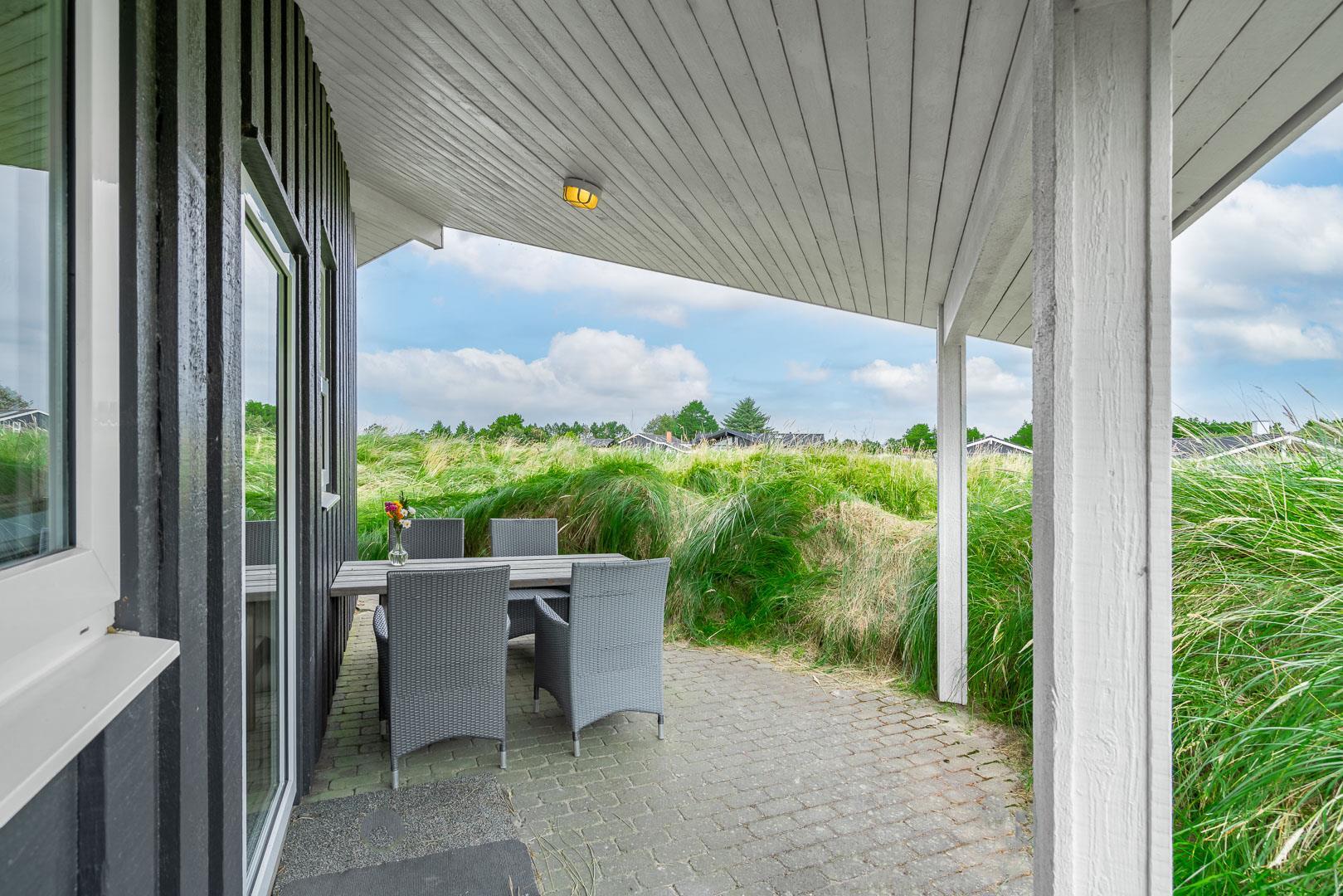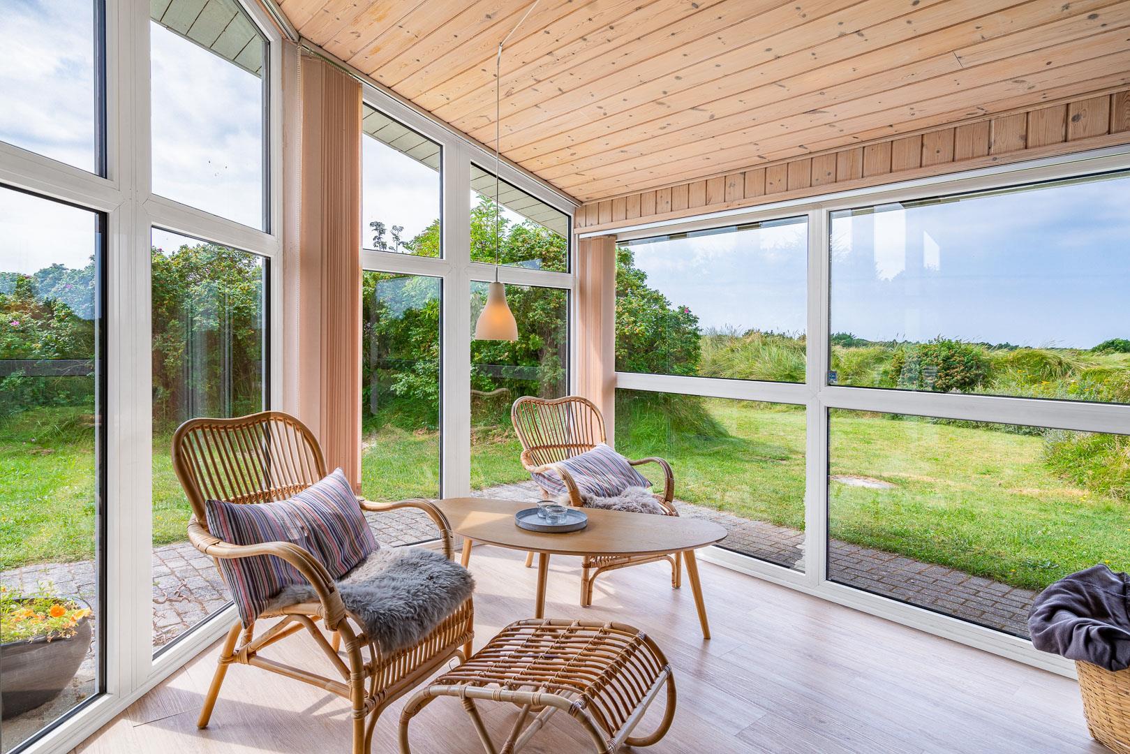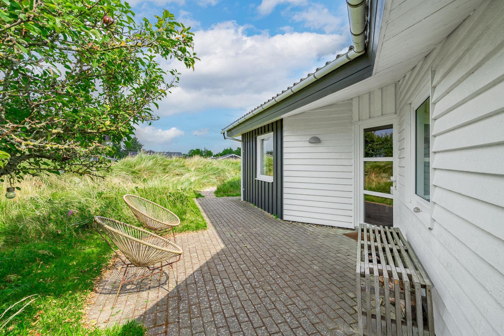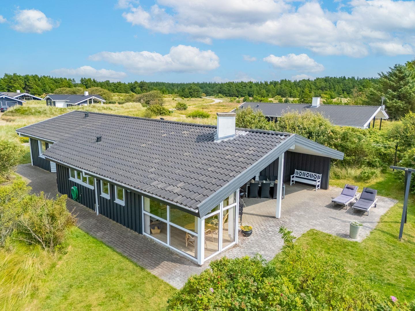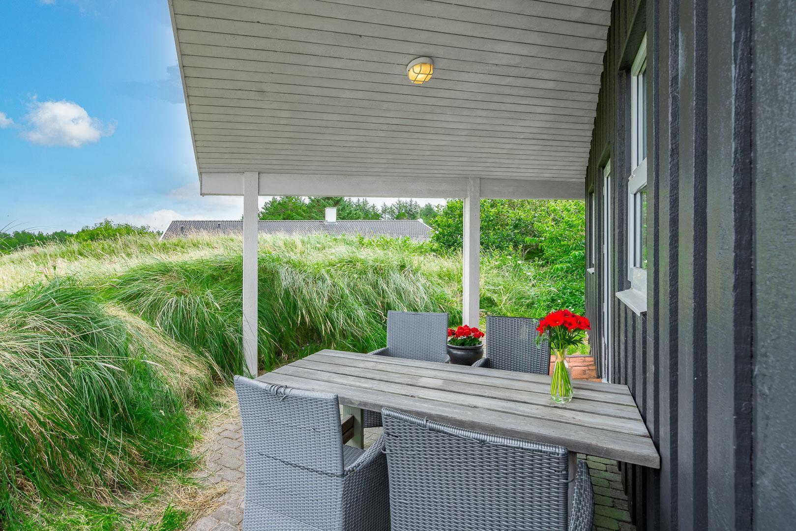 Du finder ikke meget bedre omgivelser at tilbringe ferien end her i Henne. Du er omgivet af en fantastisk natur med store brede sandstrande, der åbner sig bag bælter af bløde, marehalmsbeklædte klitter. Det er oplagt at drage på opdagelse i Blåbjerg Plantage eller ved Henne Mølle Å. Fra feriehuset er der kun 15 minutters gåafstand til Strandvejen, hvor der er restaurant, tøjforretninger, købmænd og cafeer.